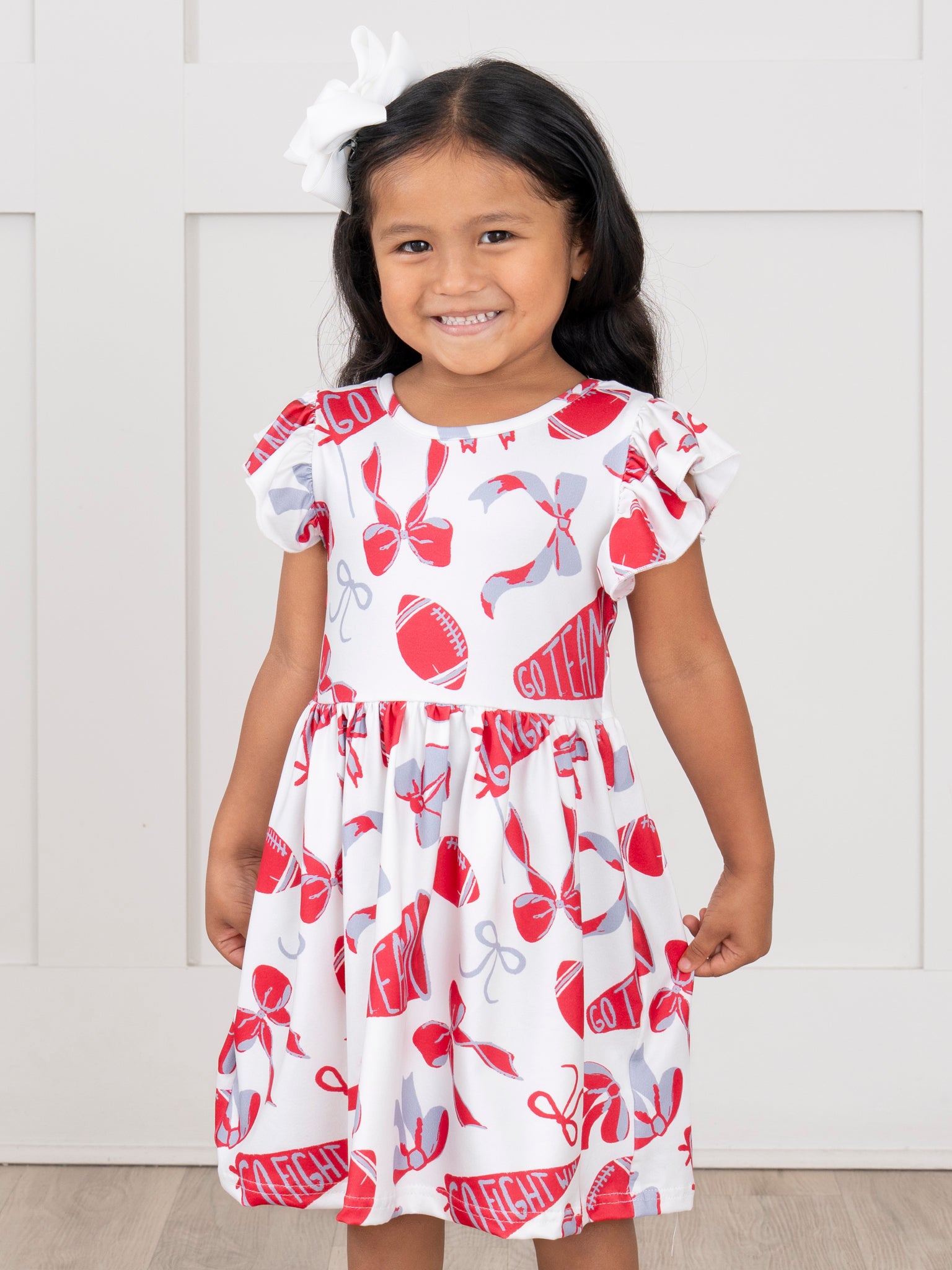 The Go Team Flutter Swing Dress – Alabama is a spirited and stylish choice for little fans of the Heart of Dixie. Featuring bold Alabama-inspired colors and a fun “Go Team” graphic, this dress from Marie Nicole Clothing brings Southern charm to every game day. With flutter sleeves and a soft, twirl-ready silhouette, it’s perfect for tailgates, school spirit days, or cheering on their favorite team in comfort and style.