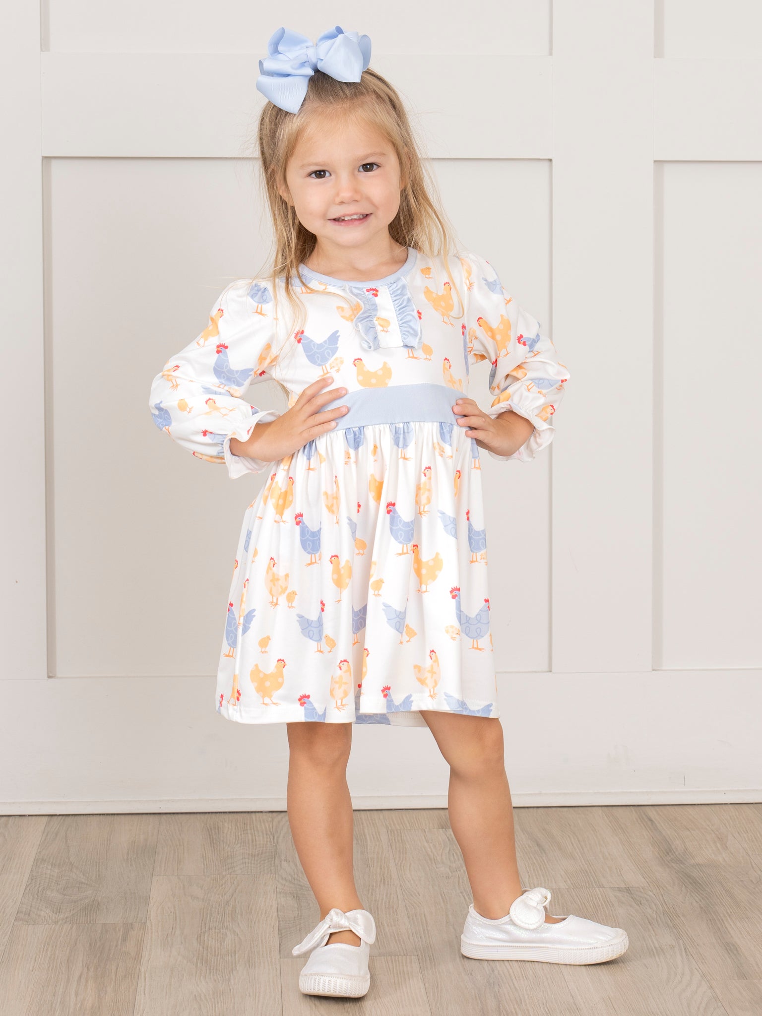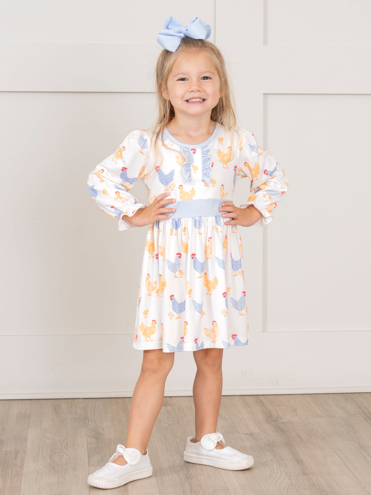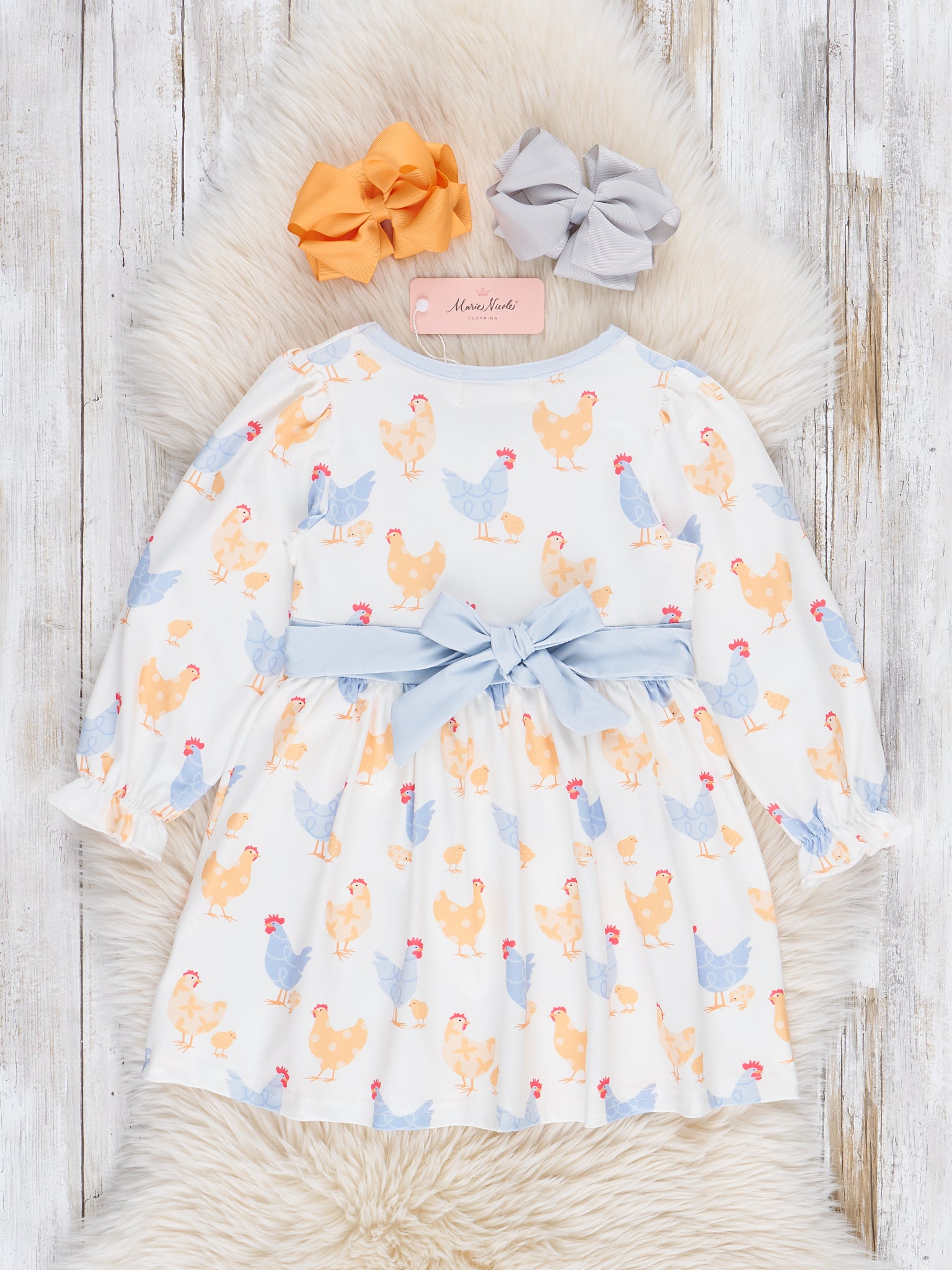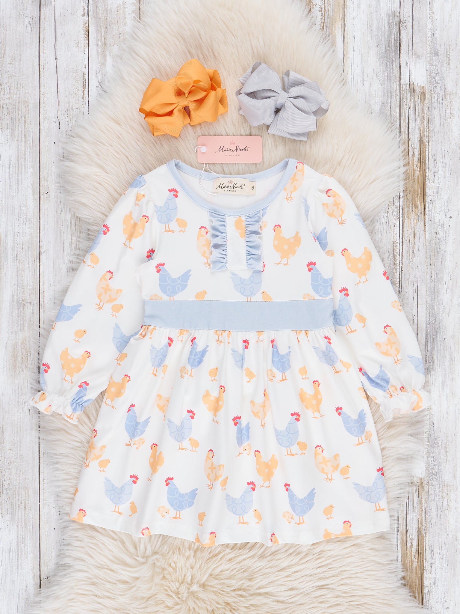 The Cozy Little Chick Dress is a sweet and playful choice that’s perfect for everyday adventures and special occasions. Featuring charming prints and soft ruffle details, this dress from Marie Nicole Clothing blends timeless style with comfortable wearability. Made from breathable, lightweight fabric, it’s ideal for playtime, family gatherings, and picture-perfect moments.