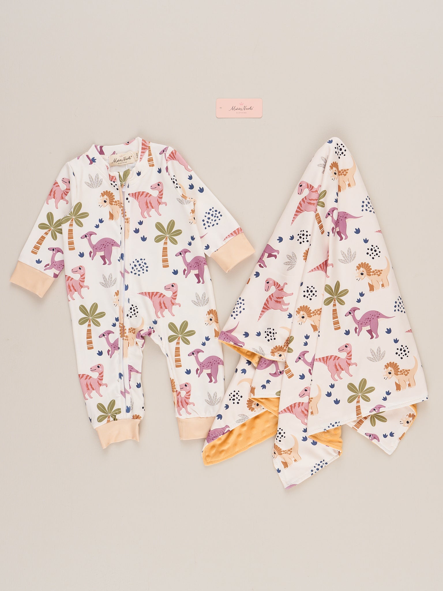 The Dino Dude Sleeper Pajamas are a cozy and playful choice that’s perfect for bedtime and all-night comfort. Featuring fun dinosaur prints and a soft, breathable fabric, these pajamas from Marie Nicole Clothing blend whimsical charm with easy wearability. Designed with convenient snaps for quick changes, they’re ideal for restful sleep, cozy nights, and picture-perfect dreams.