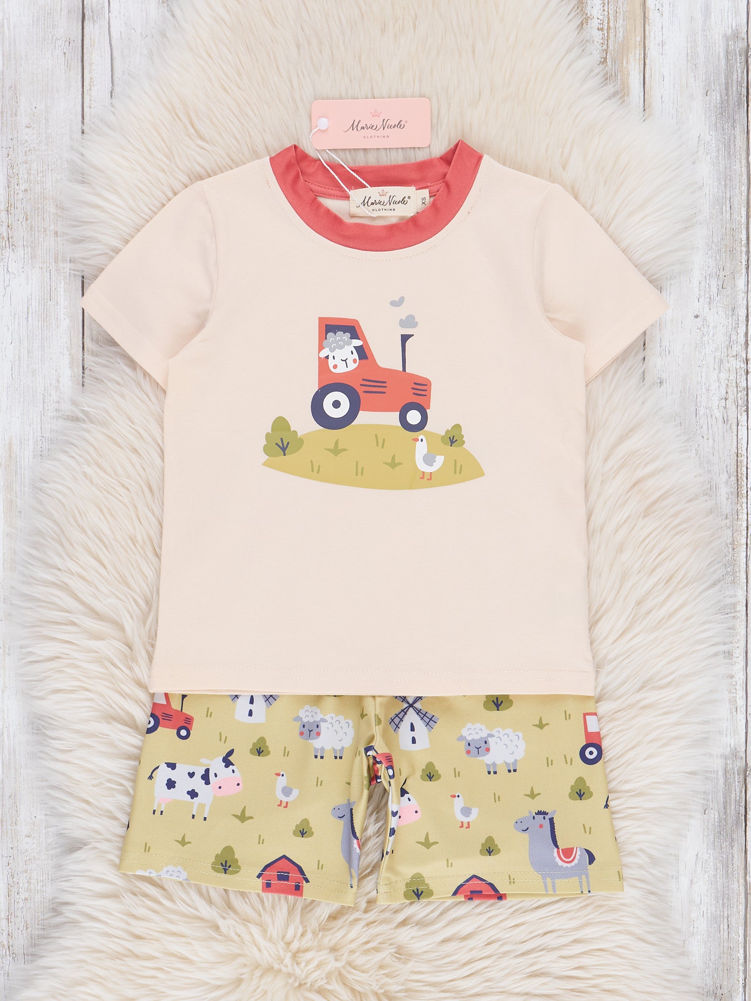 Get your little farmer ready for a wild ride with our Tractor Ride Outfit! Complete with farm friends and a fun tractor ride, this boys' outfit from Marie Nicole Clothing will have them looking and feeling adventurous. Perfect for any outdoor adventure!