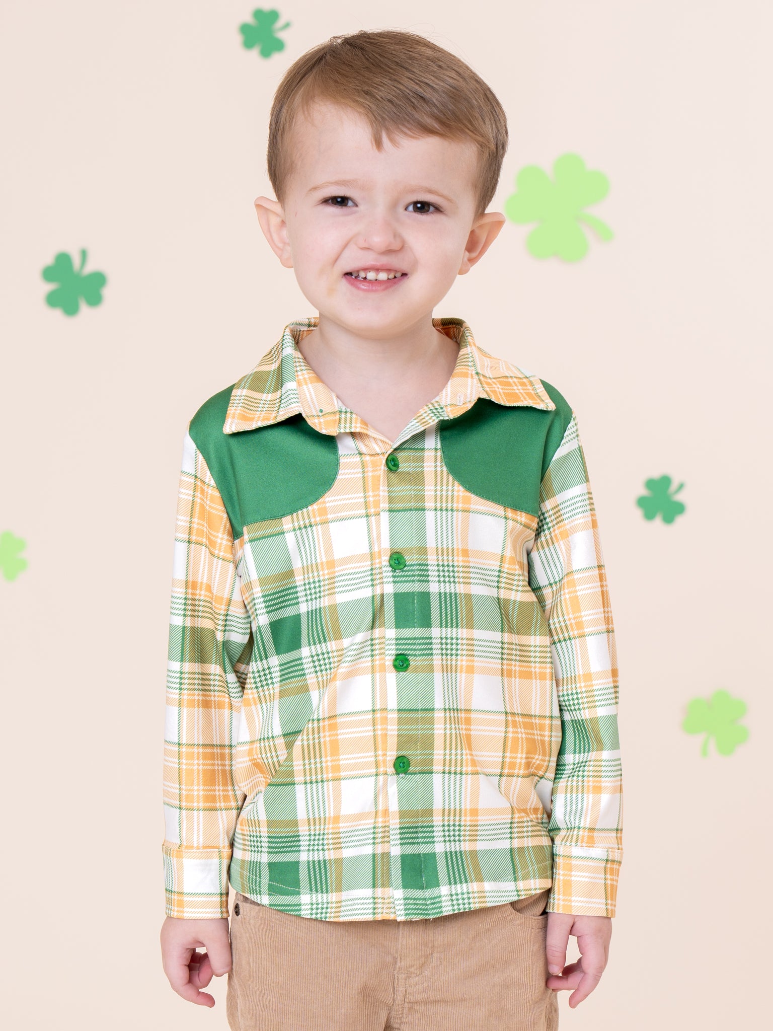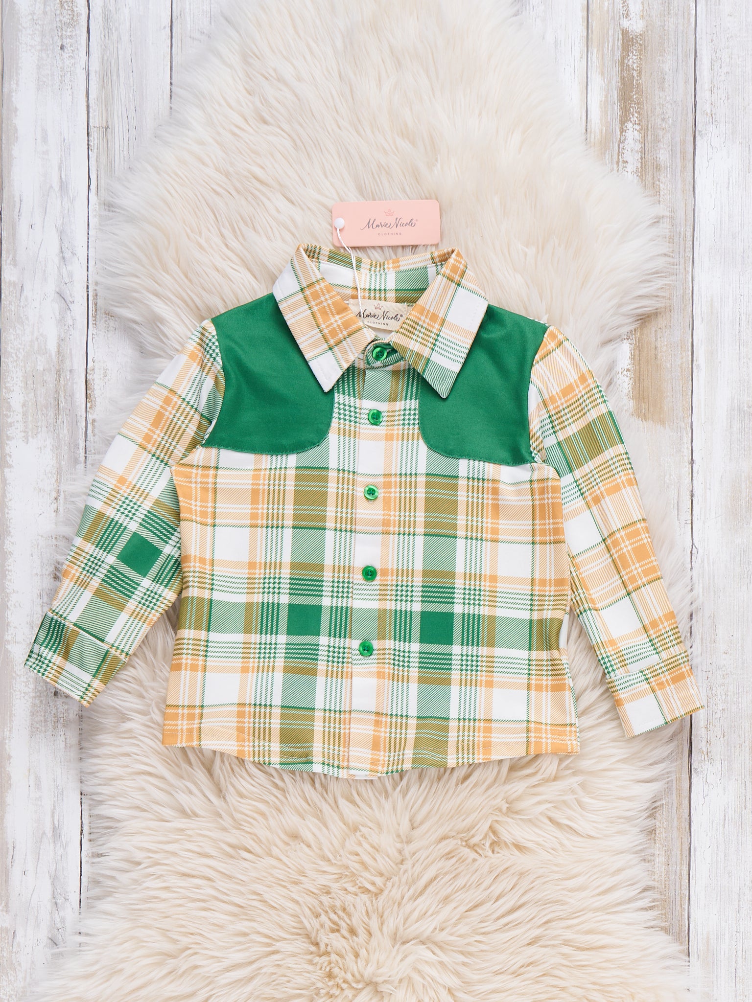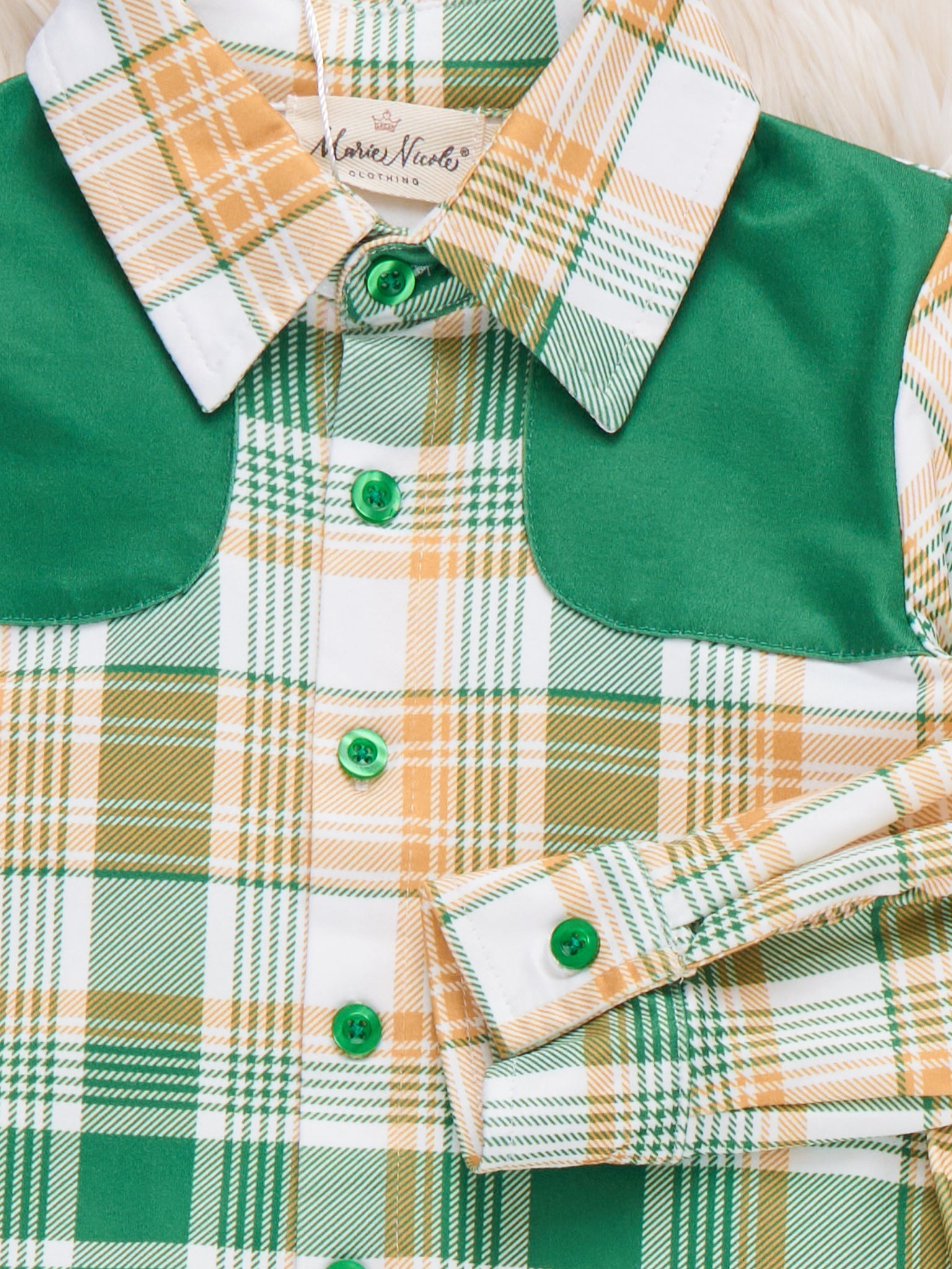 For a playful twist on a classic, the Lucky Plaid Ranch Shirt by Marie Nicole Clothing is a must-have. This button-up features a crisp collar, long sleeves, and western-inspired yoke, all wrapped in a festive plaid. It’s perfect for spring celebrations or adding rustic charm to any adventure or St. Patrick's Day—blending comfort, style, and a hint of country fun.