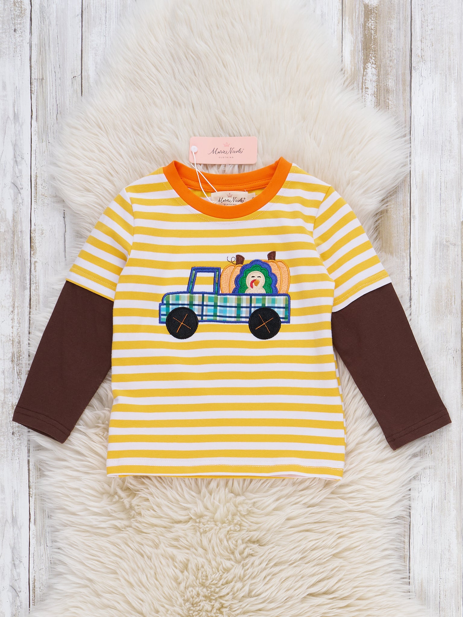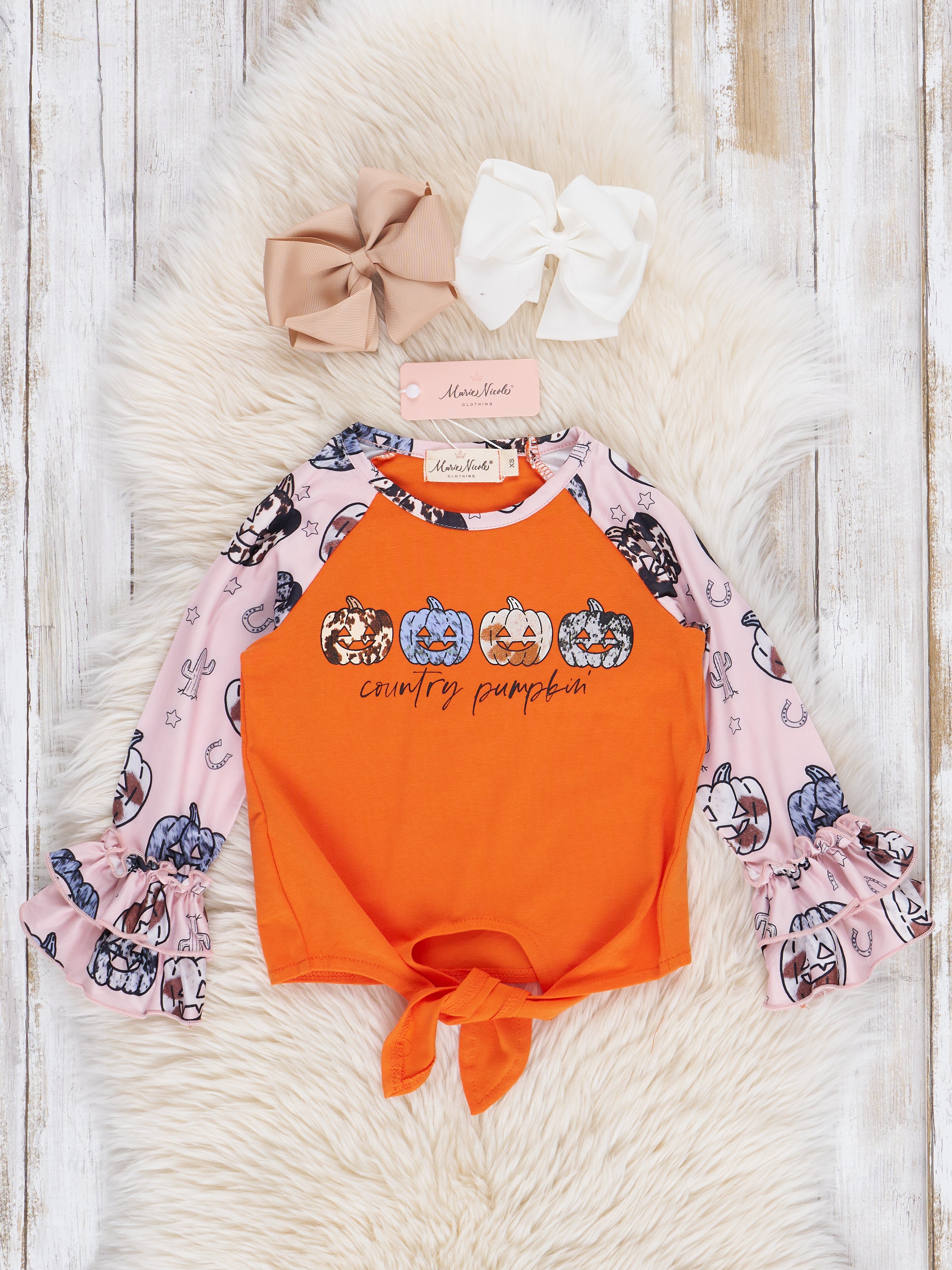 "Country Pumpkin" Ruffle Sleeve Tie Top