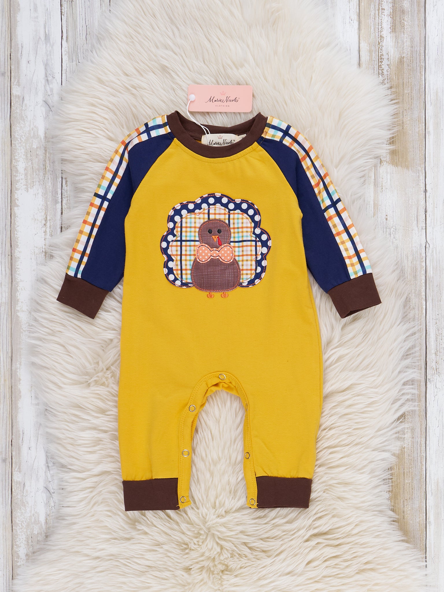 Yellow Plaid Embroidered Turkey Romper