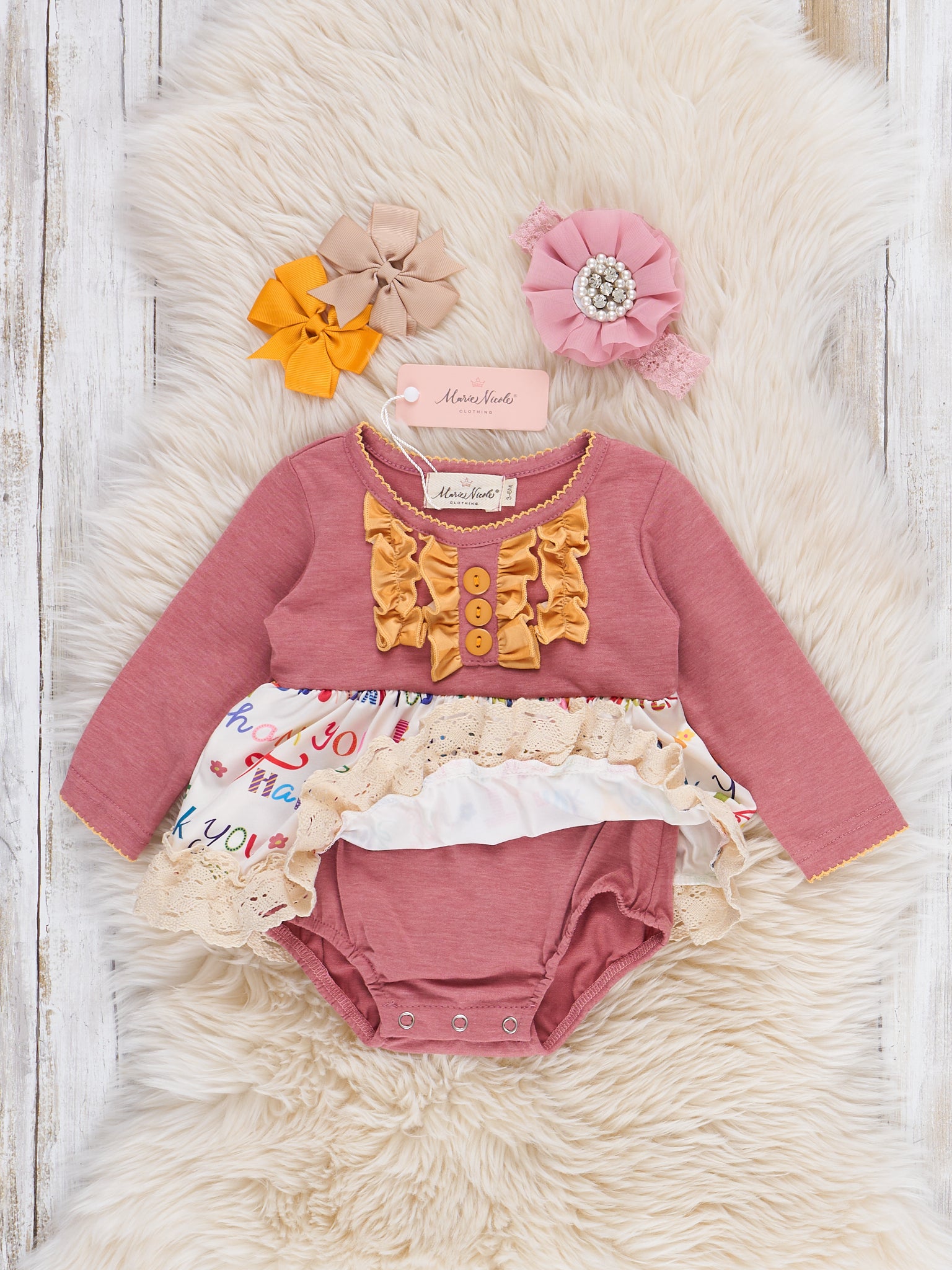 "Thankful" Bow Ruffle Romper