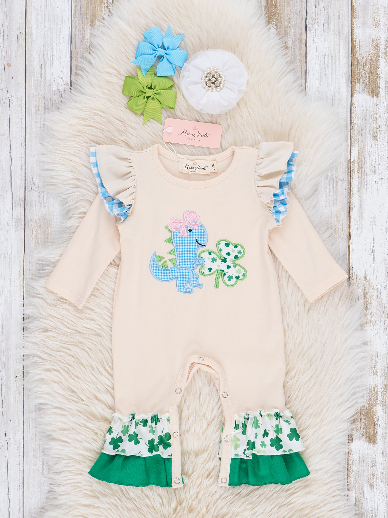 Lucky Dino Embroidered Ruffle Romper
