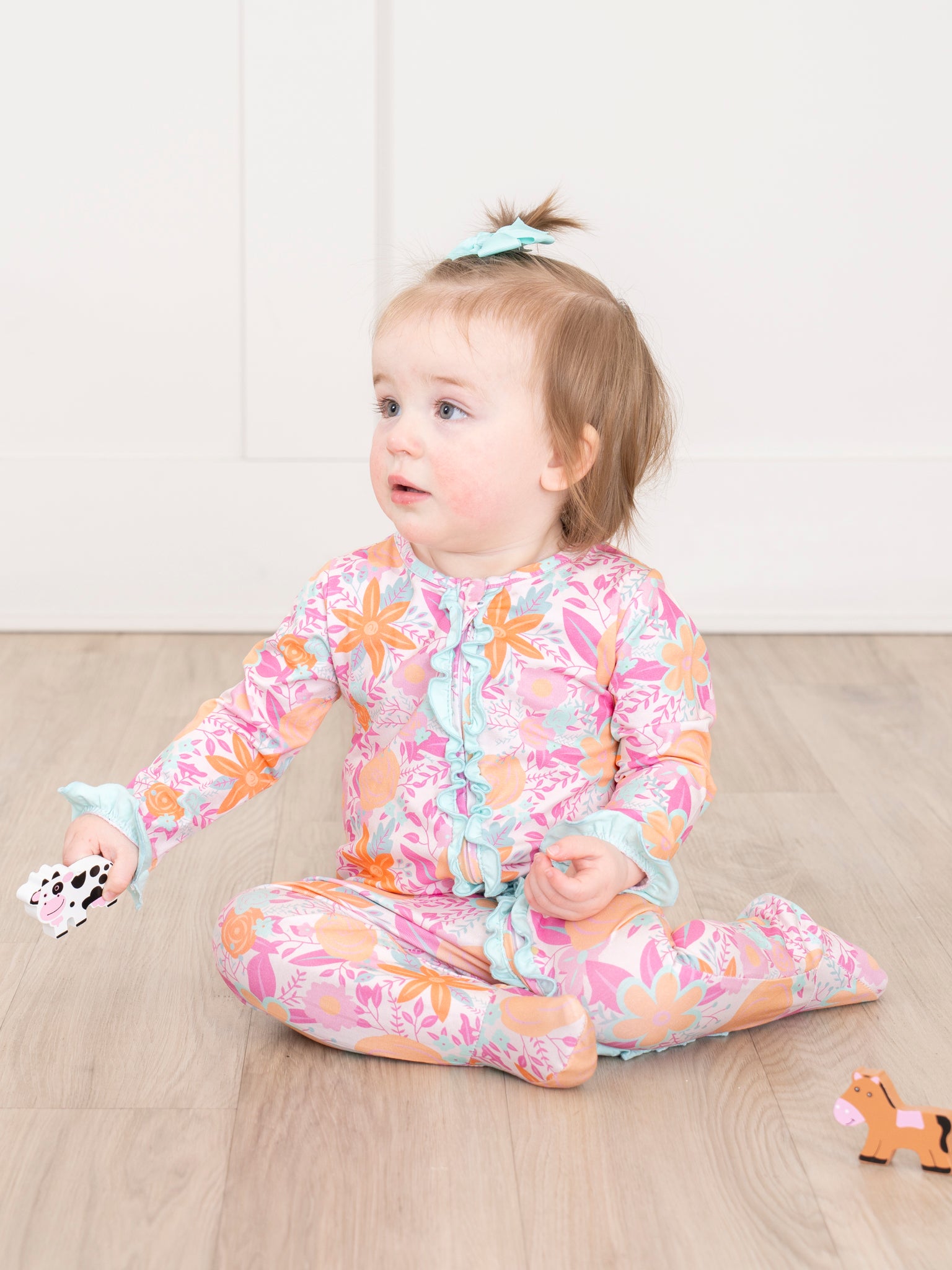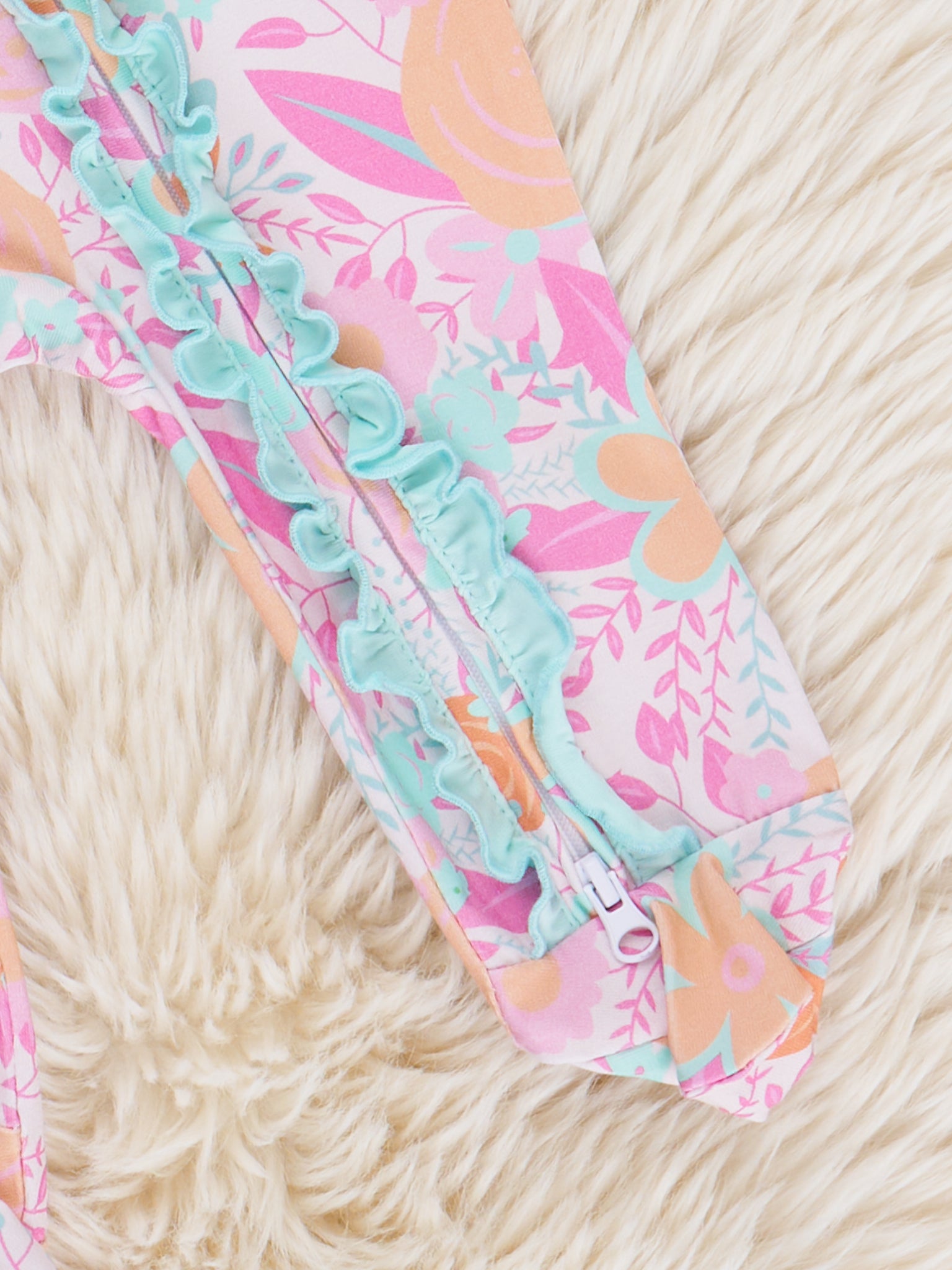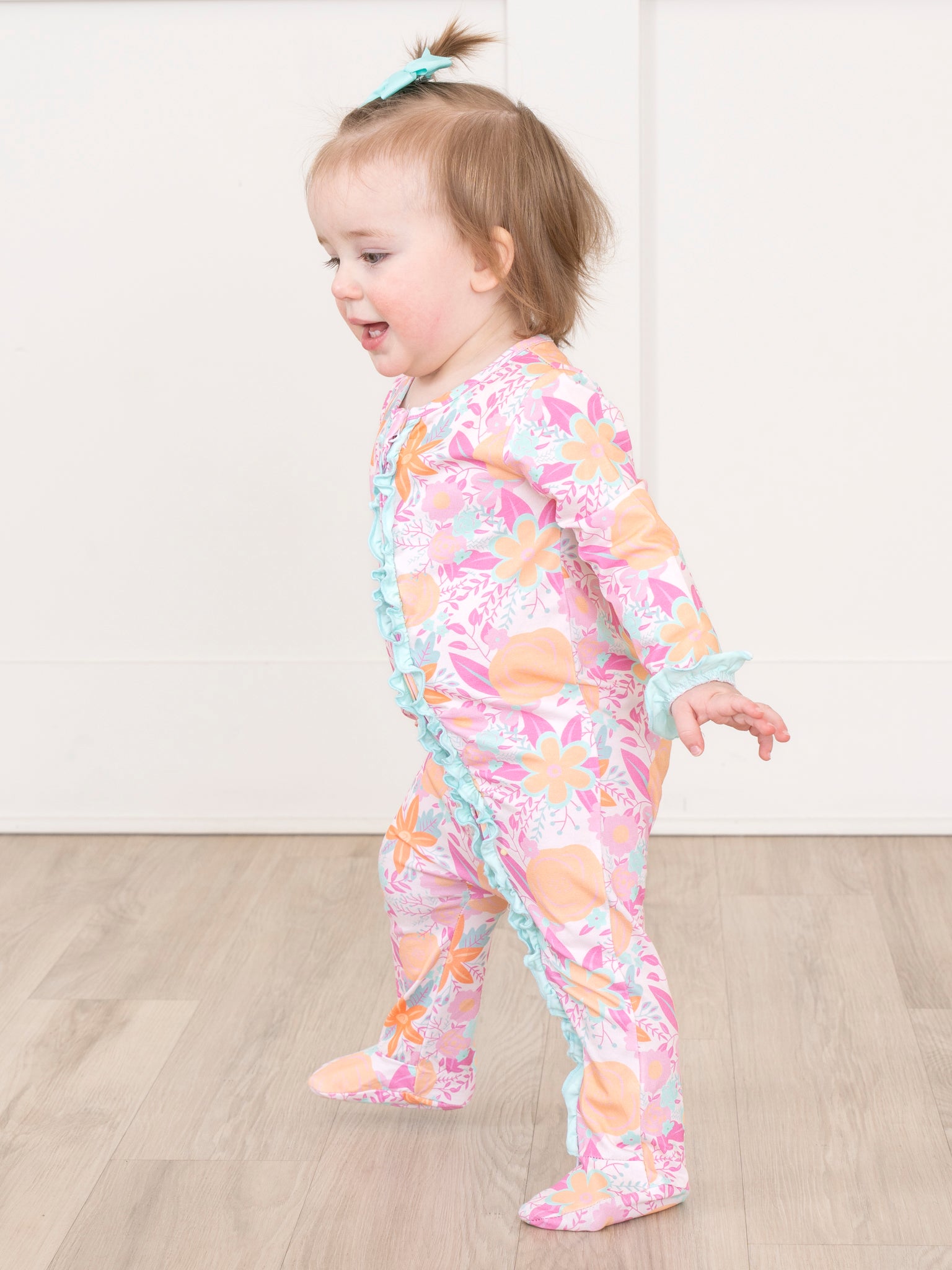 Hibiscus Buds Ruffle Footed Sleeper Pajamas