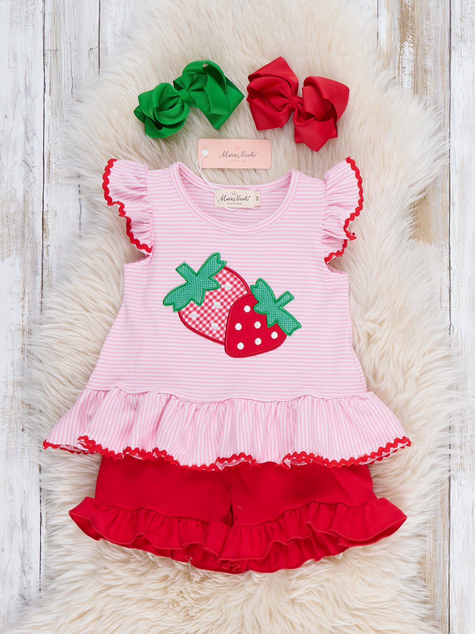 Strawberry Twins Striped Embroidered Cotton Ruffle Outfit