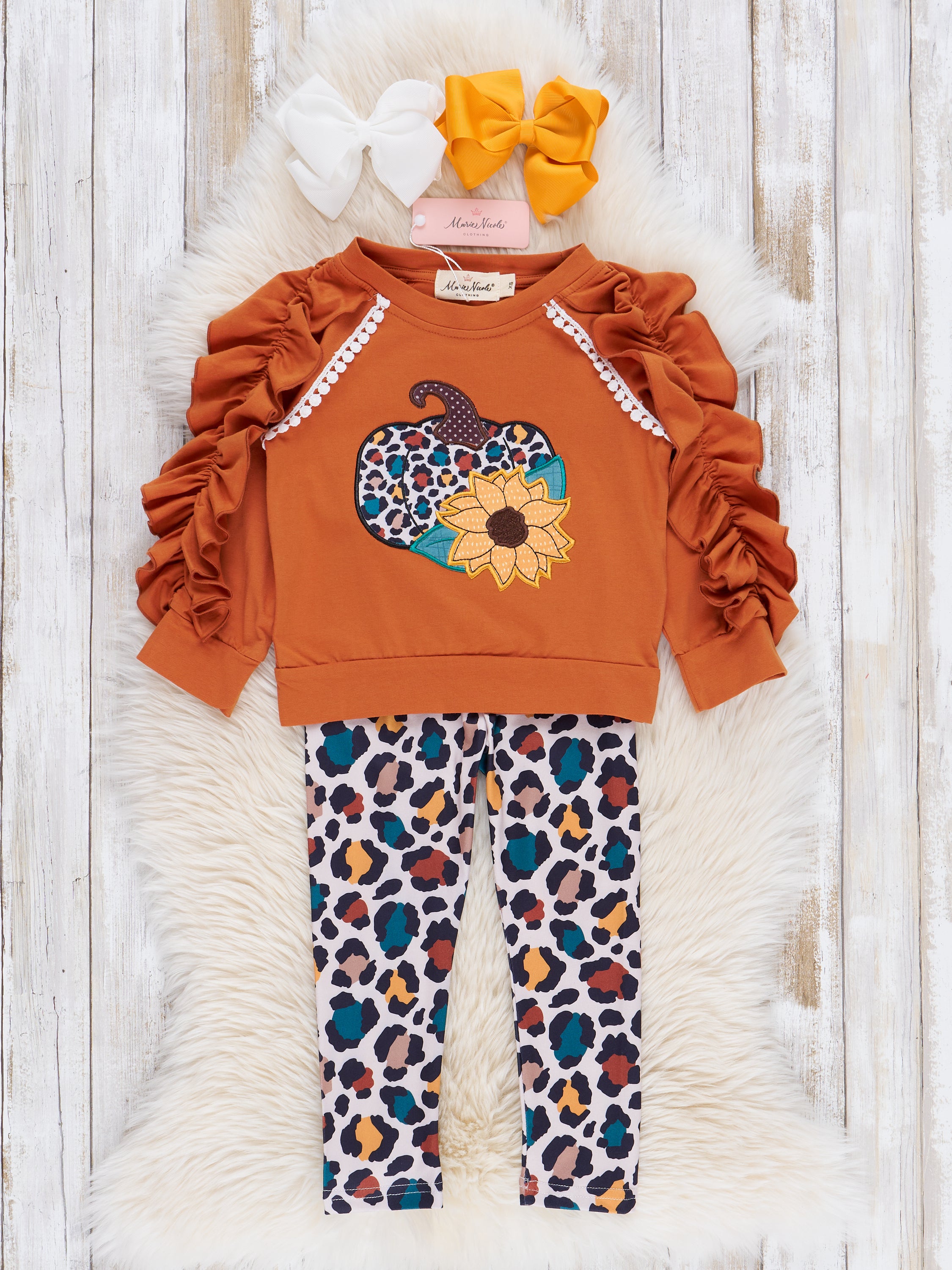 Brown & Orange Pumpkin Harvest Ruffle Outfit