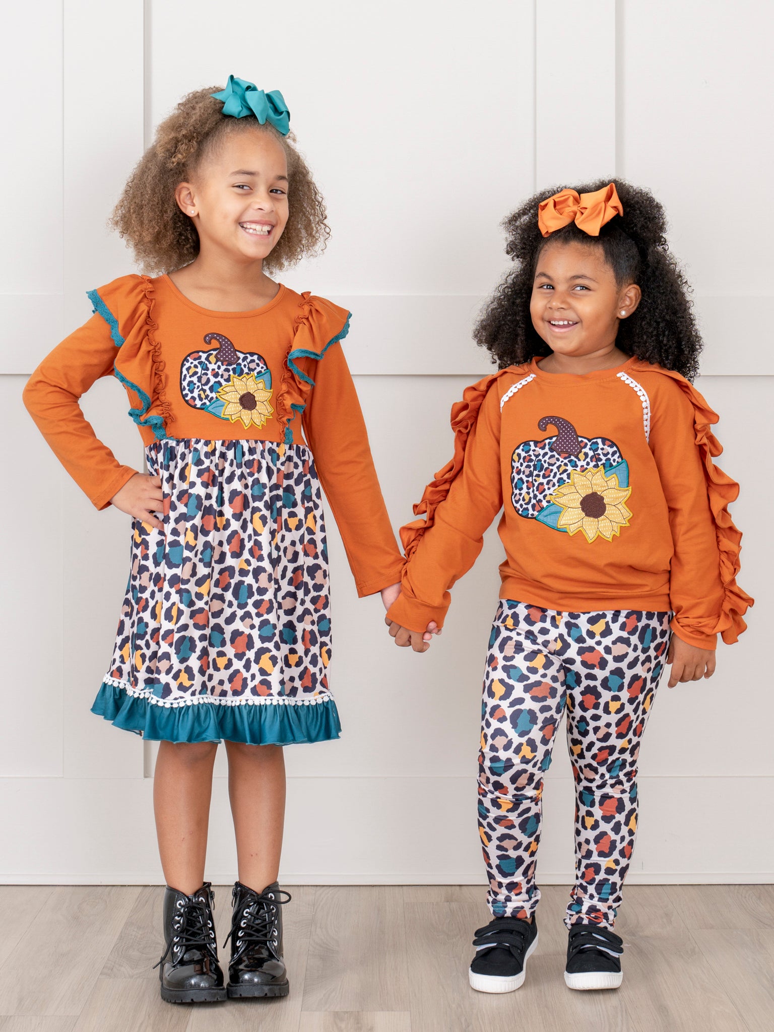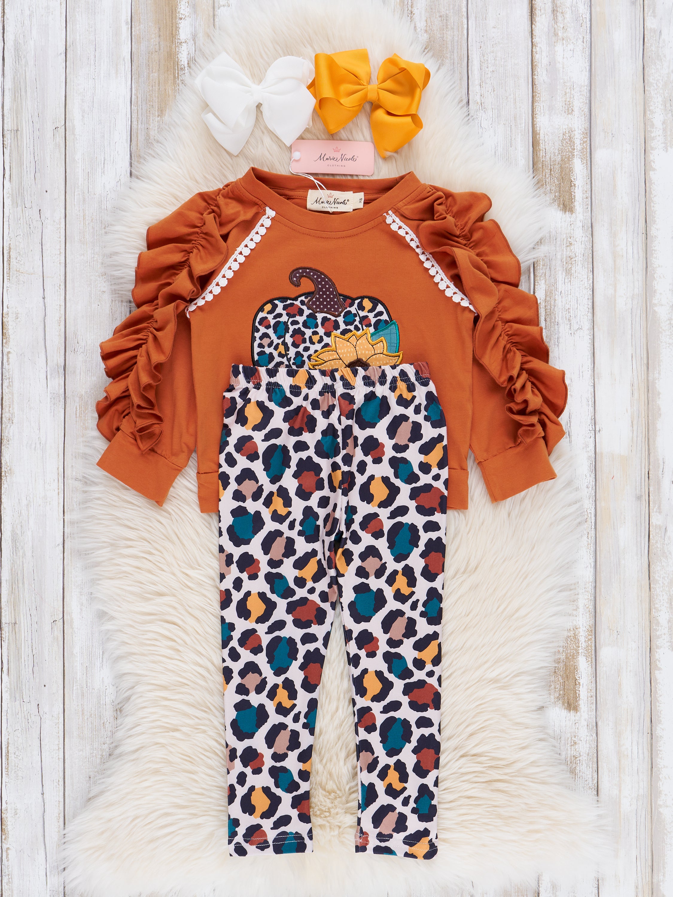 Bronze & Teal Leopard Harvest Ruffle Outfit