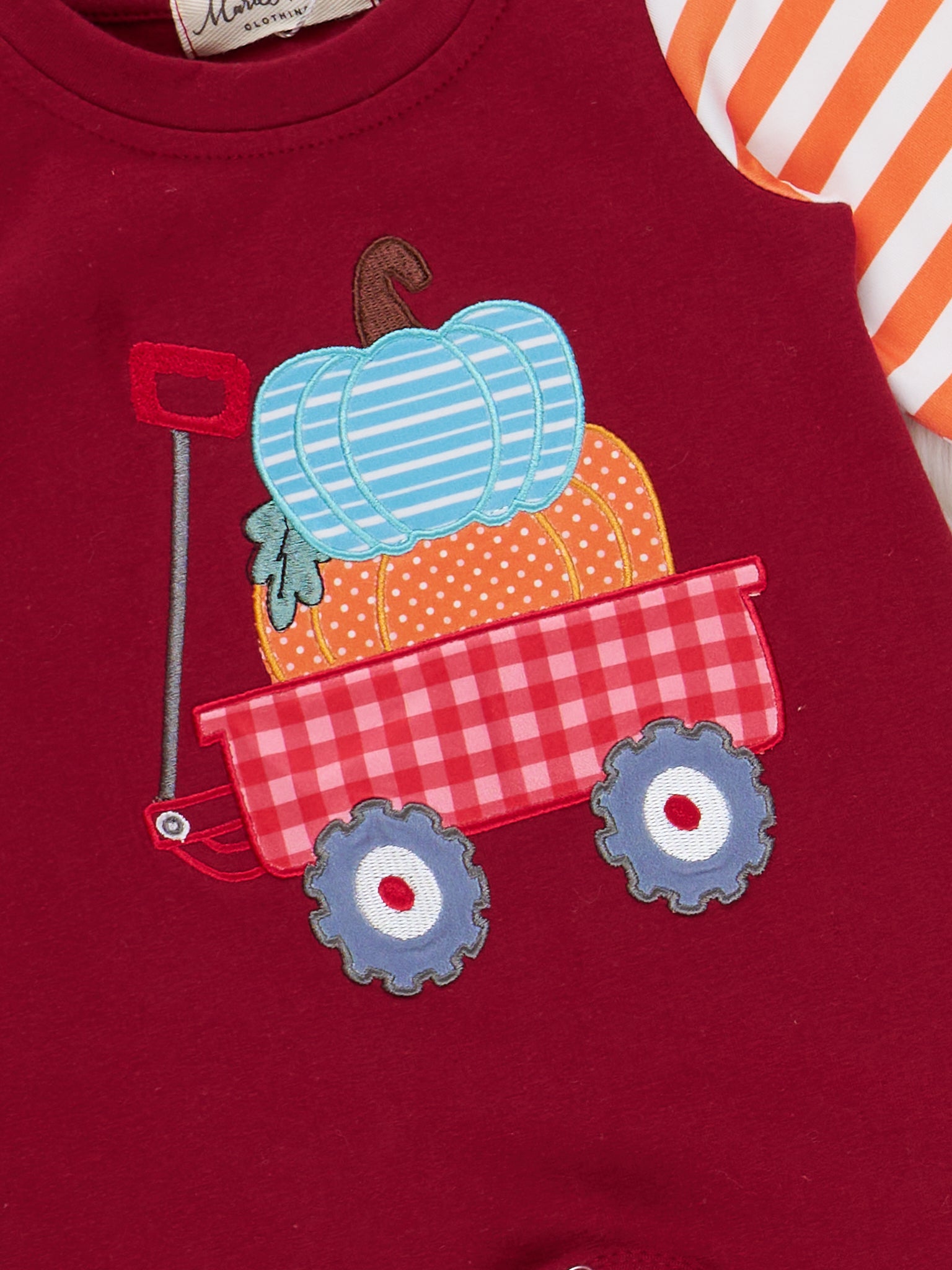 Maroon Pumpkin Wagon Embroidered Striped Romper