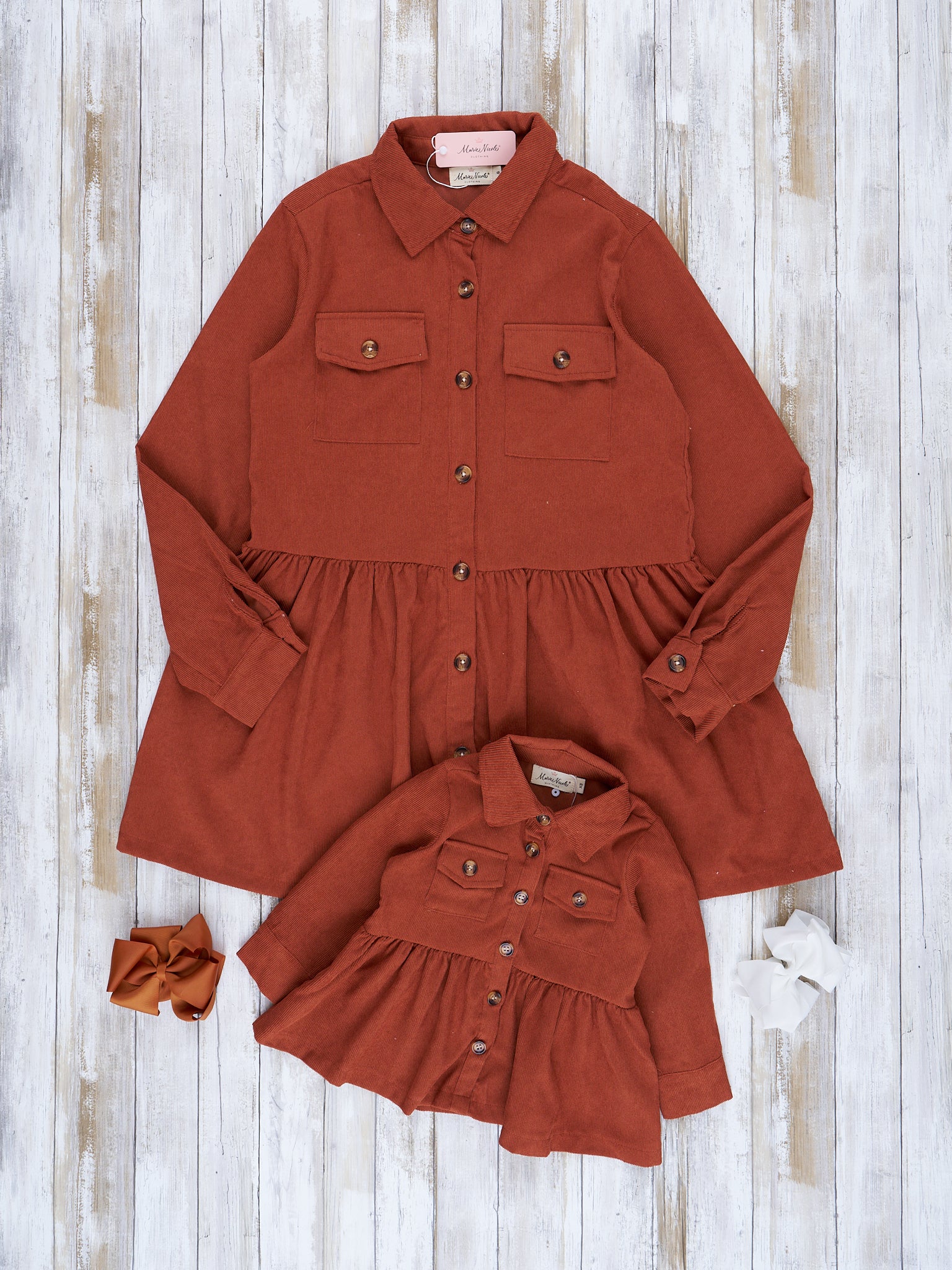 Mom & Me Rusty Plaid Fringe Flannel Shacket