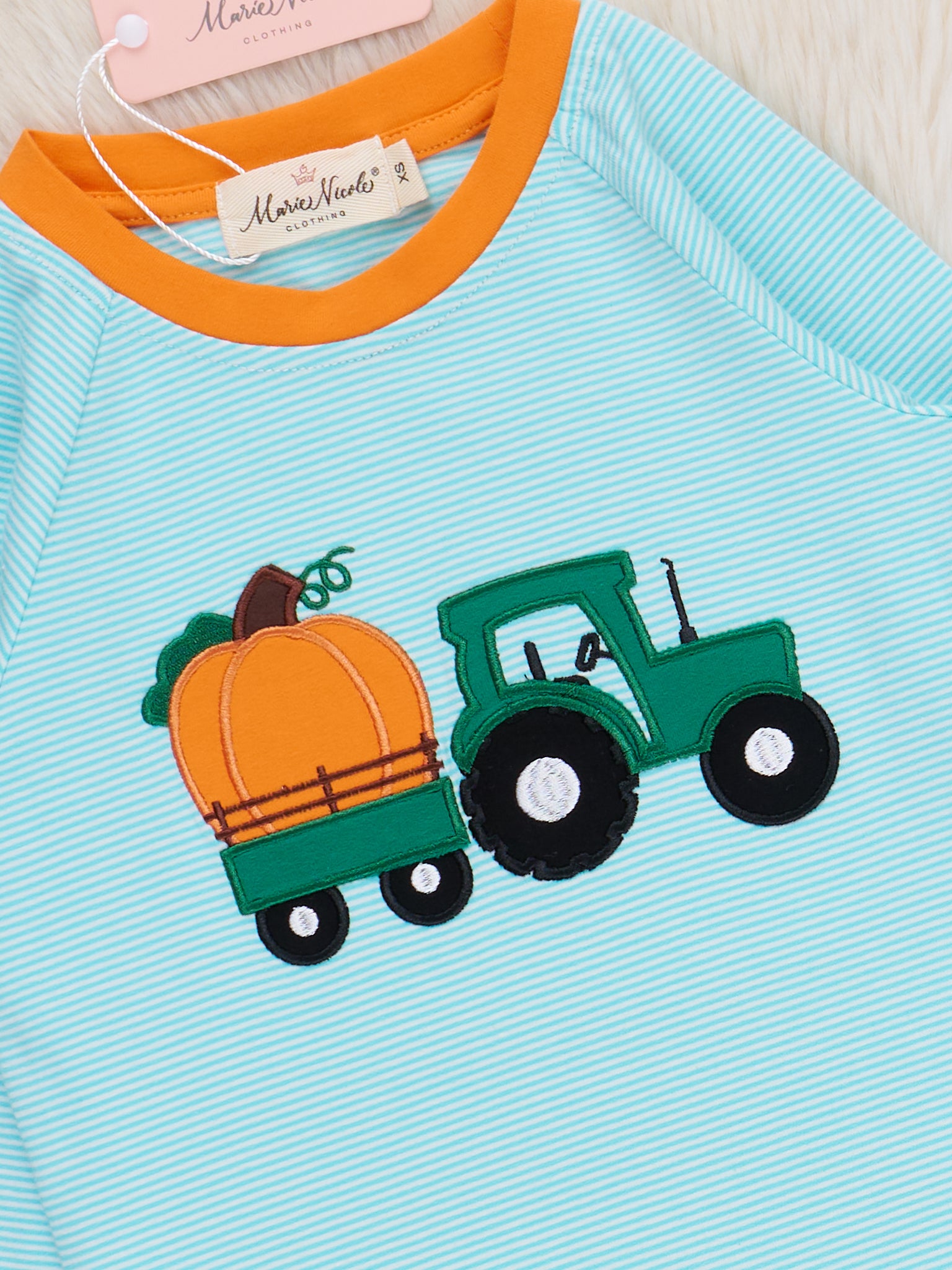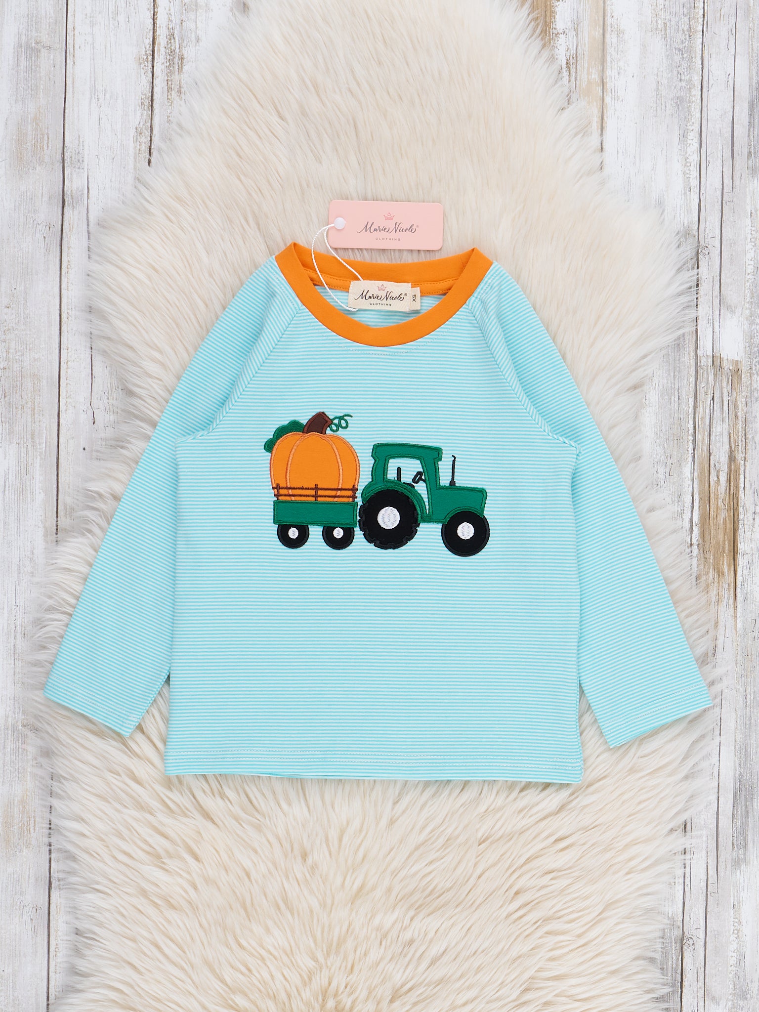 Light Blue Stripes Pumpkin Tractor Shirt