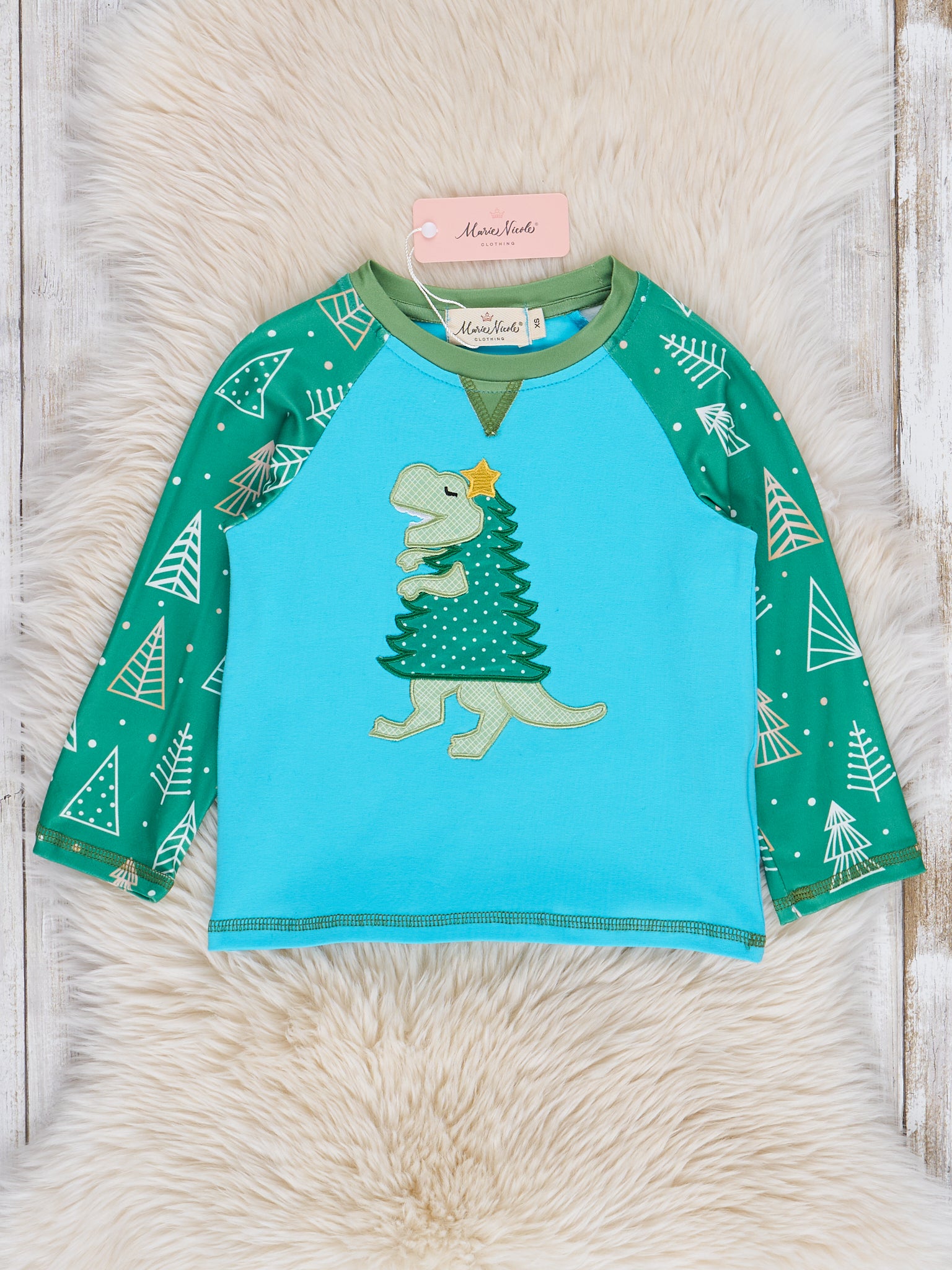 Blue & Green Christmas Tree-Saurus Shirt