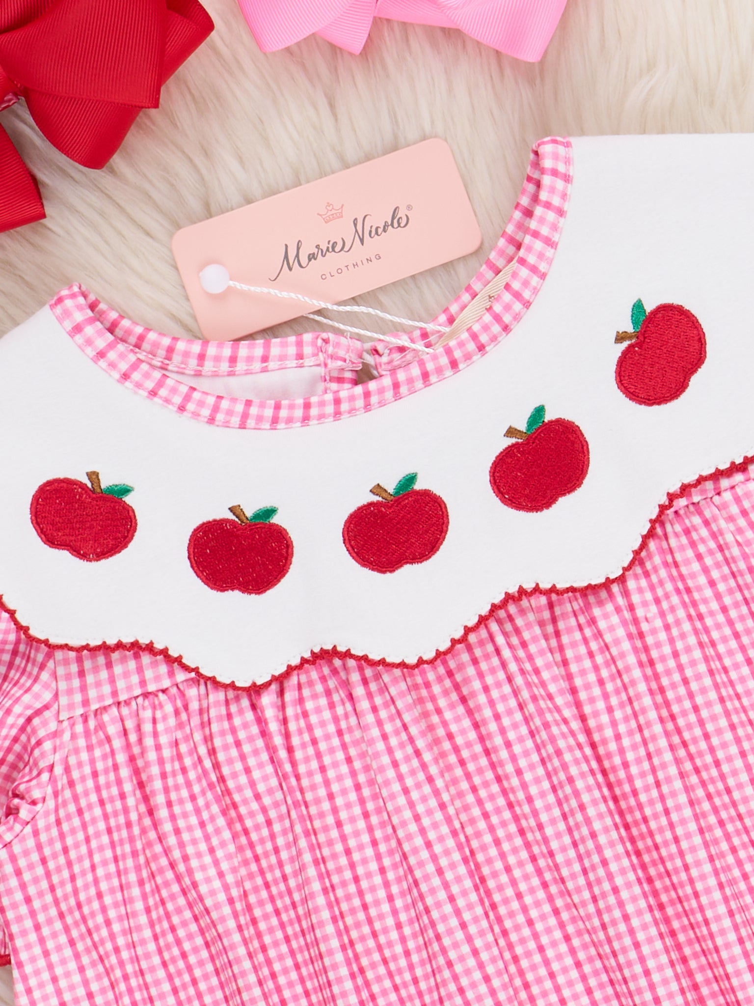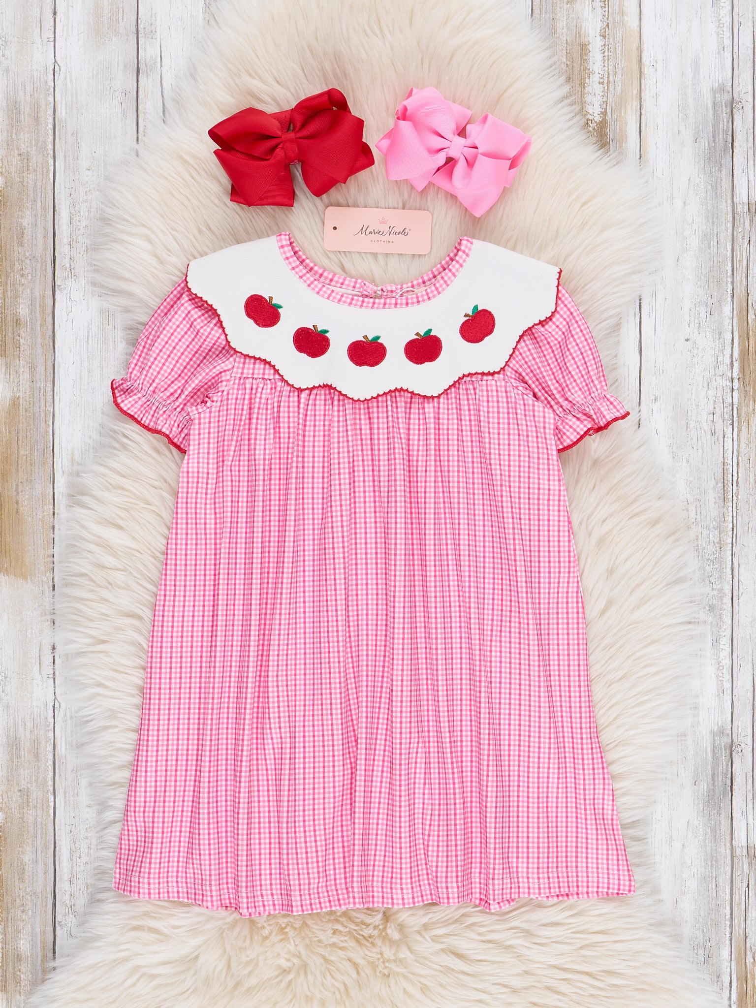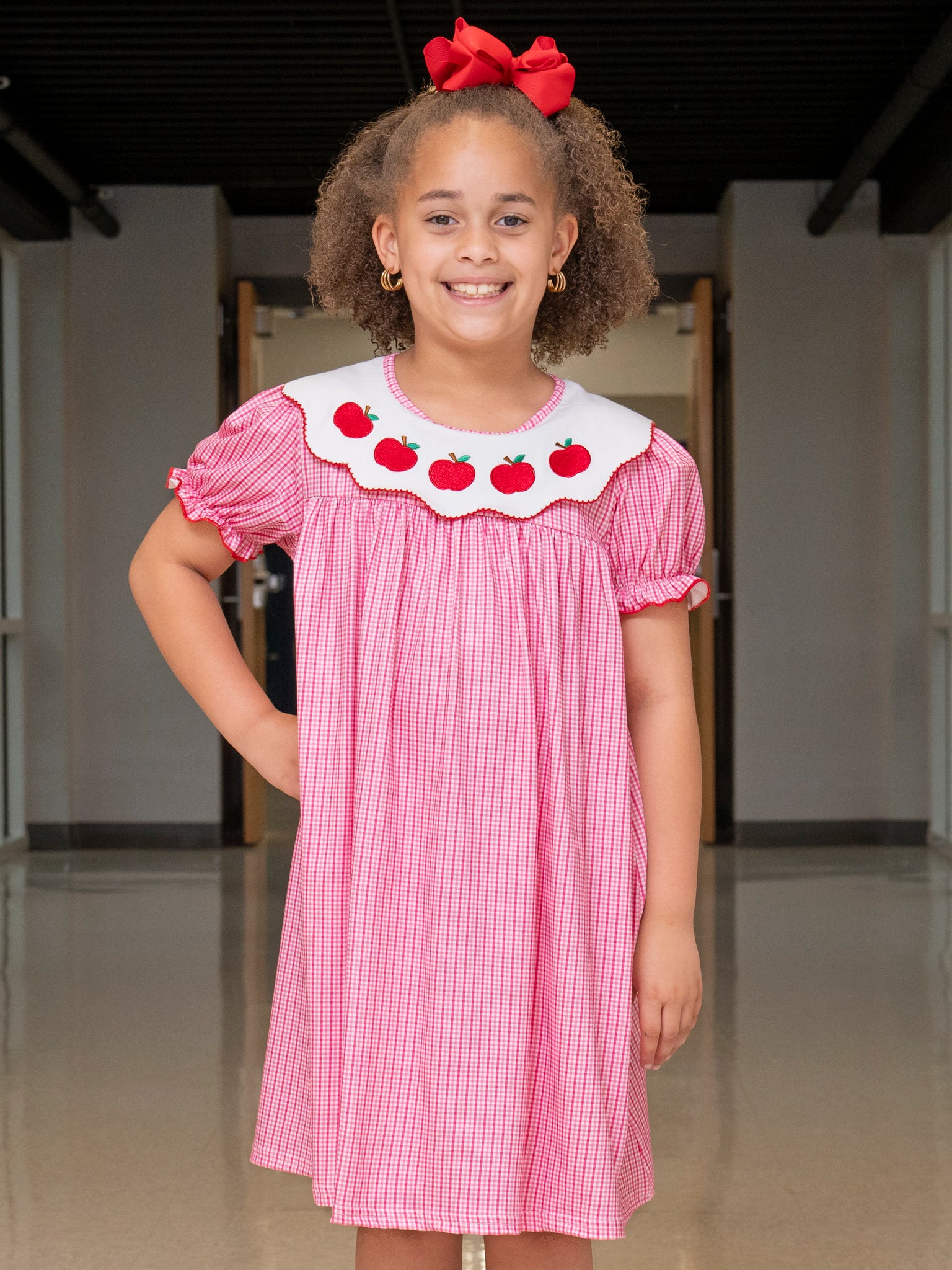 The Gingham Embroidered Apples Dress is a sweet and classic choice perfect for back-to-school and beyond. Featuring soft gingham paired with delicate apple embroidery, this dress from Marie Nicole Clothing combines timeless charm with playful details. Lightweight and comfortable, it’s ideal for classroom days, family gatherings, or any occasion she wants to look effortlessly adorable.