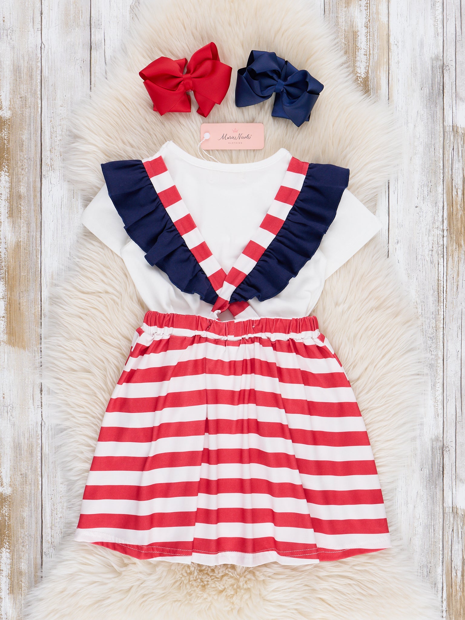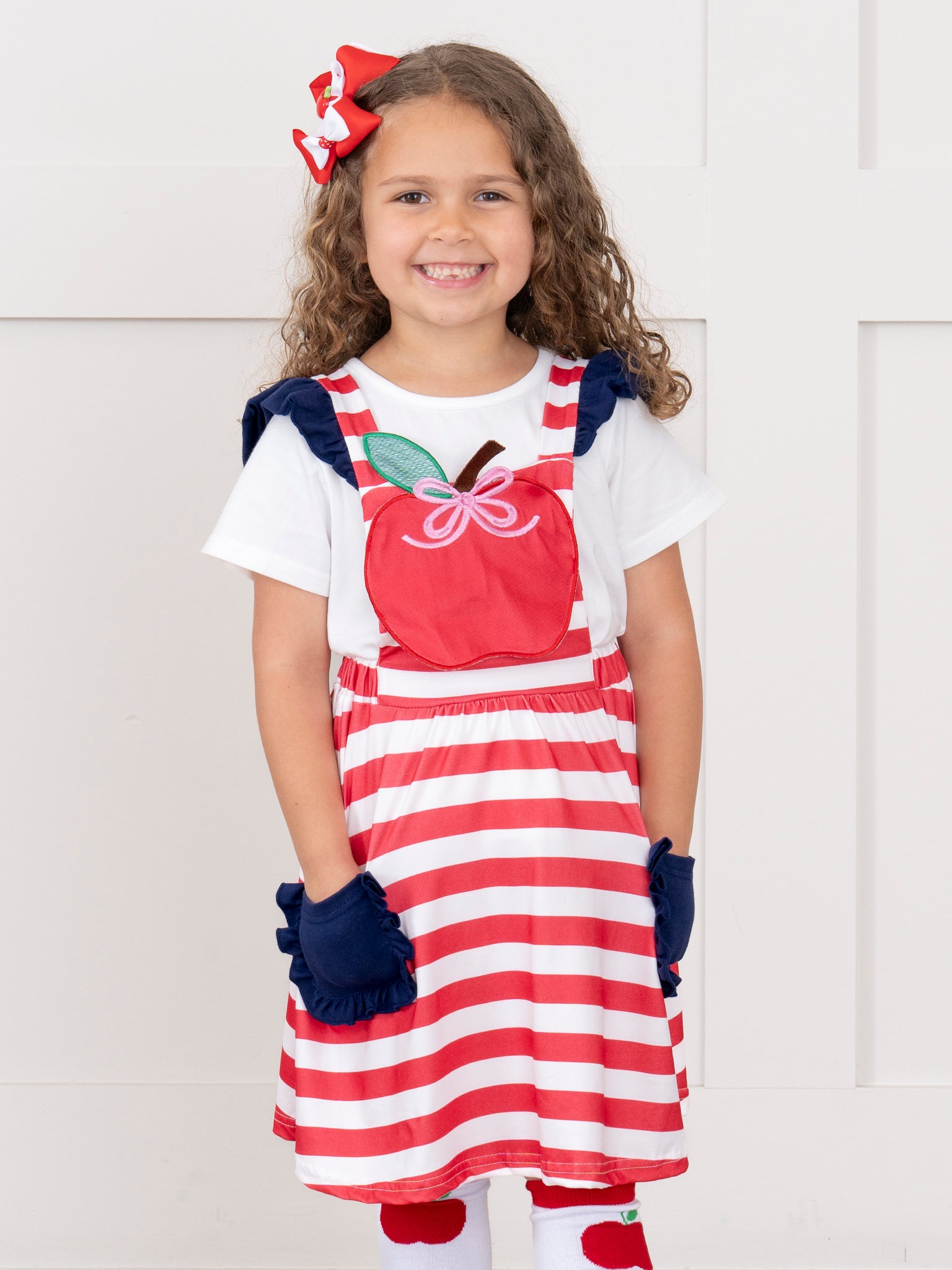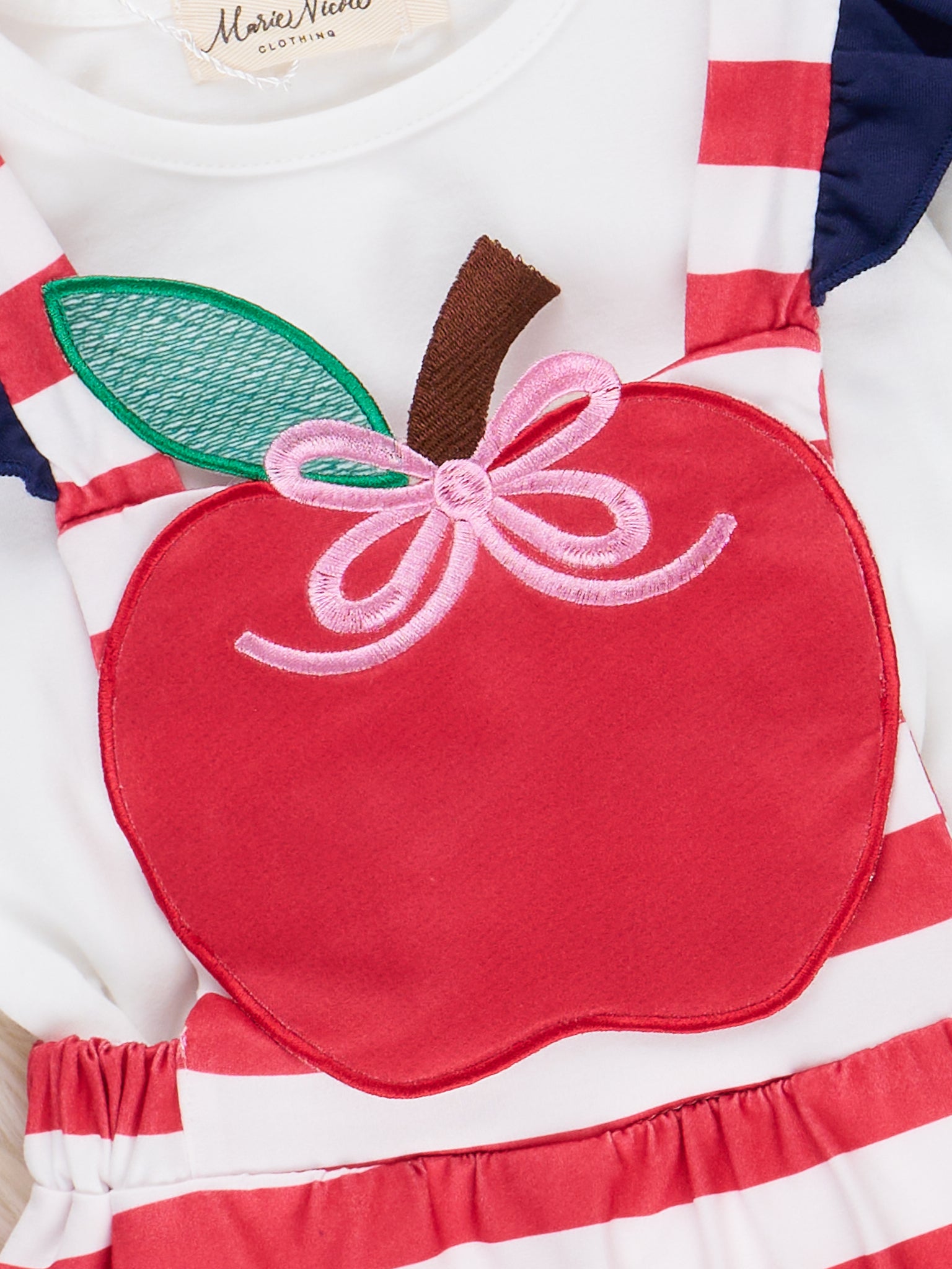 The Striped Embroidered Apple Skirtall Outfit is a playful and polished look perfect for back-to-school and everyday fun. Featuring classic stripes paired with charming apple embroidery, this skirtall from Marie Nicole Clothing is both stylish and comfortable. Made from soft, breathable fabric, it’s ideal for classroom adventures, family outings, or any day she wants to stand out with timeless charm.
