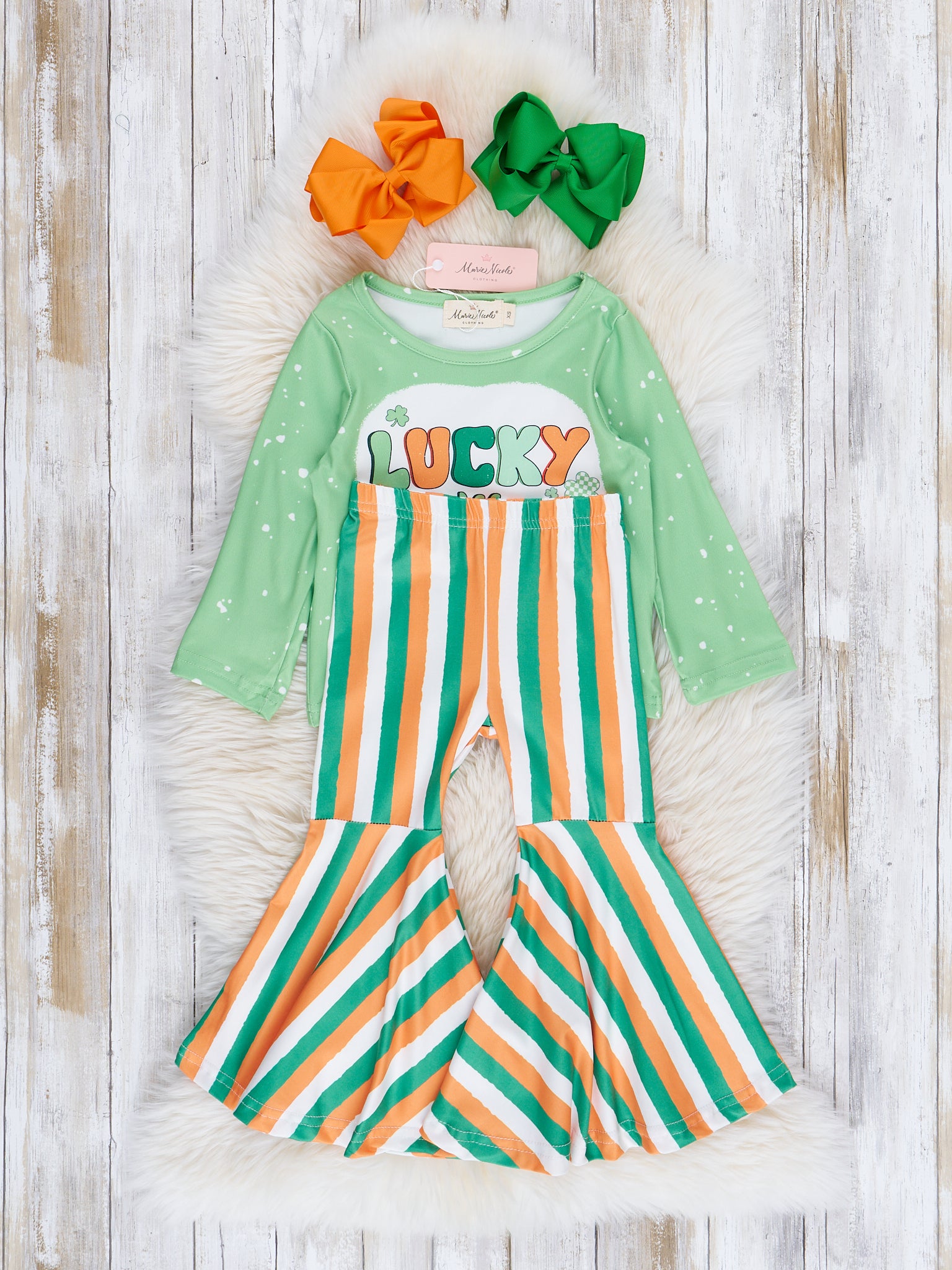 Green Lucky Vibes Striped Bell Bottom Outfit