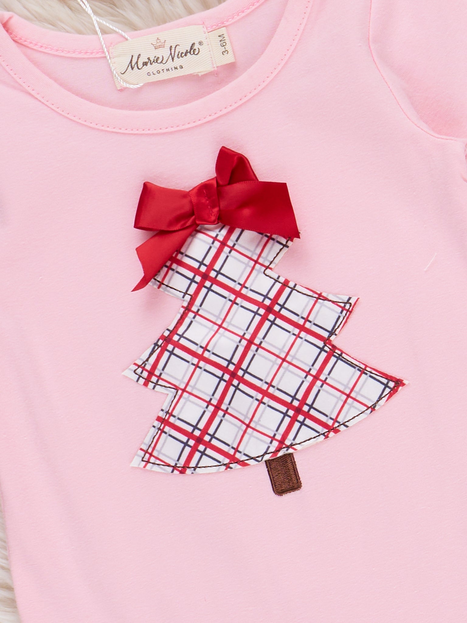 Get ready for holiday cheer with this Embroidered Plaid Christmas Tree Lace Trim Romper. Featuring a stylish bodice with a snowflake print ruffles and an adorable embroidered plaid Christmas tree applique, this romper is perfect for any festive occasion. Complete the look with and match with the sister set for even more fun!