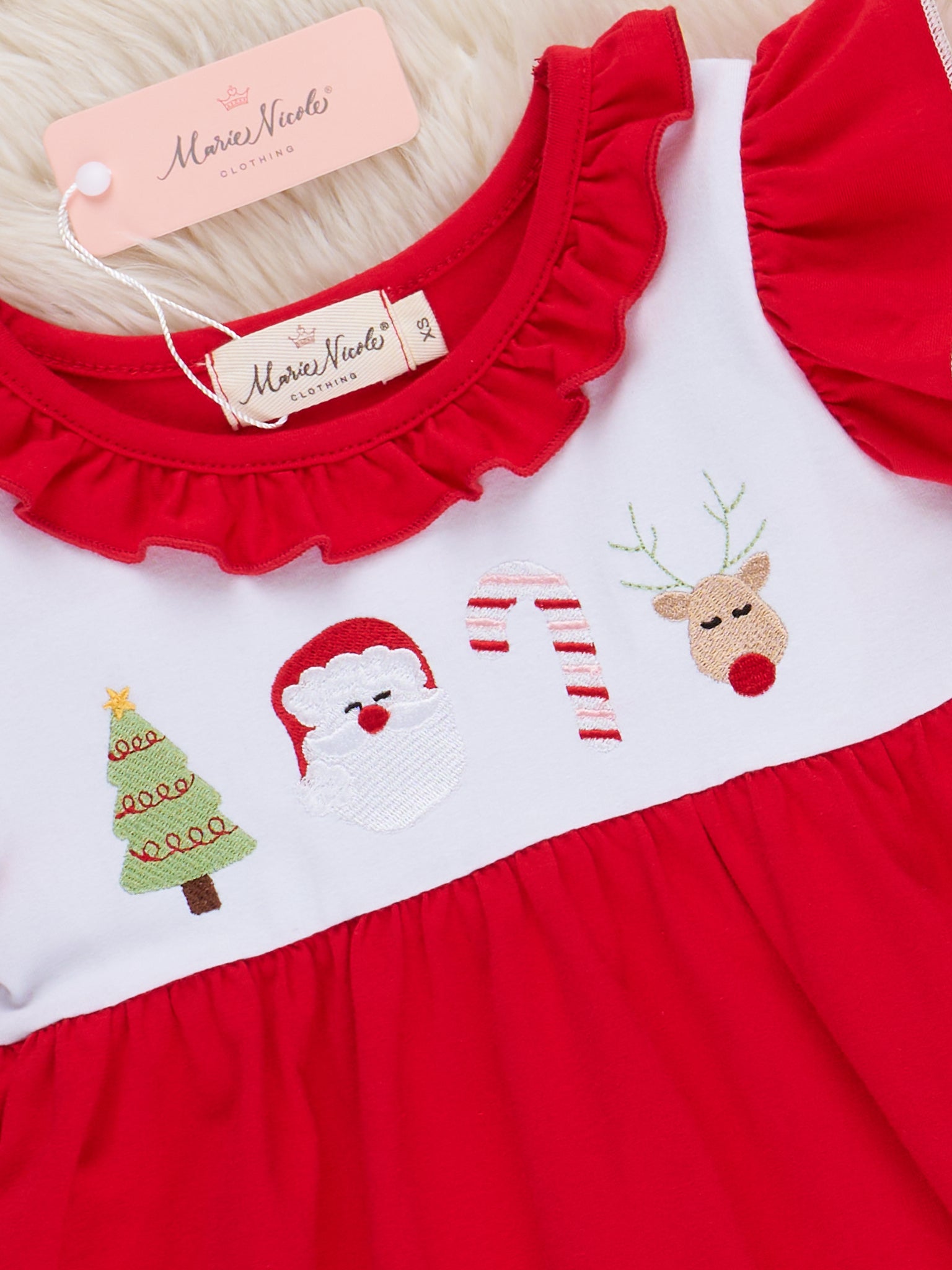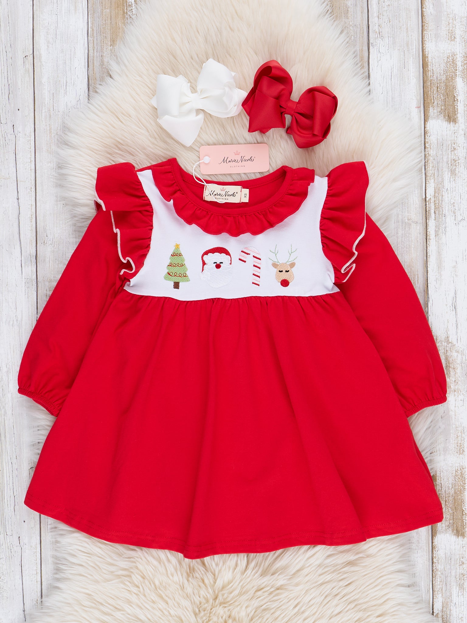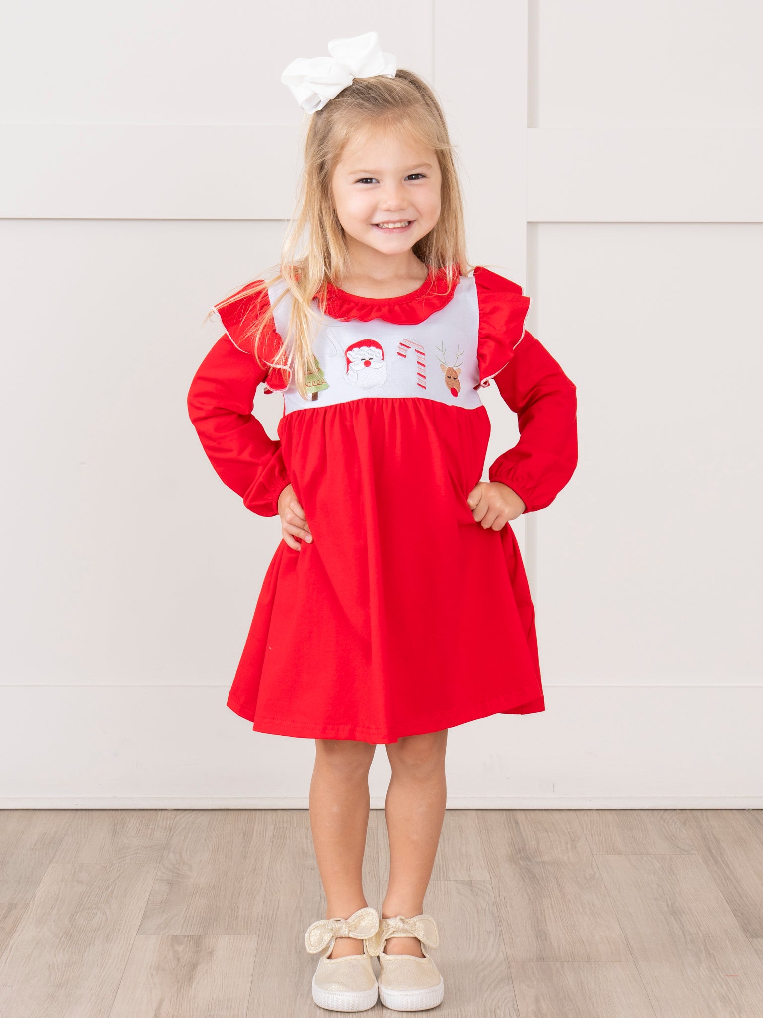 Get ready for some holiday fun with our Holiday Embroidered Ruffle Dress! This girls dress features a playful ruffle detail and an embroidered holiday motif. The festive ruffle trim adds an extra touch of Christmas cheer. Perfect in its sister set, this dress will have your little one looking adorable and festive all season long!