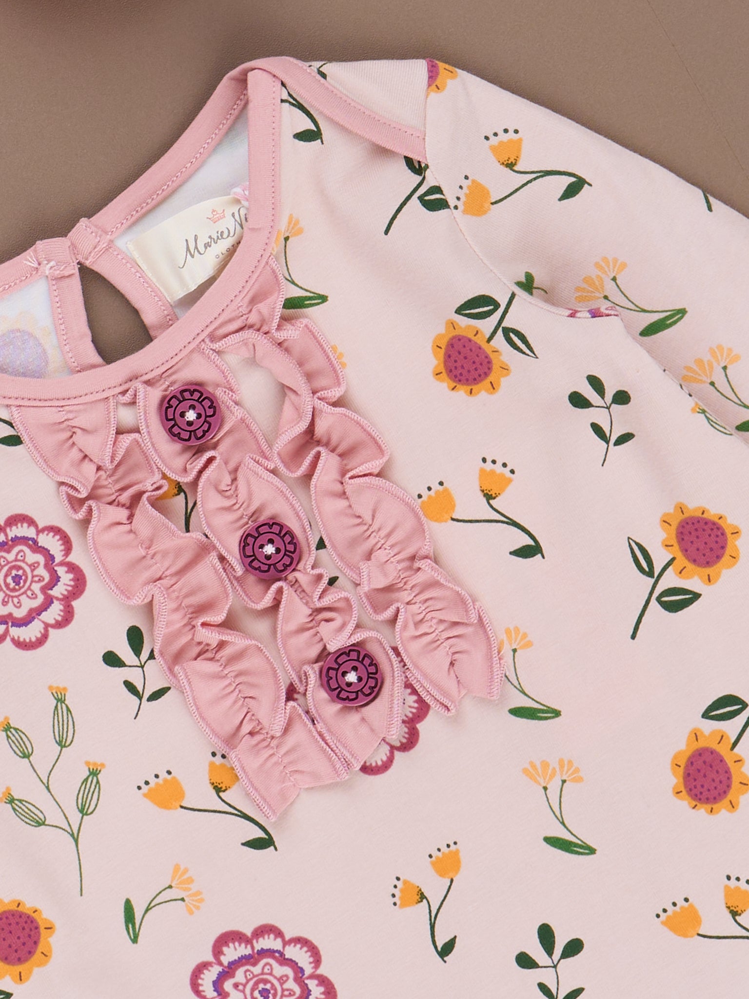 Let your little flower bloom in our Bloomberry Fields collection, featuring soft pastels, bold stripes, and floral patterns that evoke the beauty of a spring garden. Each garment is made of a high-quality material that ensures comfort, durability, and longevity. Our hand-drawn Bloomberry Fields print features gorgeous florals and incorporates polka dots & stripes with elbow patches in the full collection.