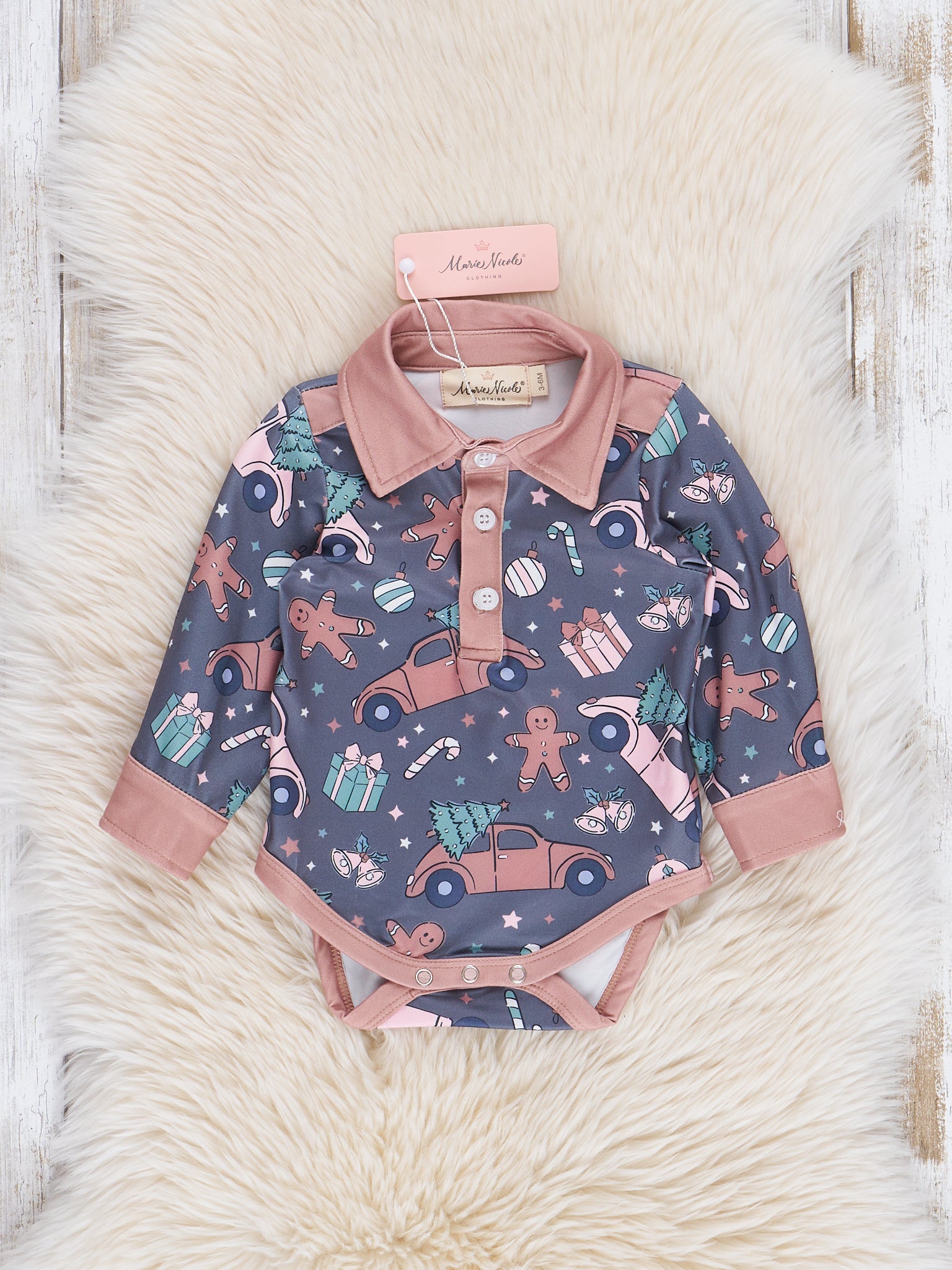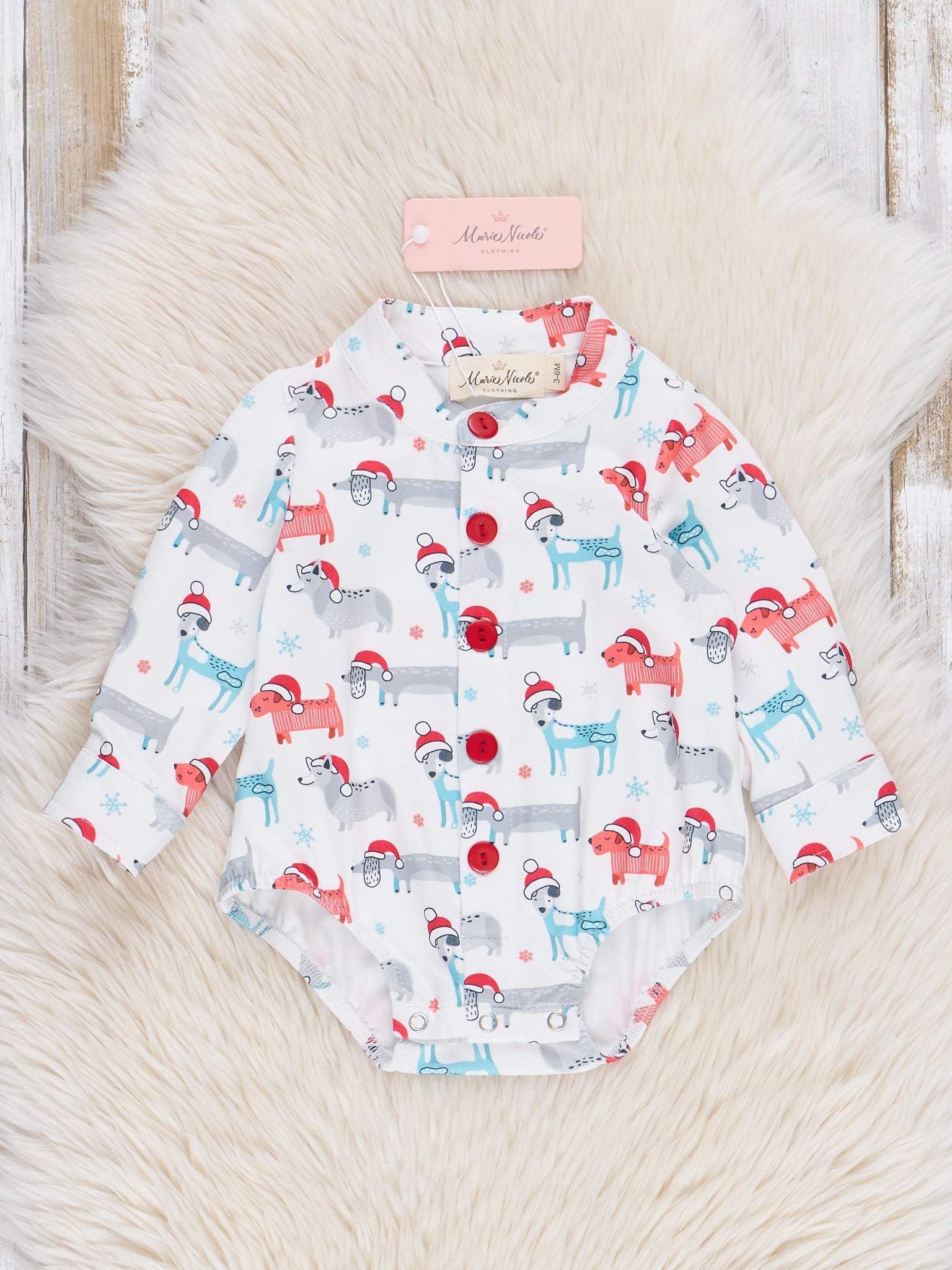 Vintage Red Holiday Dinosaurs Raglan Romper