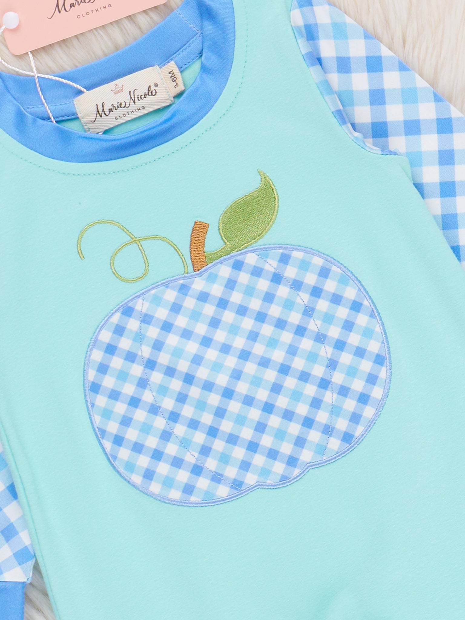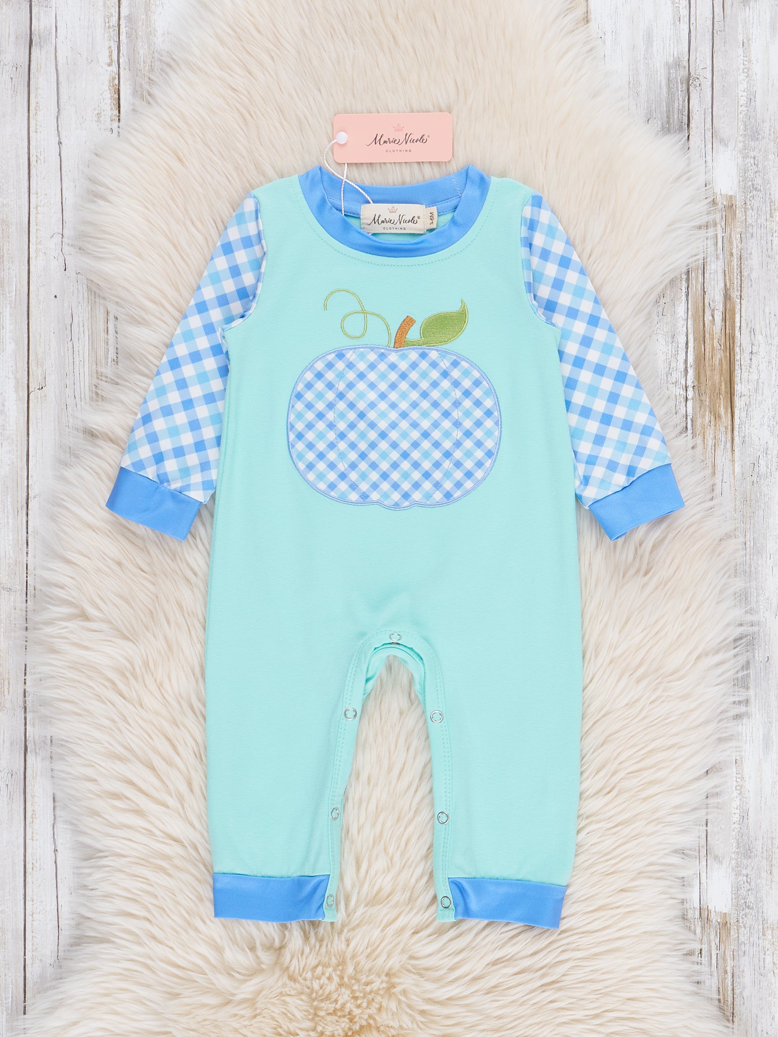 The Embroidered Gingham Grove Pumpkin Romper is a vibrant blue fall statement piece. Blending cool gingham patterns with pumpkin embroidery, this one-piece from Marie Nicole Clothing is a playful addition to your child's closet. The fabric is movable, comfortable and soft, so your child can enjoy any autumn gatherings, photos, and pumpkin-pickings.