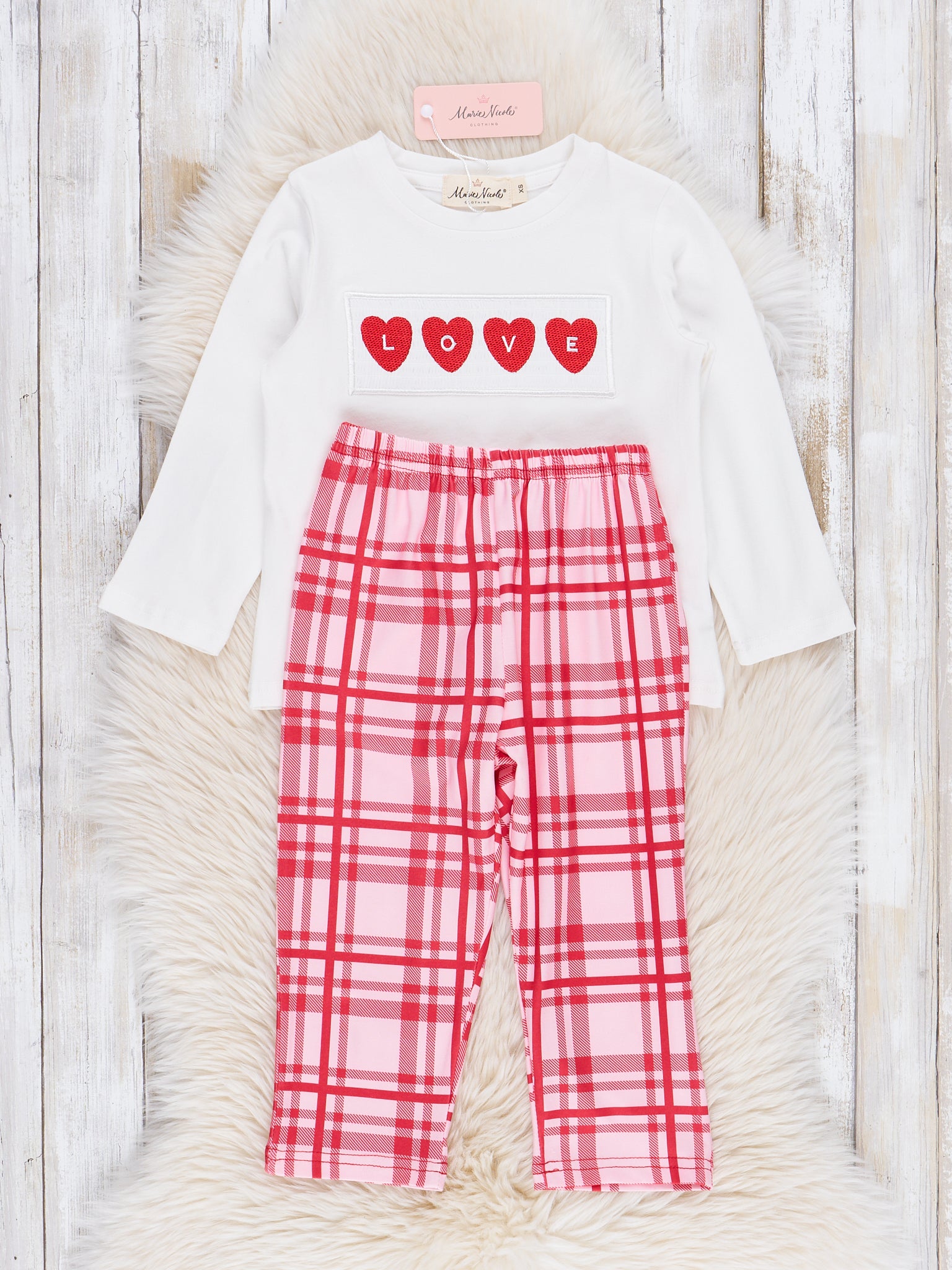 Red Plaid Smocked Hearts Outfit
