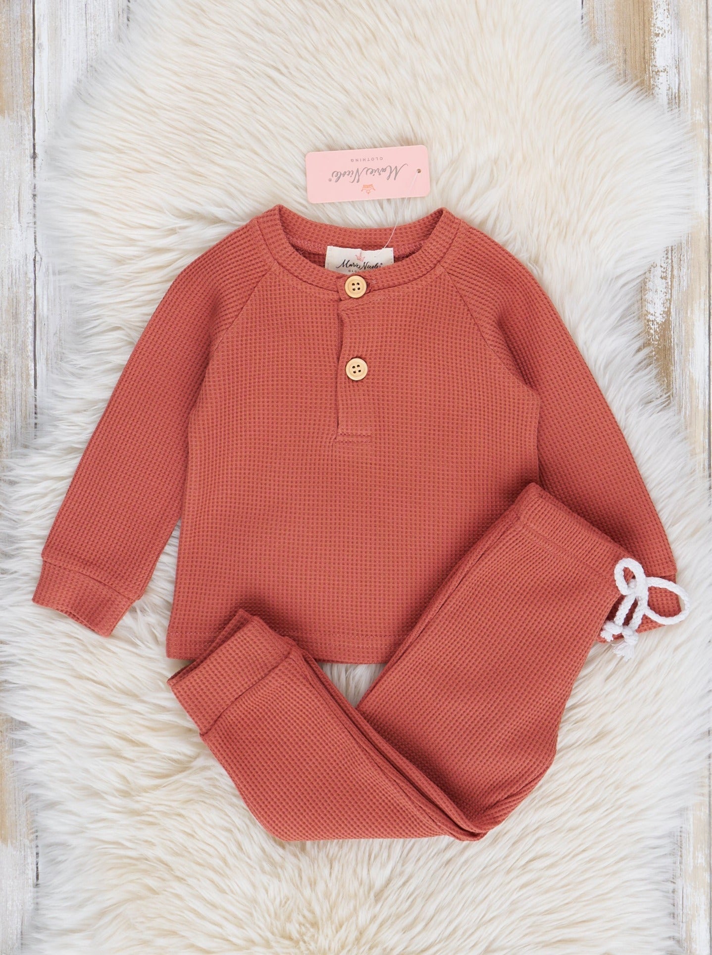 Perfect comfy-cozy lounge set in adorable waffle knit.