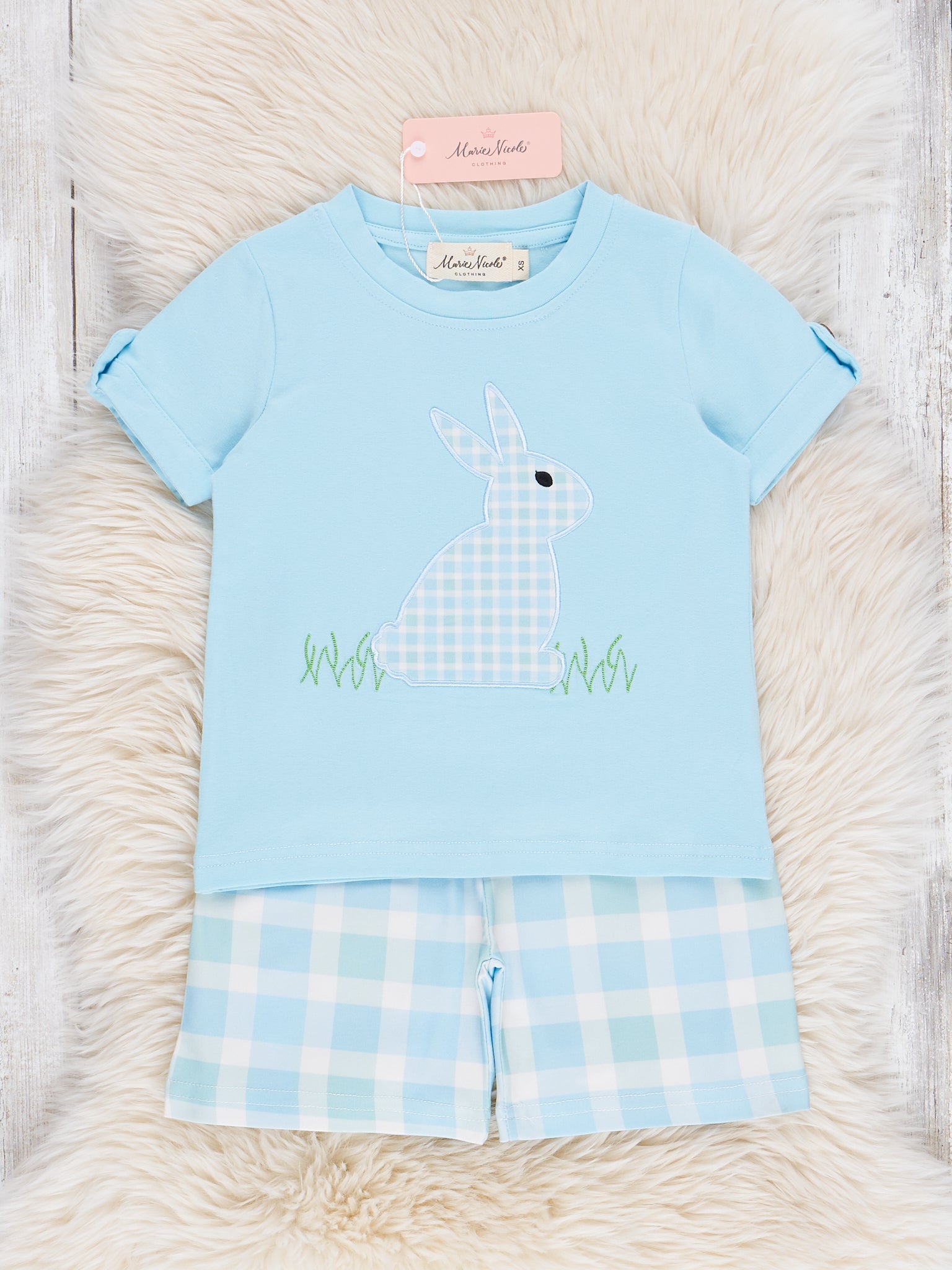 Embroidered Mr Bunny Plaid Outfit