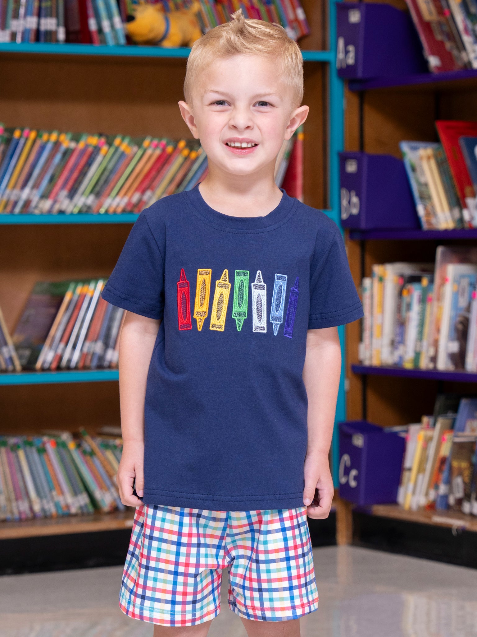 Bright Crayons Embroidered Gingham Outfit