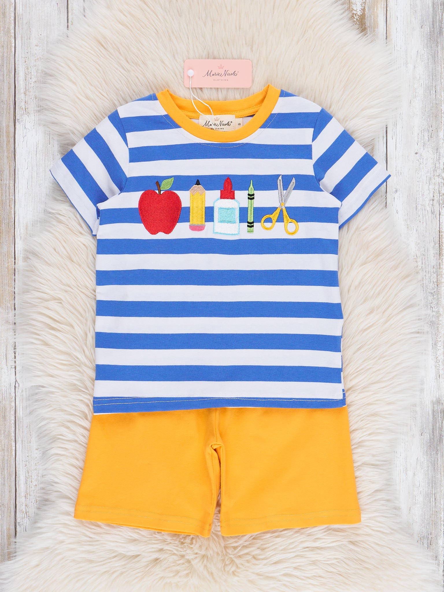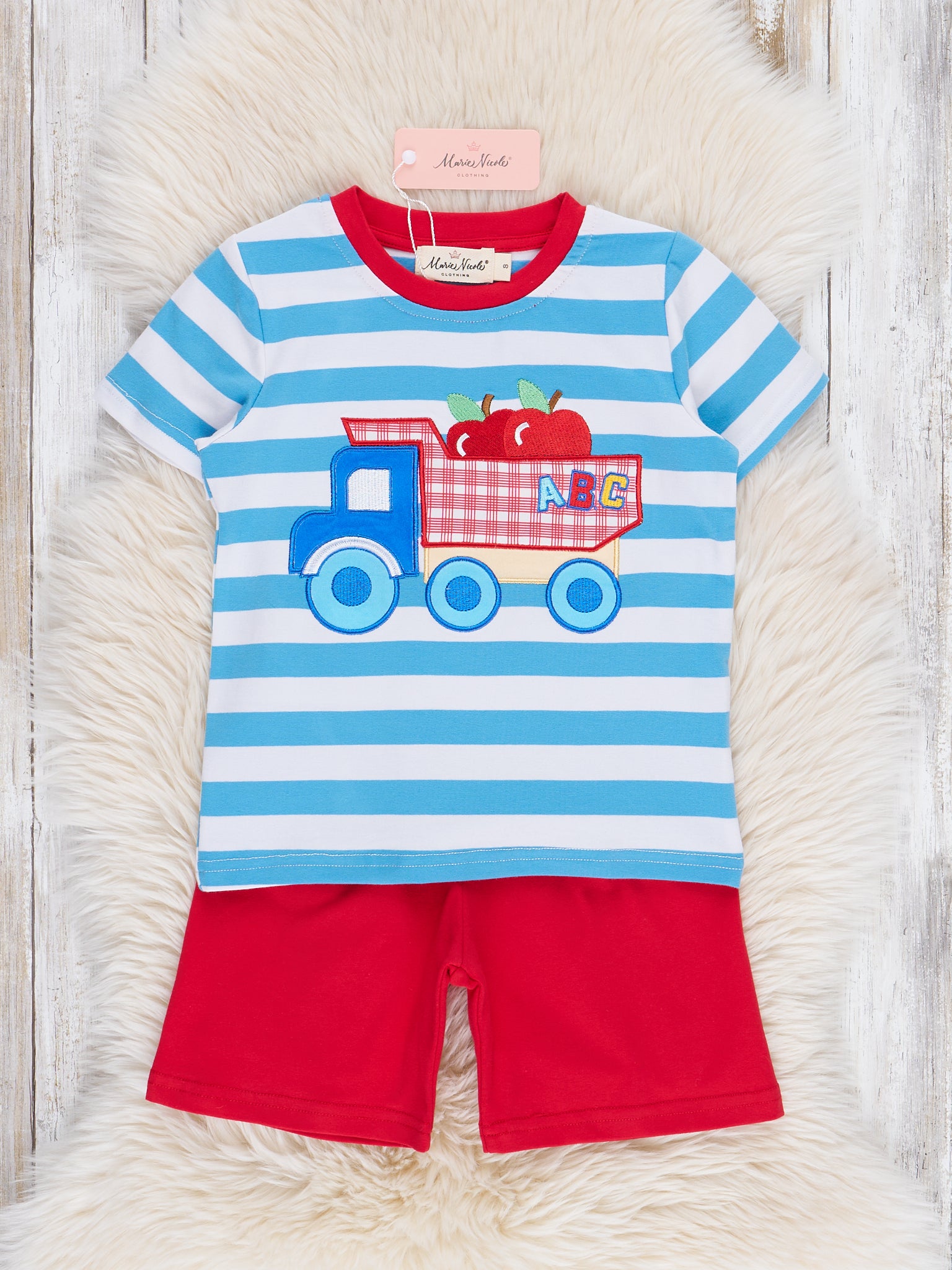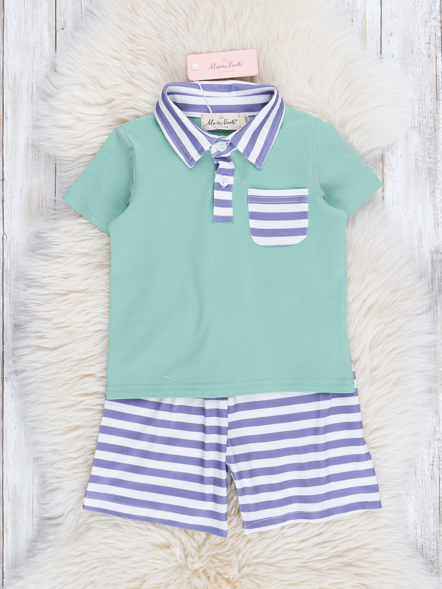 Blue & Green Striped "Moon & Back" Bloomers Outfit