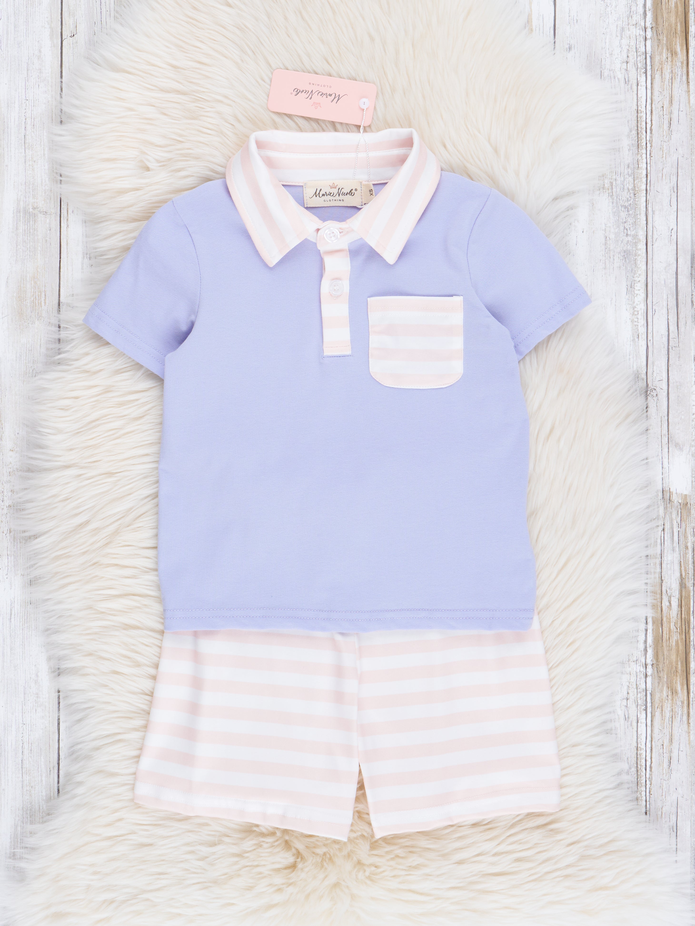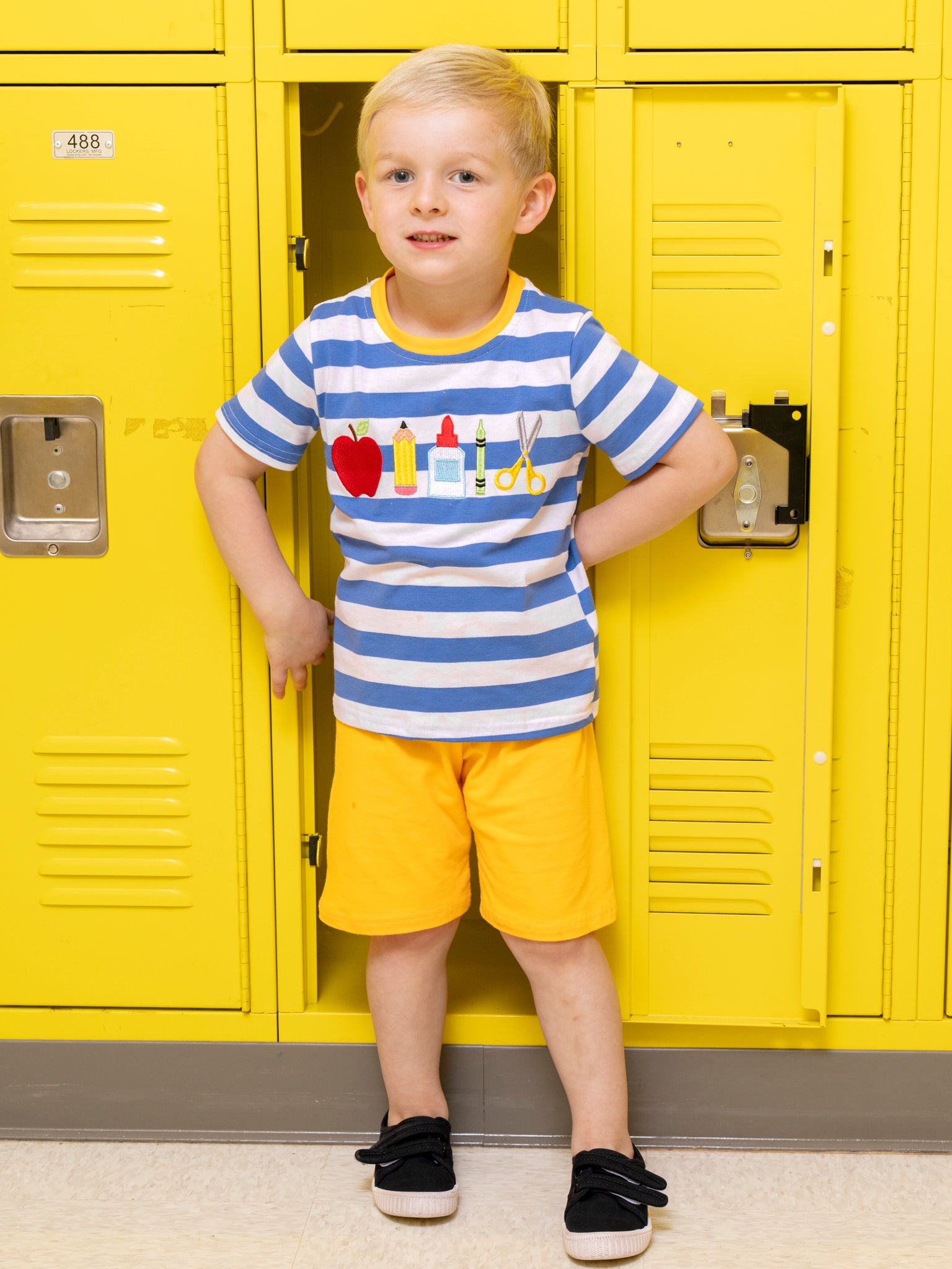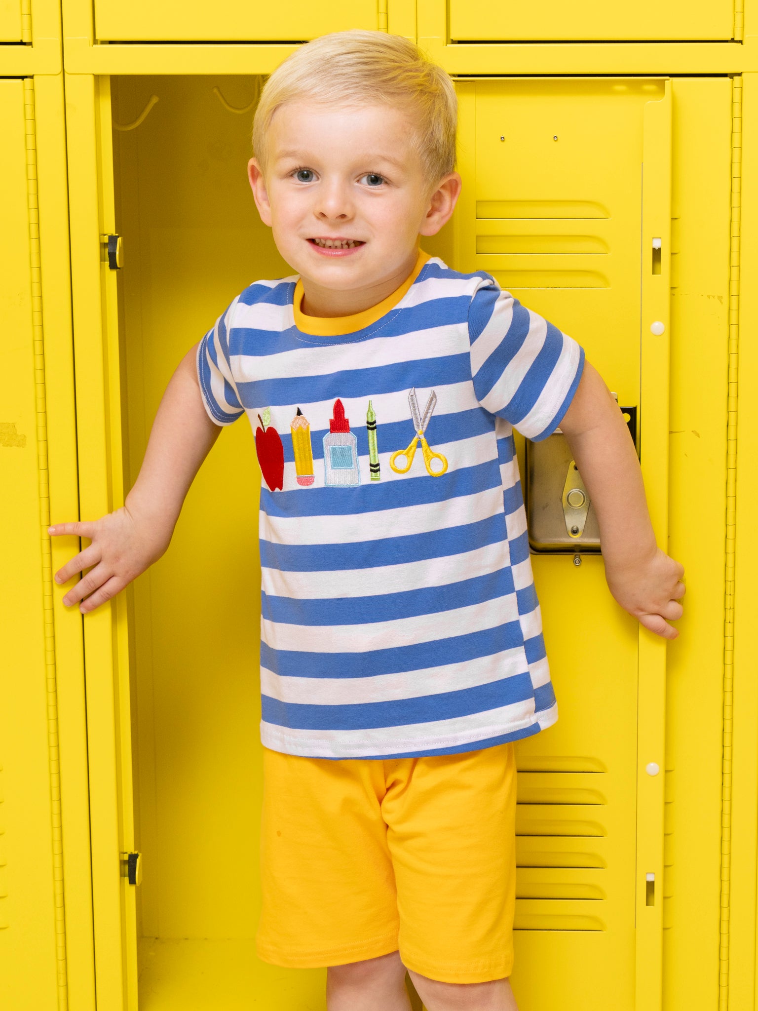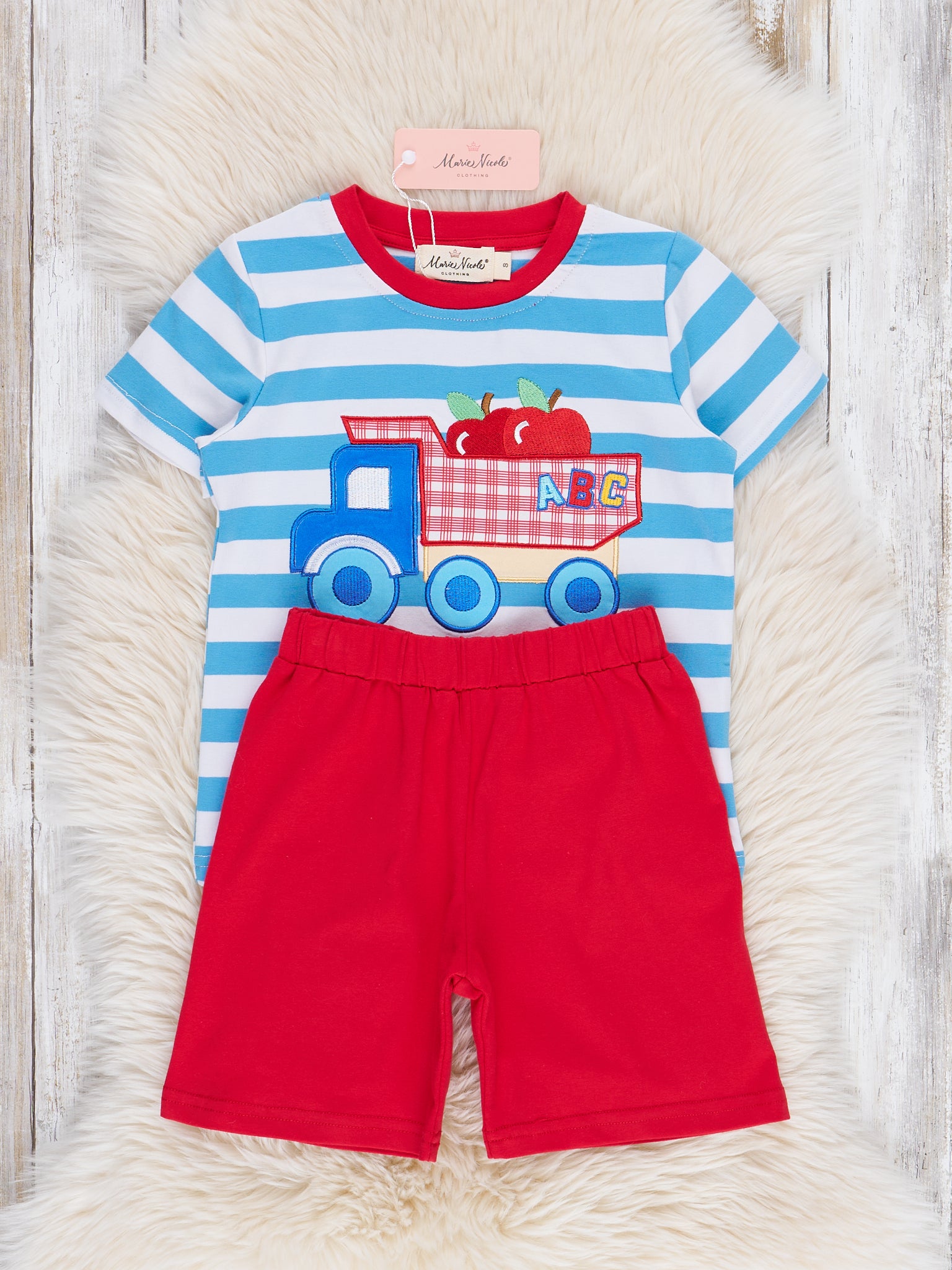 Blue & Green Striped "Moon & Back" Bloomers Outfit