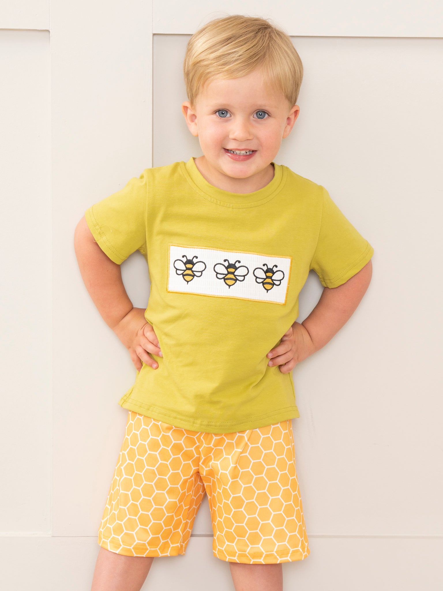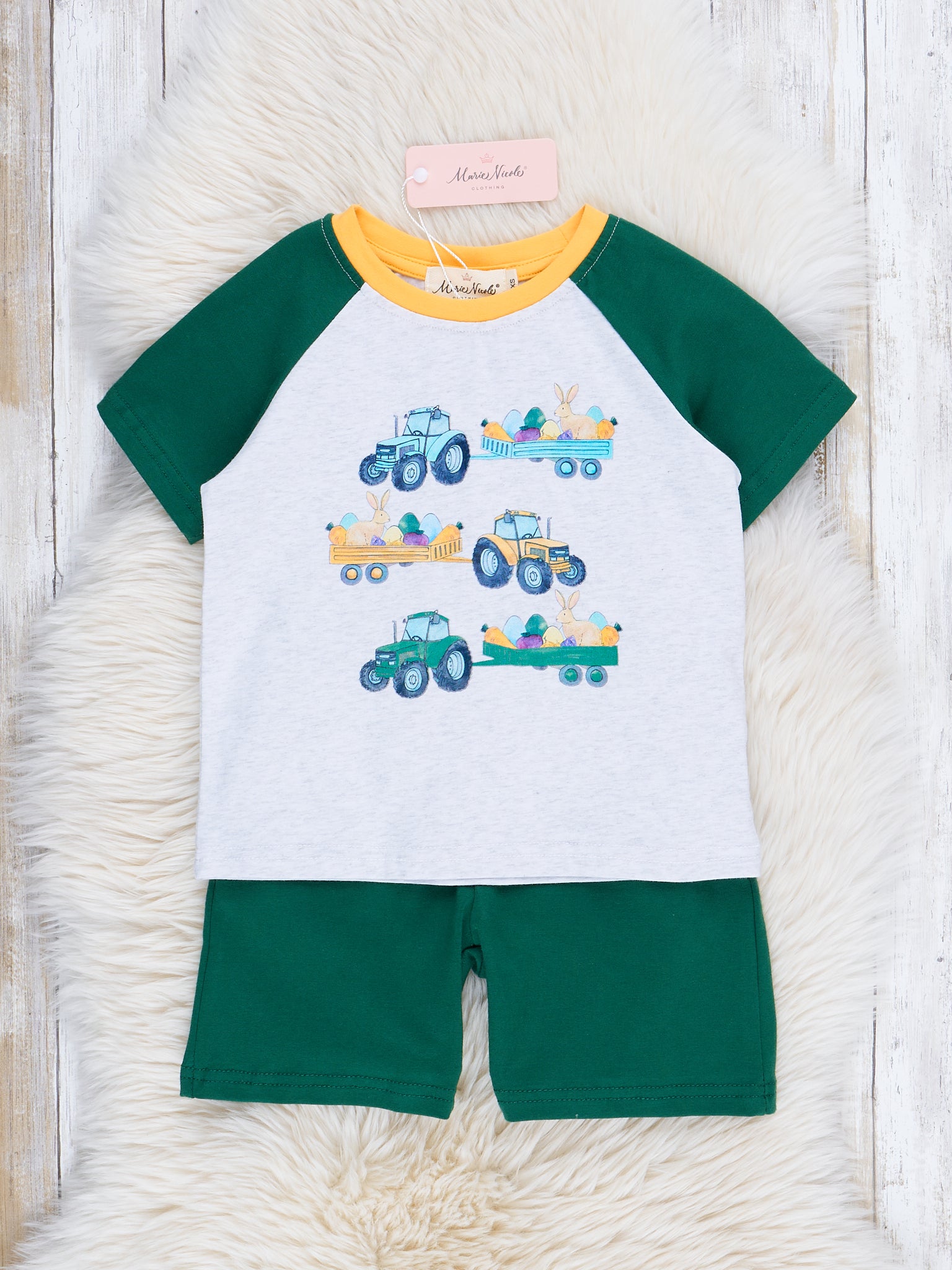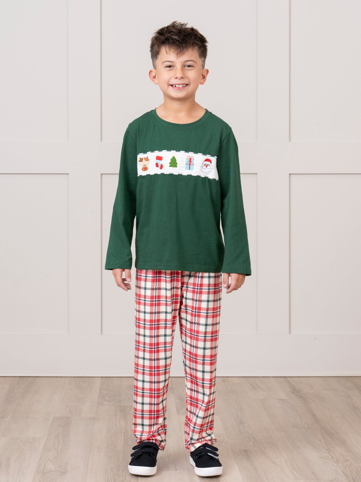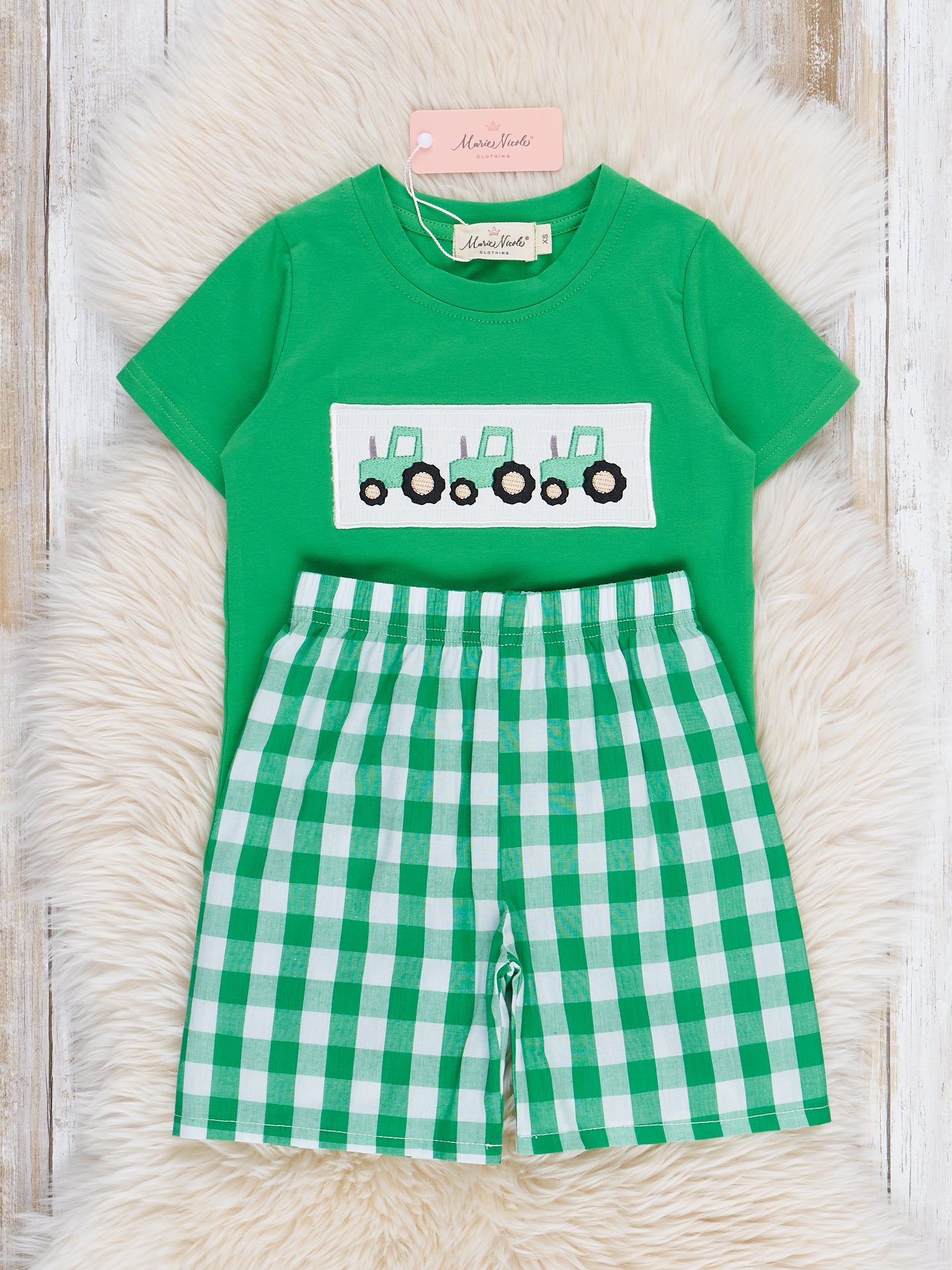 Hunter Green Stripes Smocked Dinosaur Friends Outfit