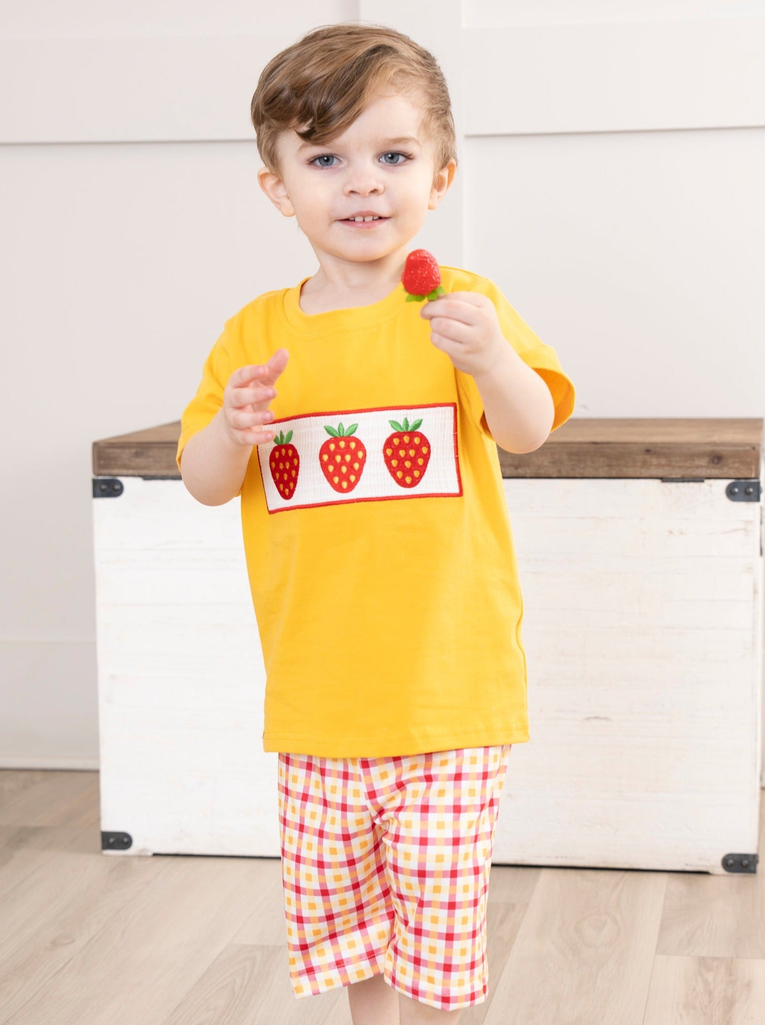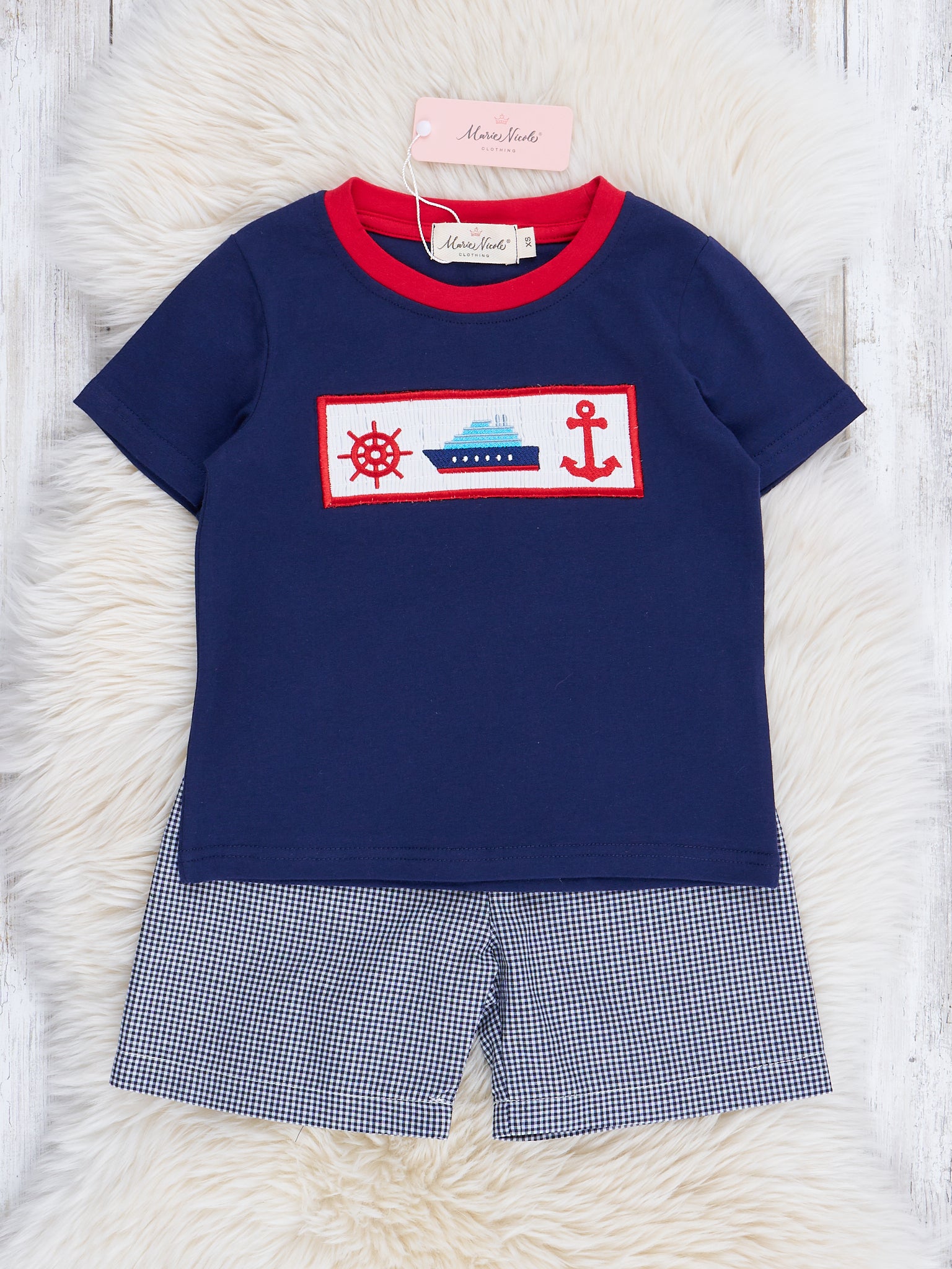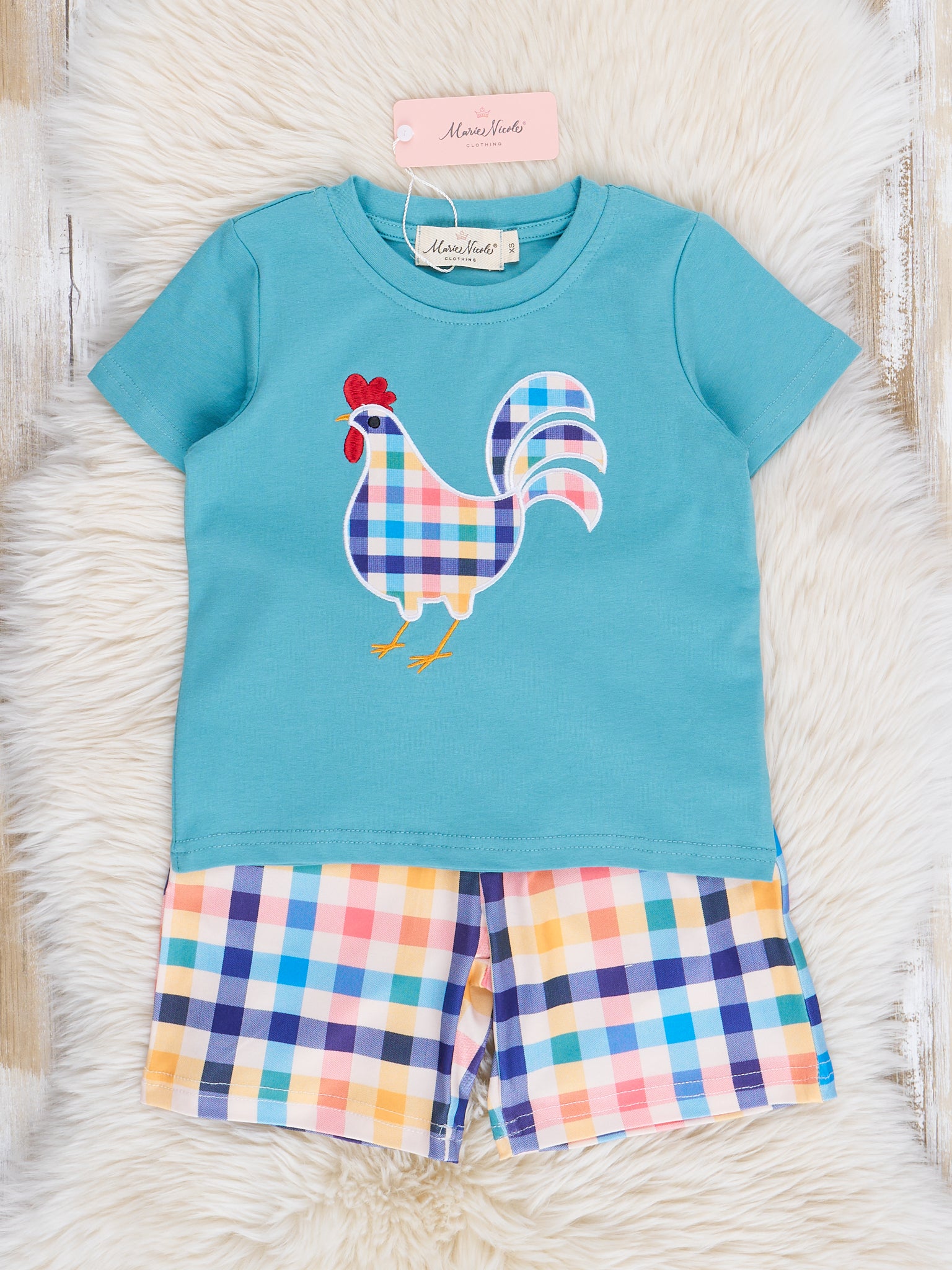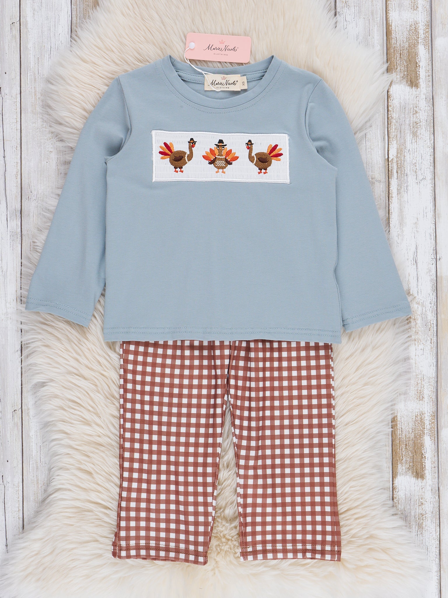 Dusty Blue & Brown Gingham Smocked Turkeys Outfit