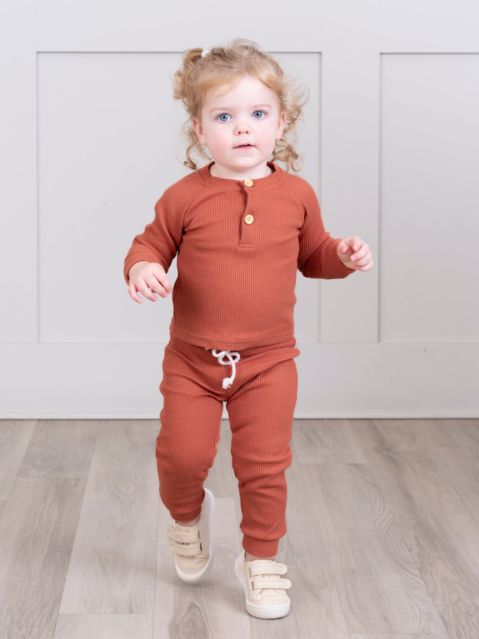 Waffle Knit Henley & Joggers Set in Two Colors - Unisex