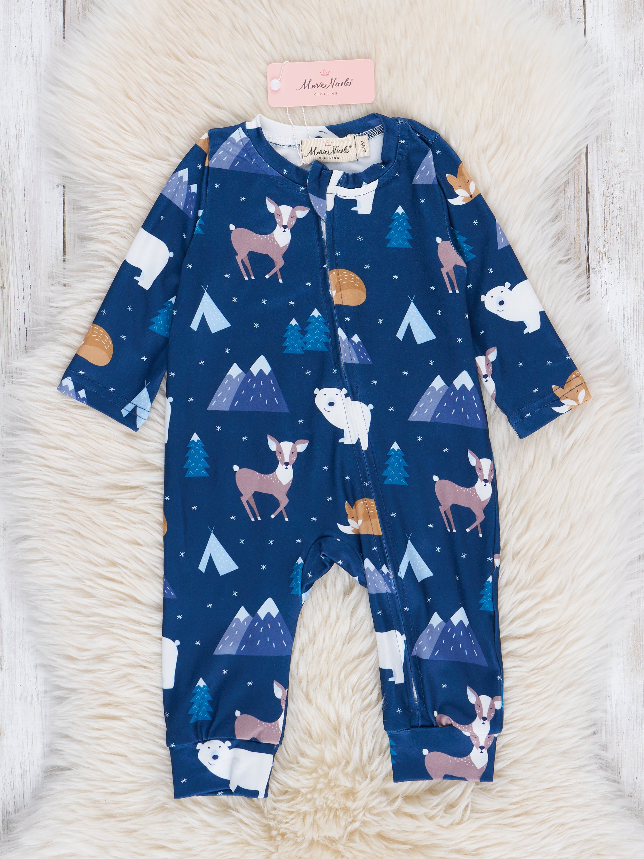 Navy Arctic Woodland Creatures Sleeper Pajamas