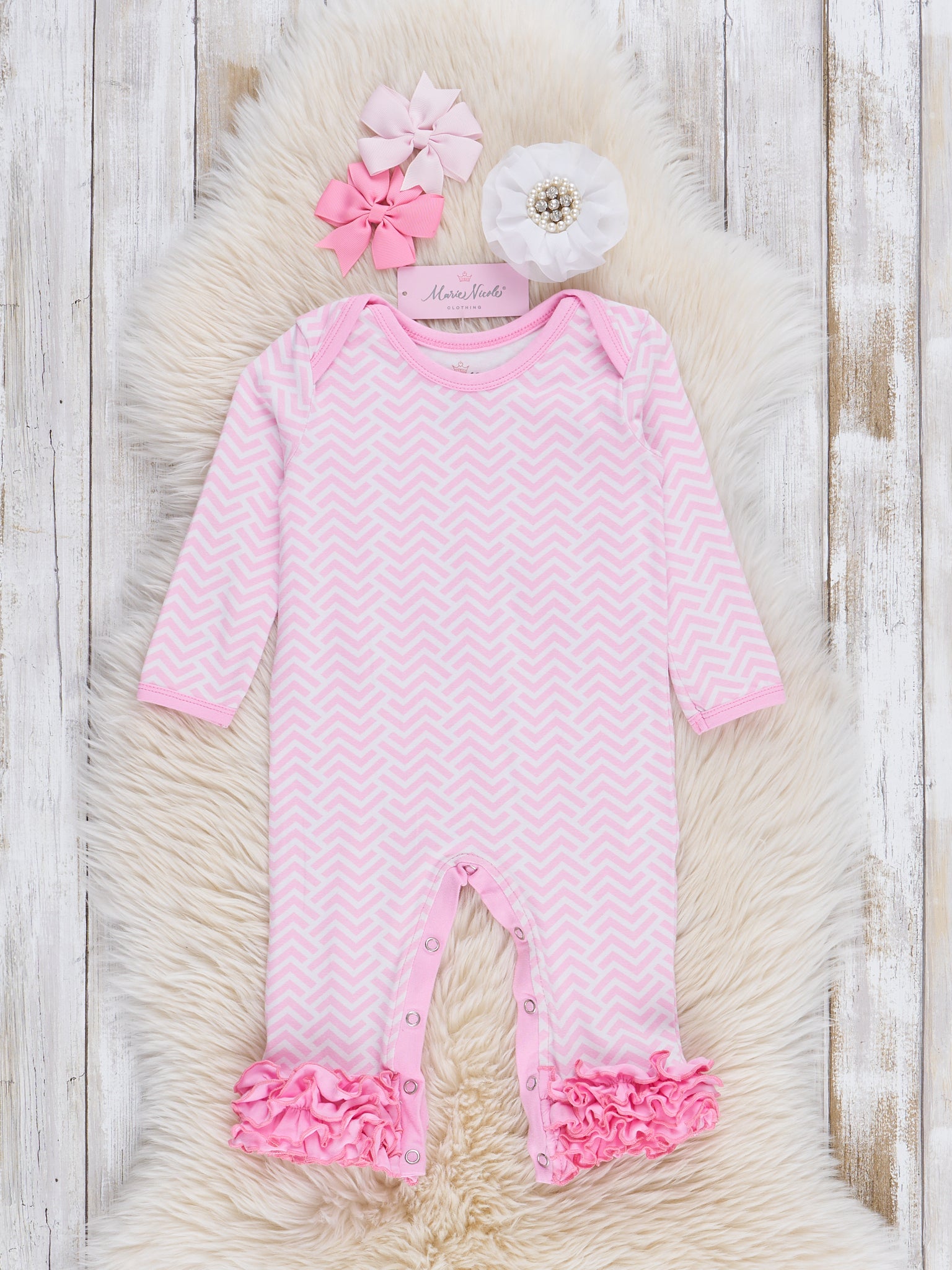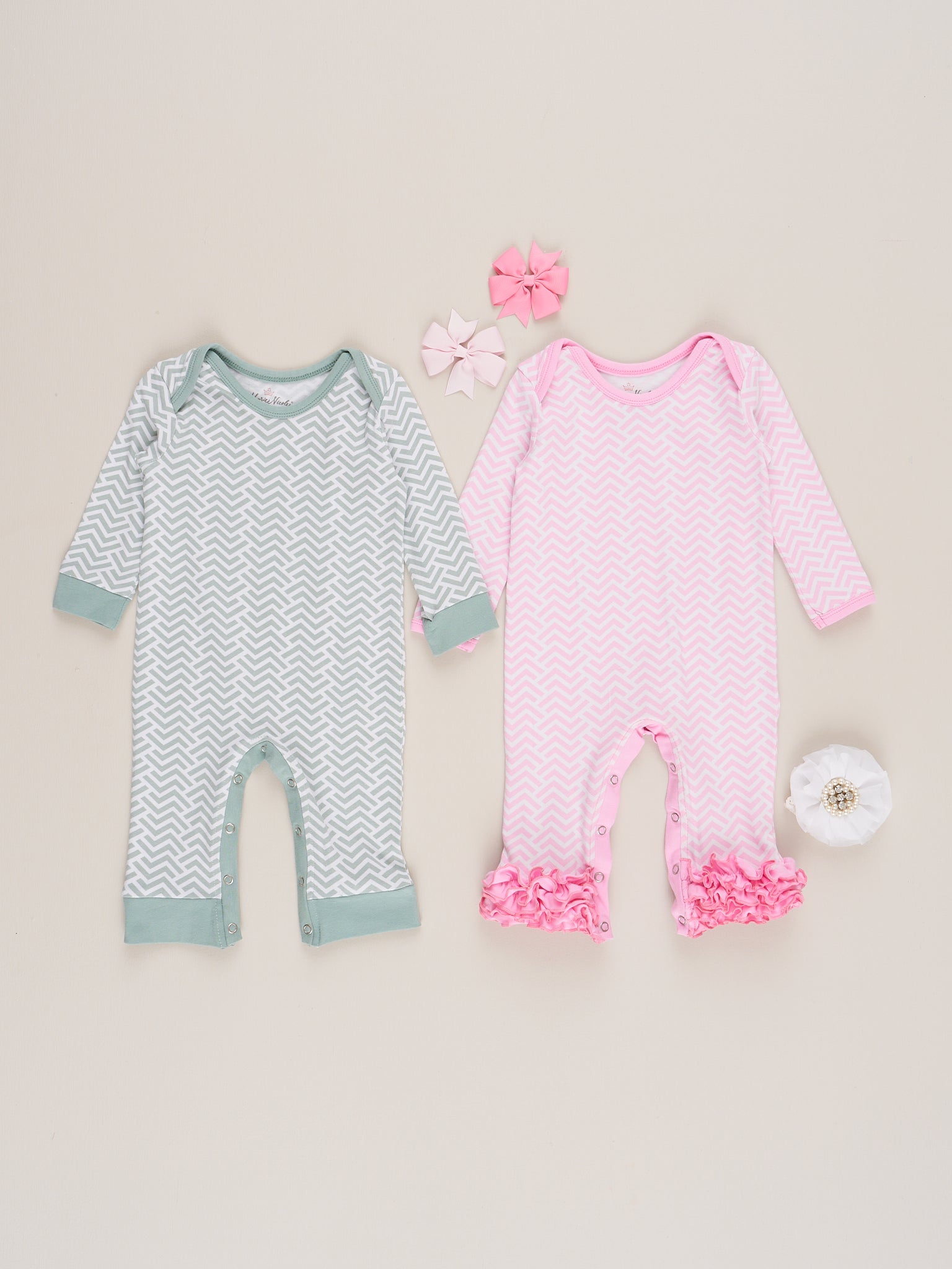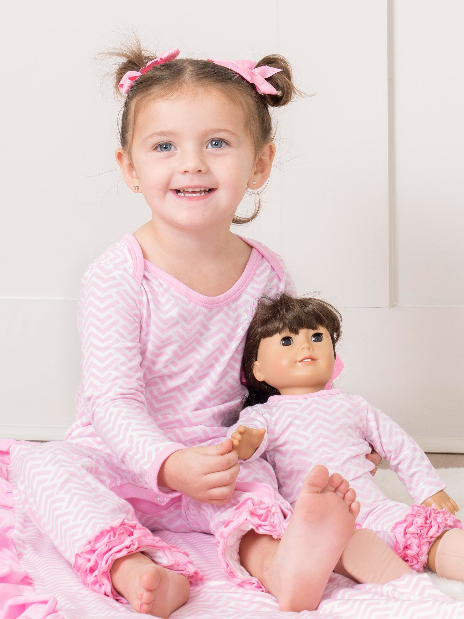 Cozy up for the night in these Broken Chevron Stripe Sleep Rompers! Available in both boys and girls styles, these rompers provide plenty of snuggle-worthy comfort. Sweet dreams! Shop the matching blankets, doll gowns, and more here.