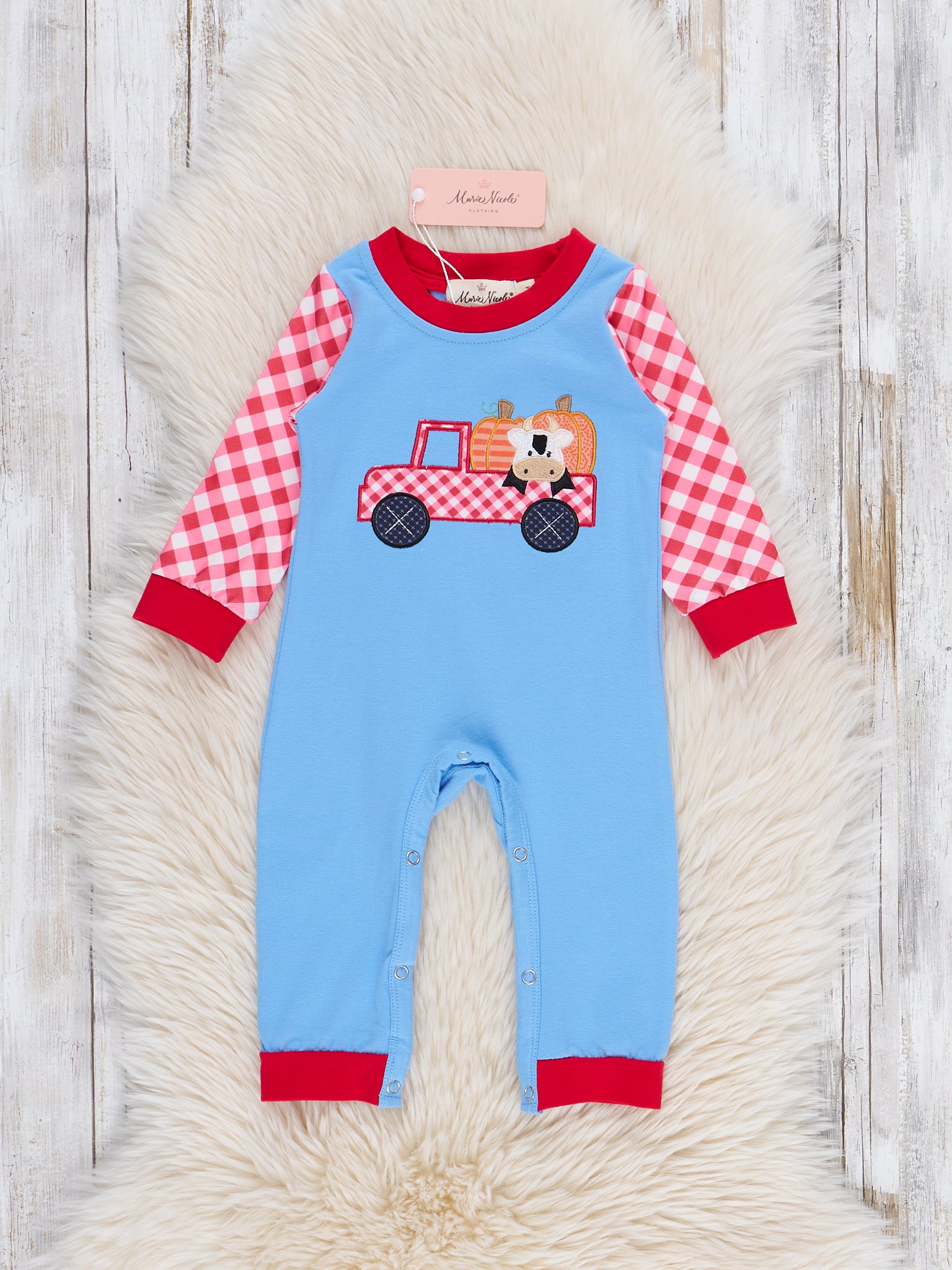 Cattle & Pumpkins Express Embroidered Gingham Romper