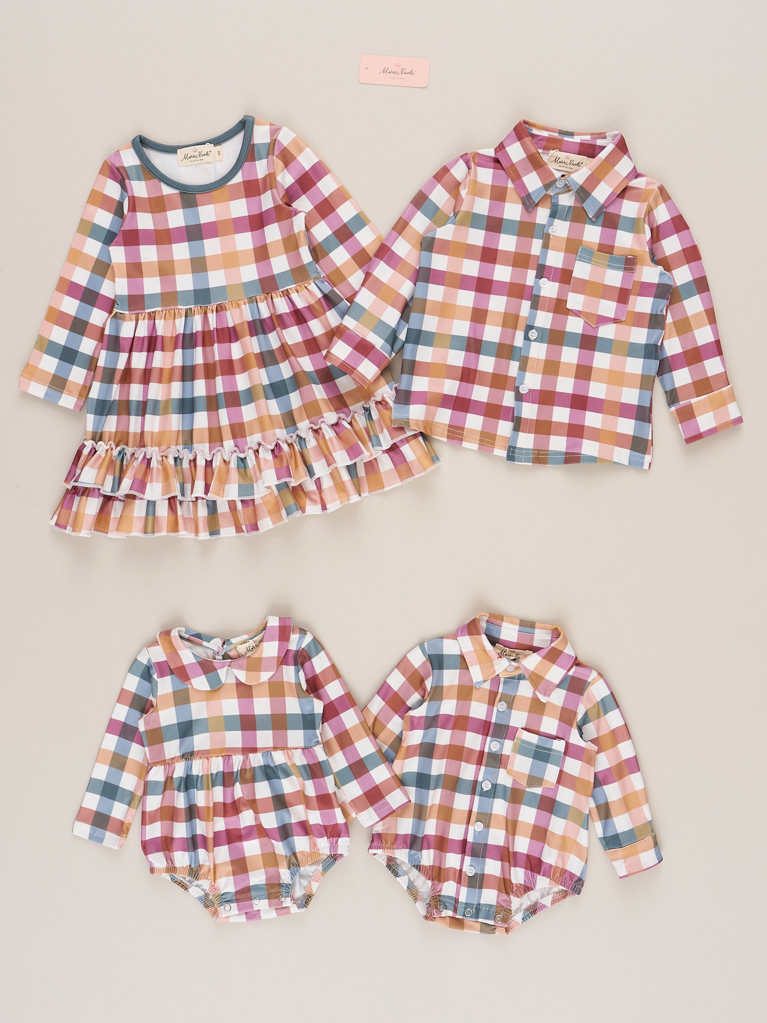Everyone's fave is back with a new variation! The best fall set for siblings, cousins, or even best friends! This fall plaid polo romper features a pocket & functioning buttons. Perfect to keep the littles warm this season!