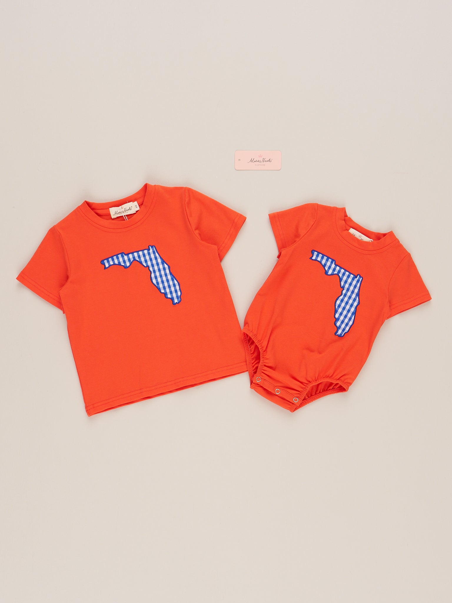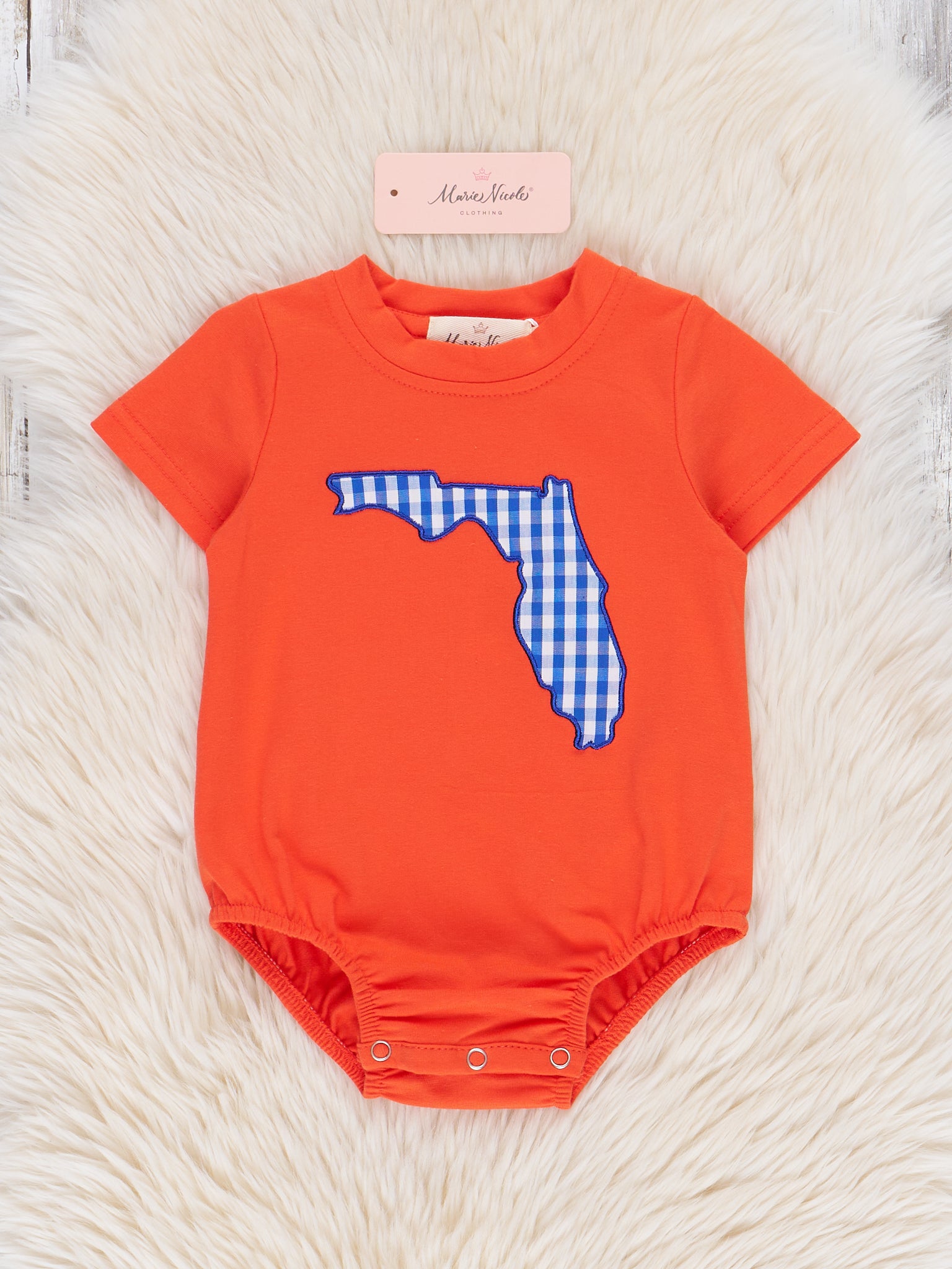 The Florida Embroidered Gingham Bubble is a charming blend of Southern pride and classic style. Featuring a blue and white gingham pattern and a beautifully embroidered Florida applique, this bubble from Marie Nicole Clothing is perfect for showing off team spirit in a sweet, everyday way. Lightweight and breathable, it’s ideal for warm weather, casual outings, or cheering on your favorite team in comfort and style.