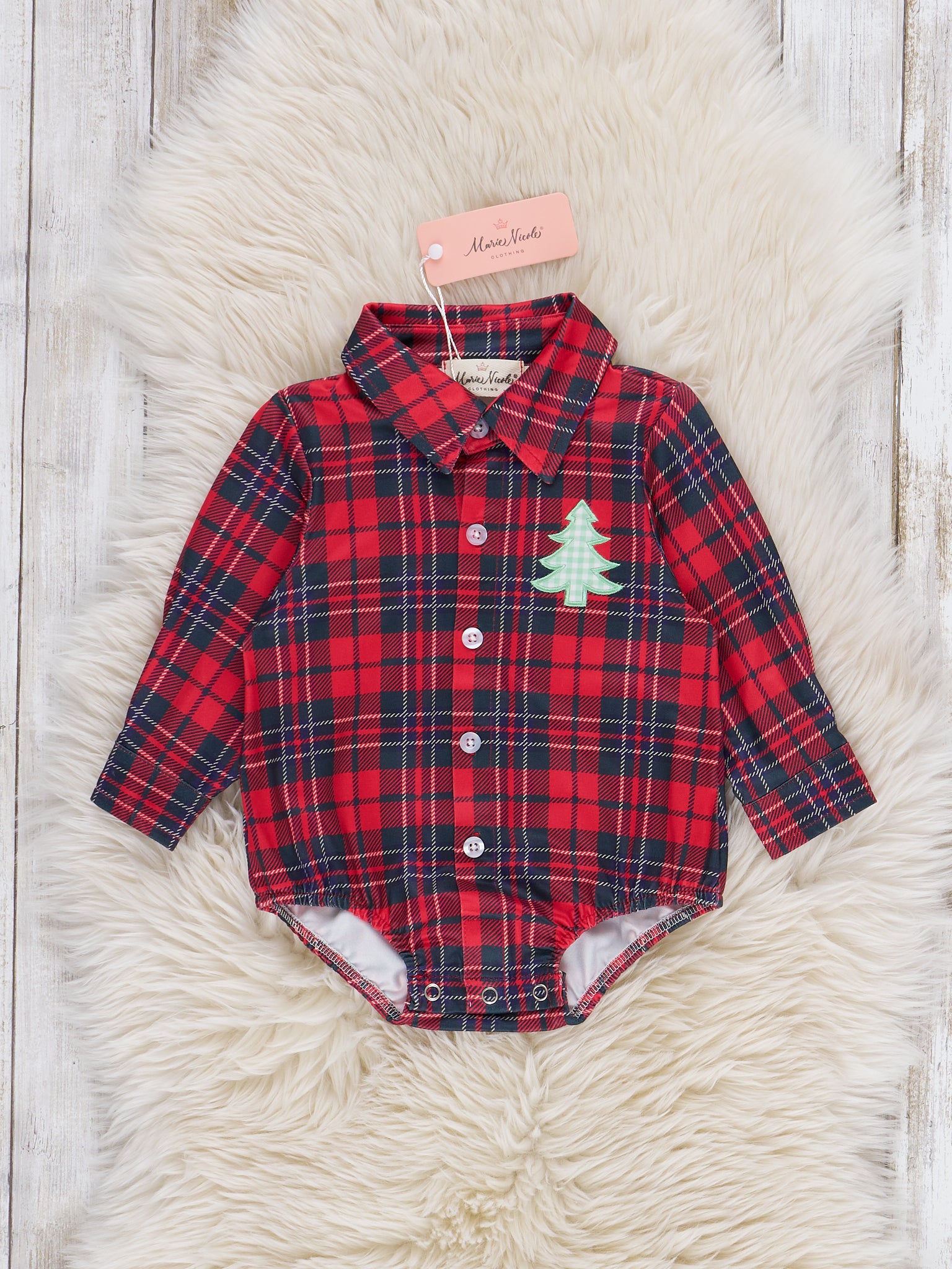 Christmas Tree Lumberjack Embroidered Button-Up Bubble