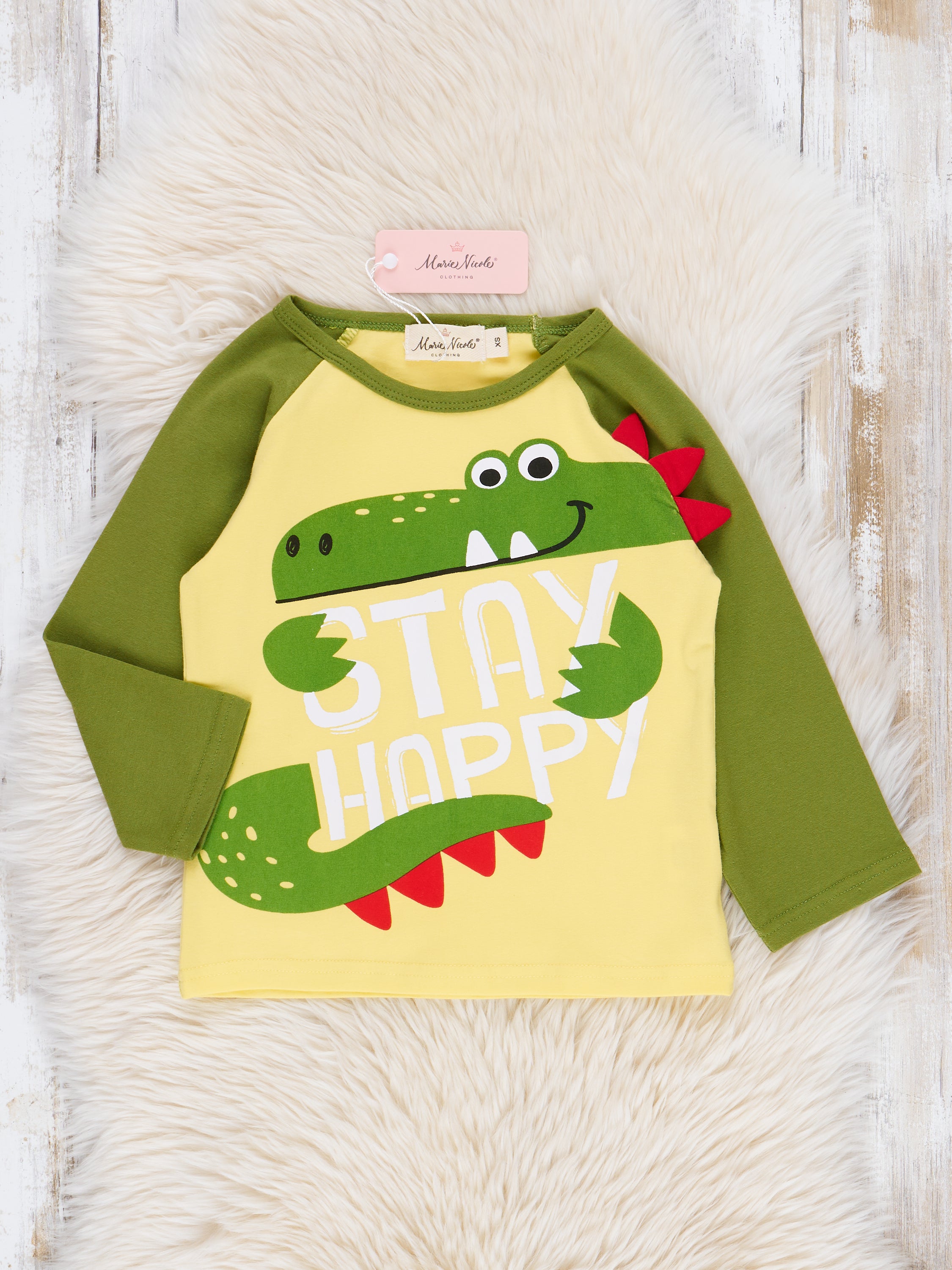 Turquoise & Yellow Stripes Pocket Raglan Shirt
