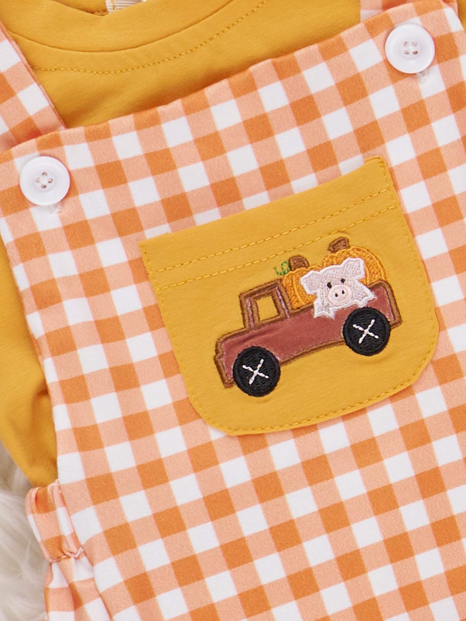 Cattle & Pumpkins Express Embroidered Gingham Outfit