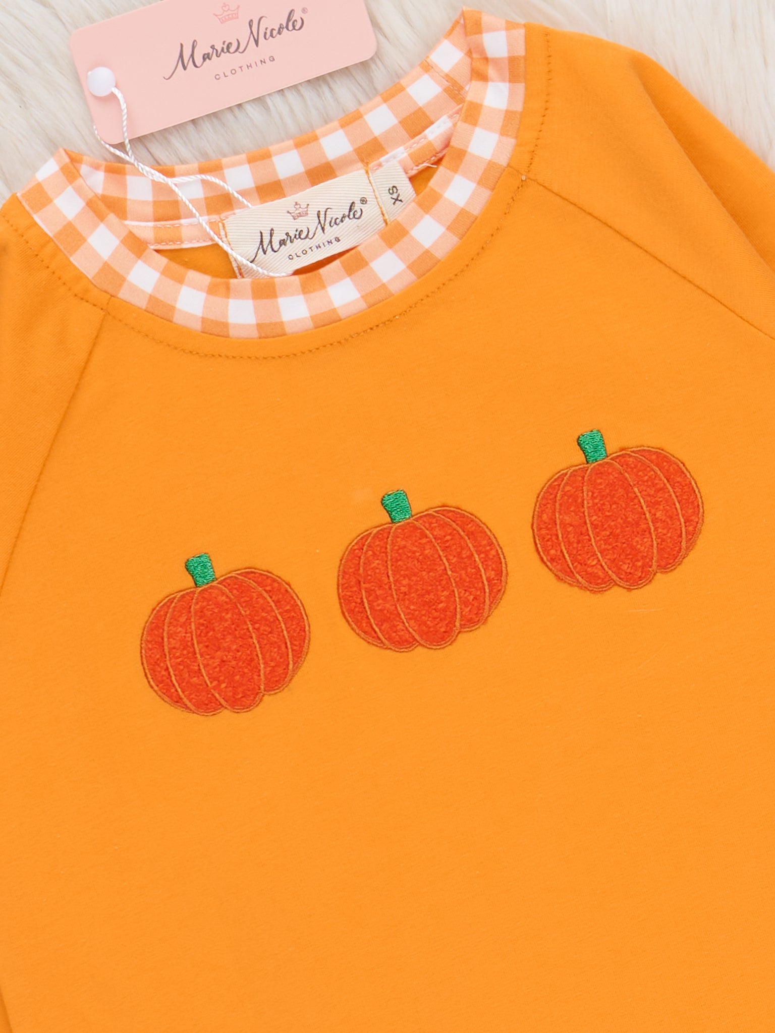 The Embroidered Gingham Patch Pickin’s Top is a sweet and cozy choice for autumn days and festive adventures. Featuring charming embroidered pumpkin with a classic gingham accents, this top from Marie Nicole Clothing blends rustic fall charm with soft, breathable comfort. Perfect for pumpkin patches, family outings, and picture-perfect seasonal moments.