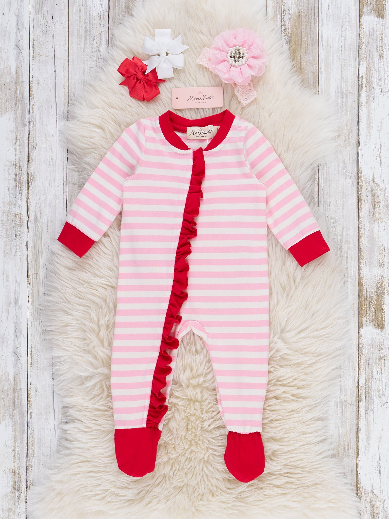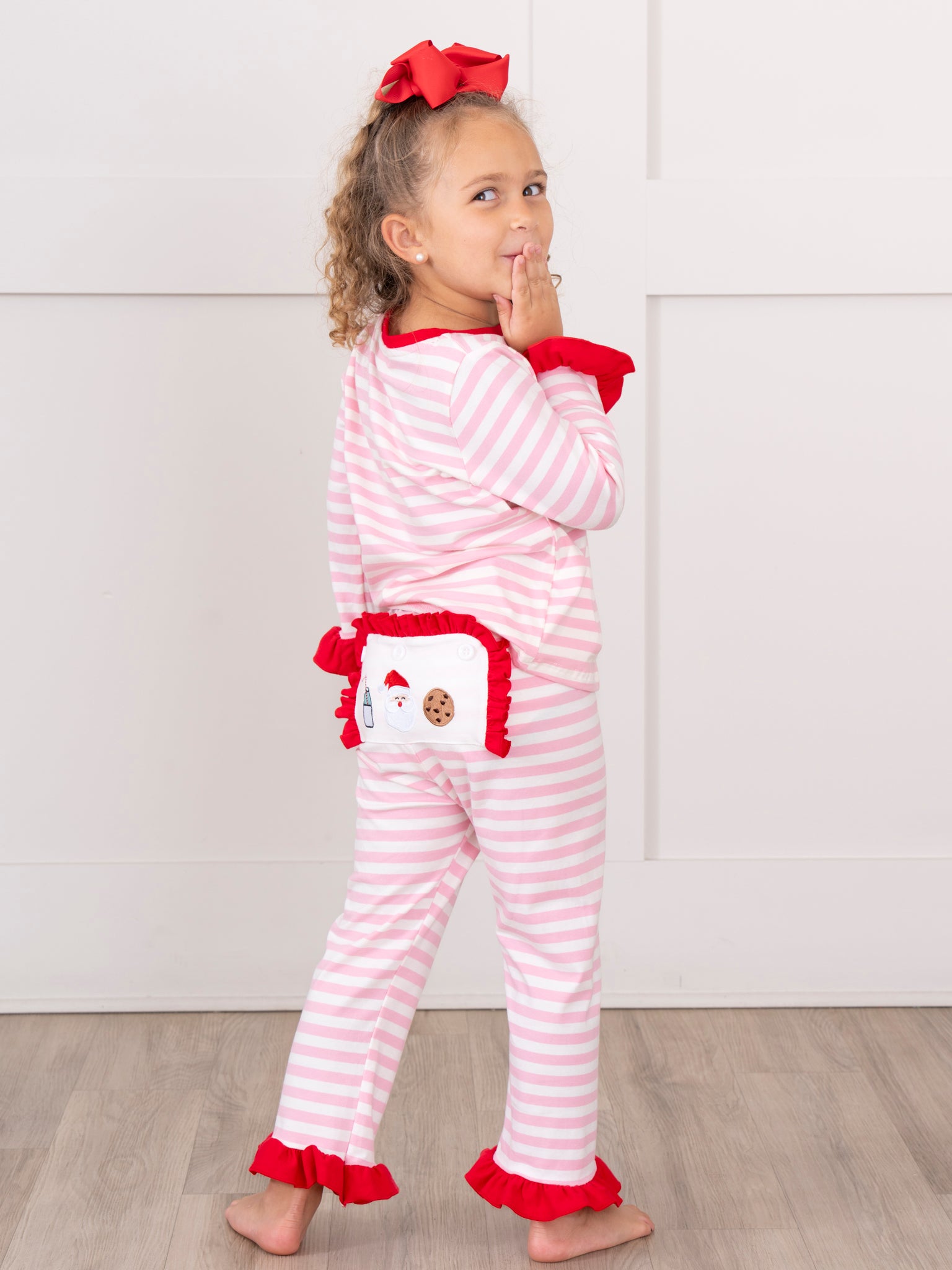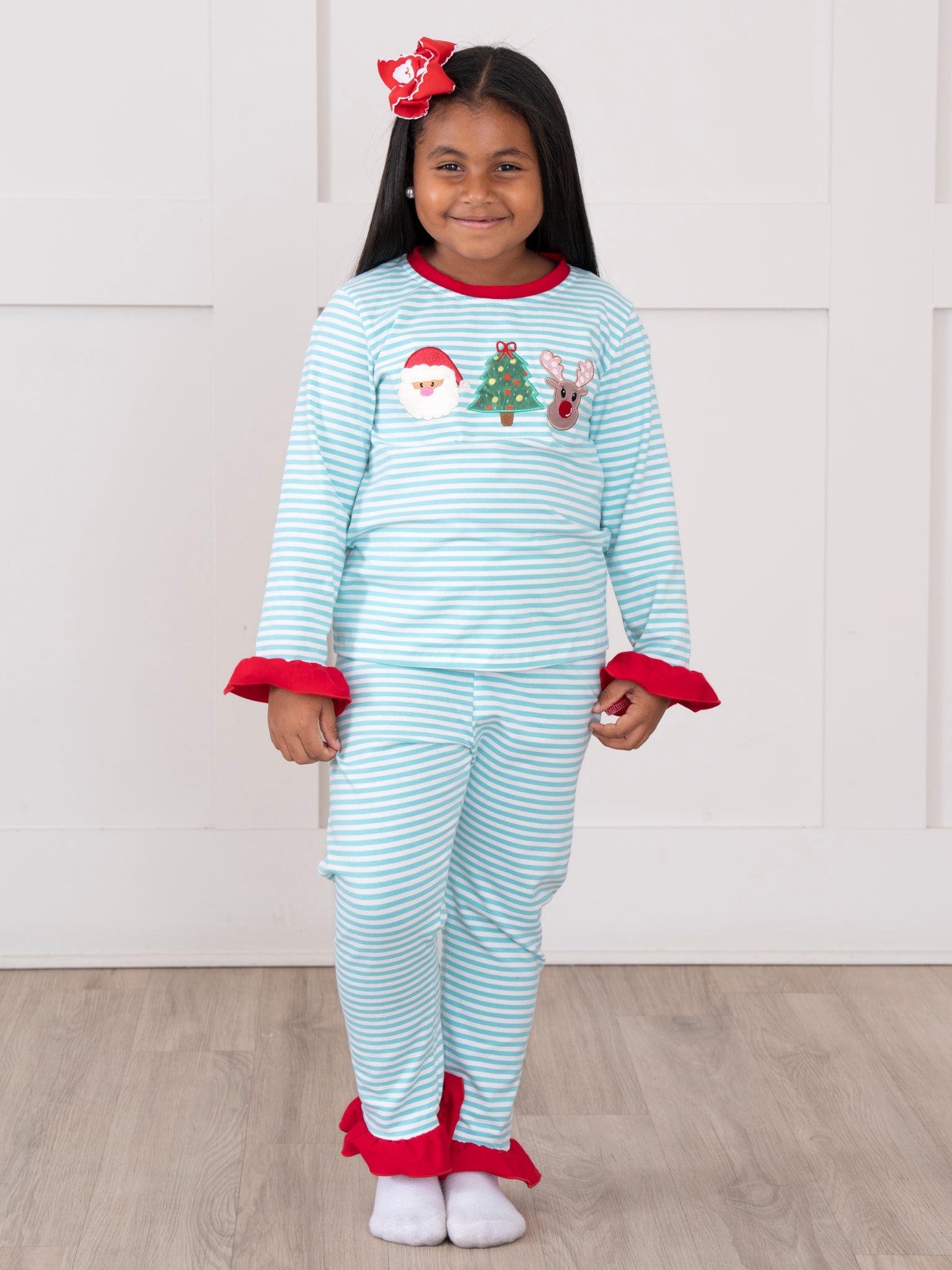 Christmas Cheer Striped Embroidered Ruffle Pajamas