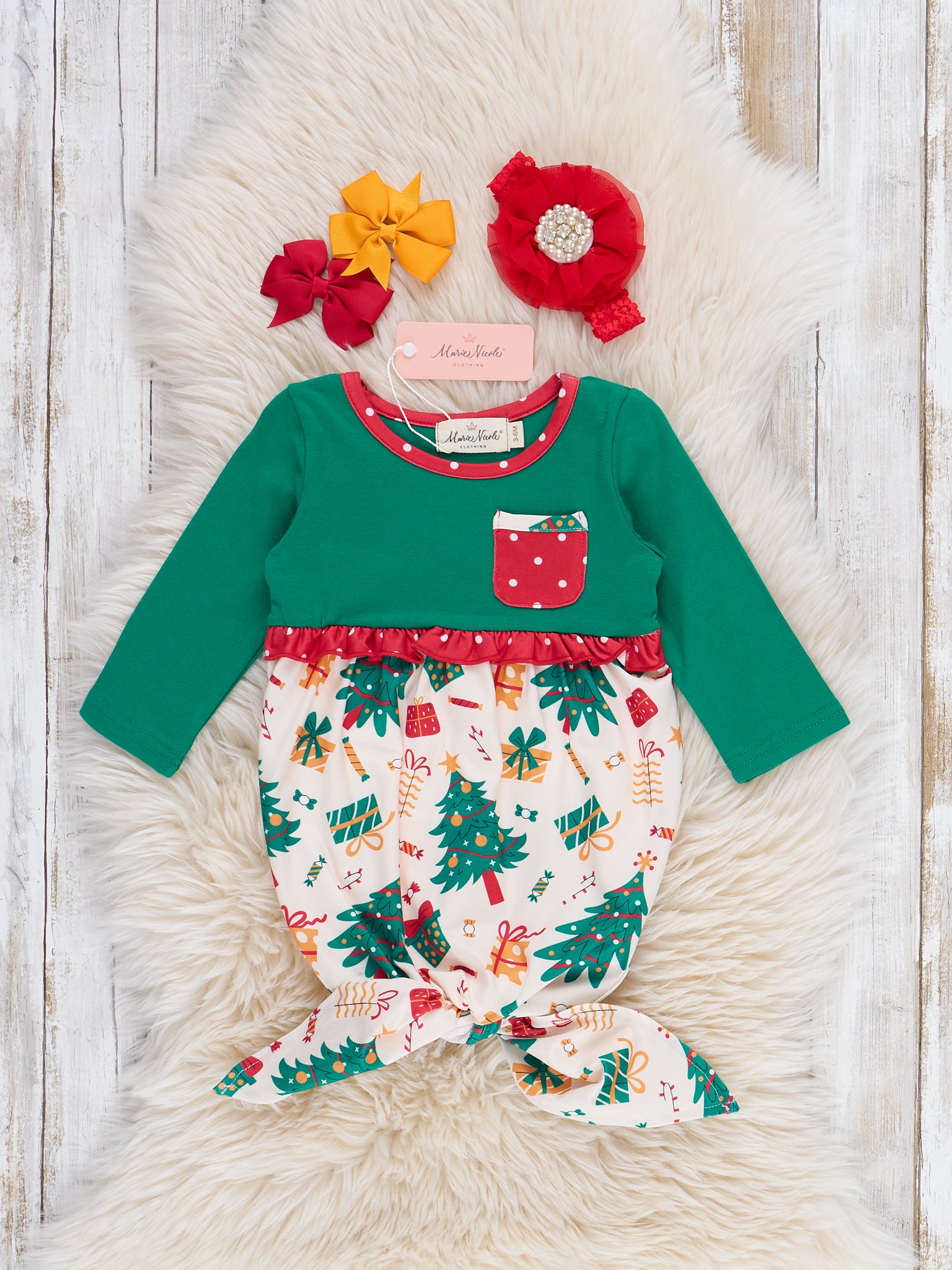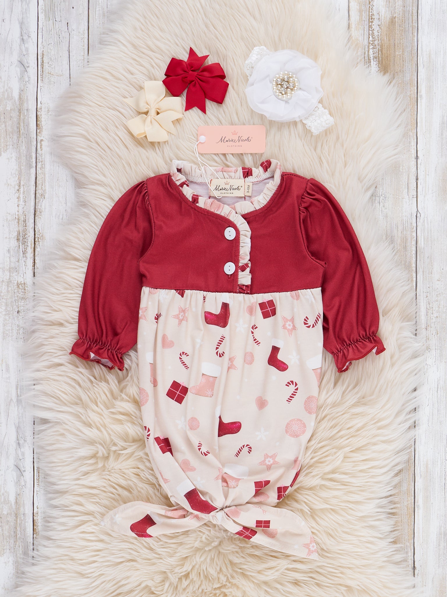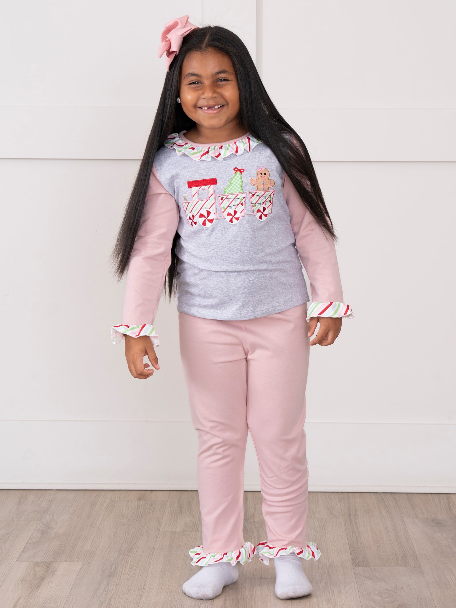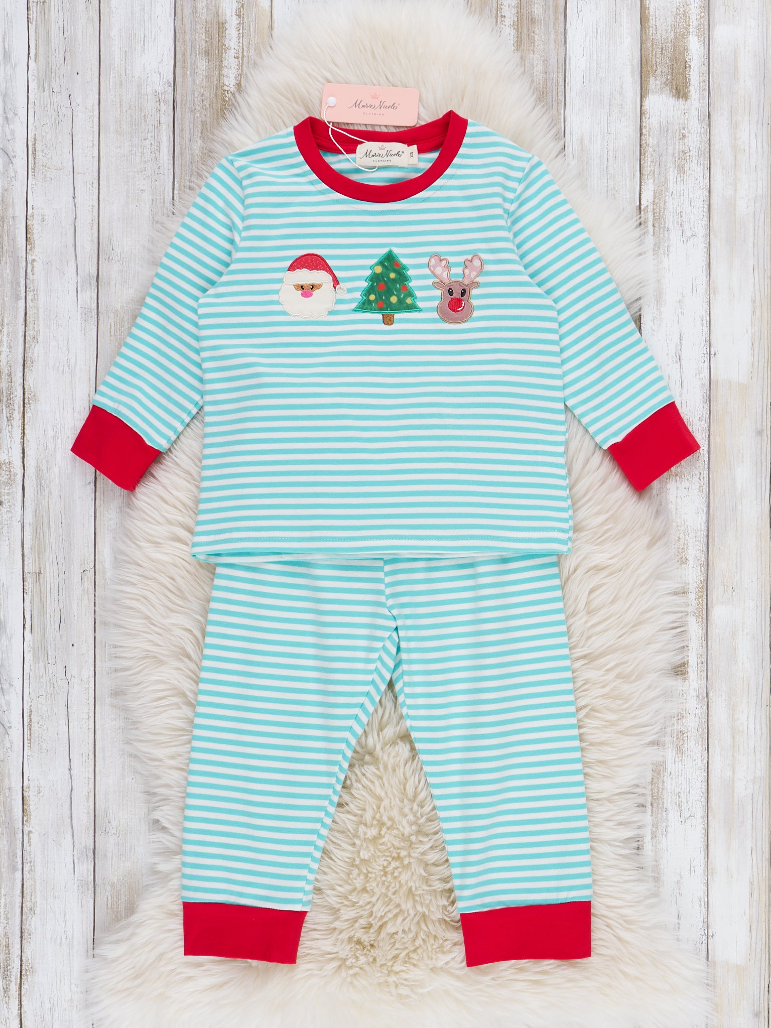 Christmas Cheer Striped Embroidered Ruffle Pajamas