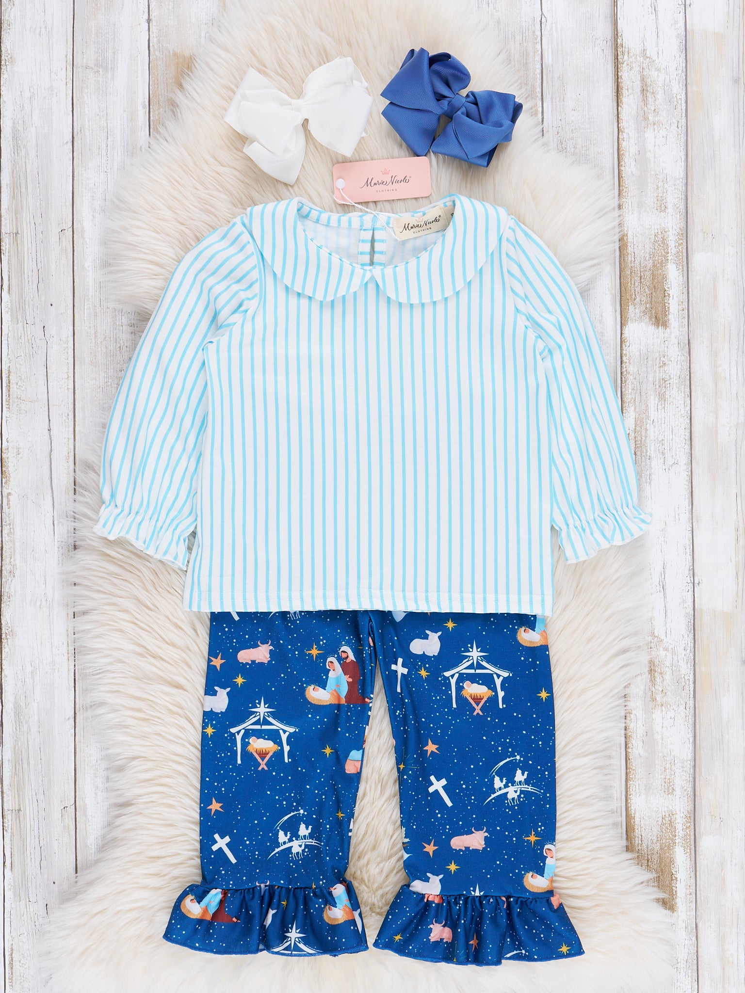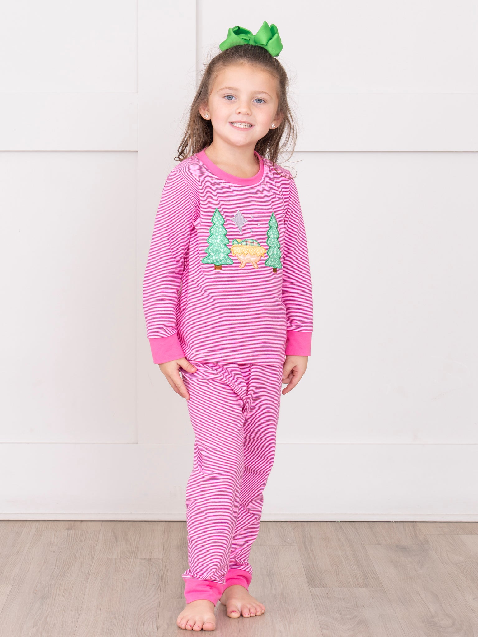 Sleepin' in the Manger Embroidered Pajamas - Girls