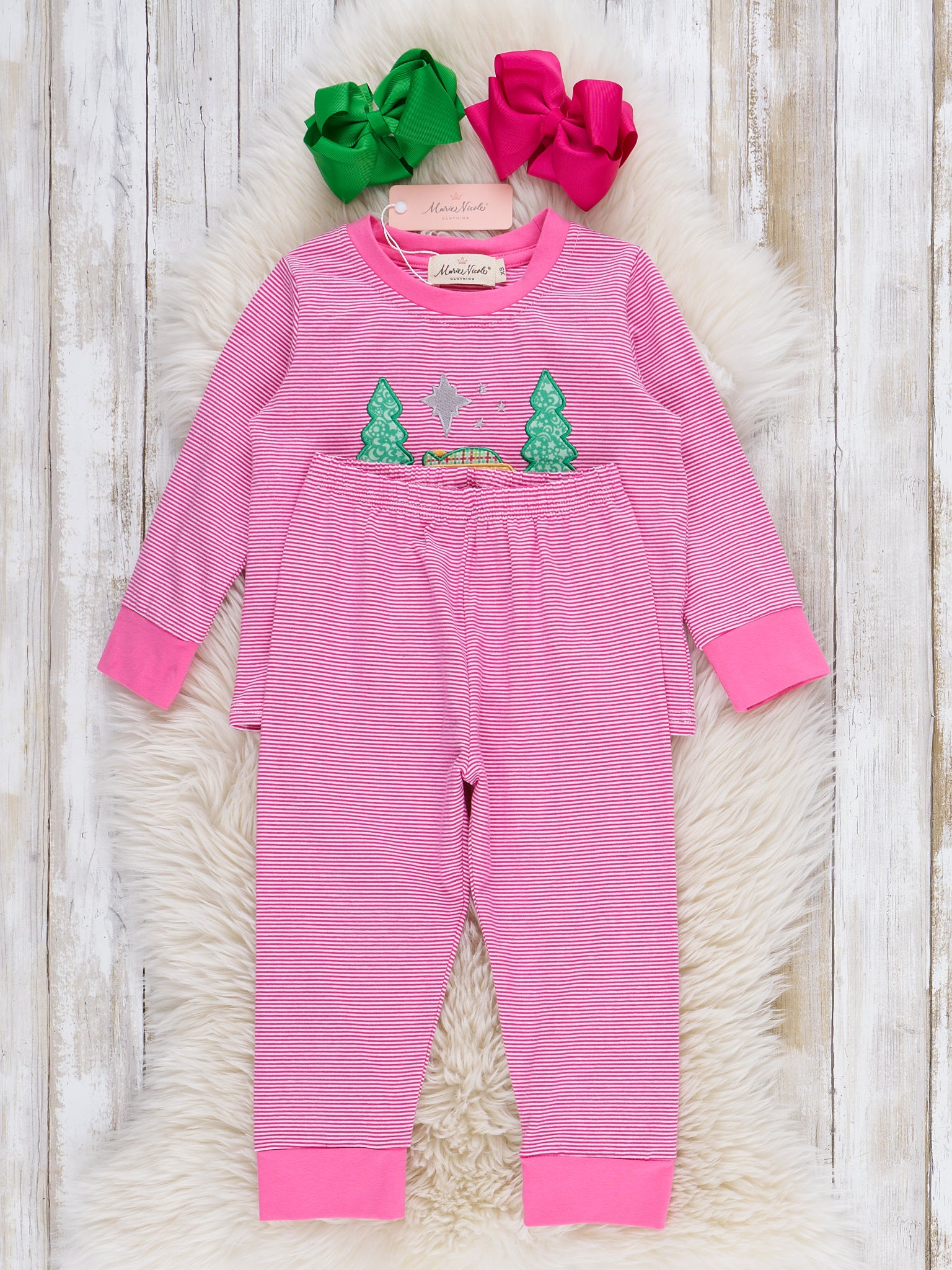 Sleepin' in the Manger Embroidered Pajamas - Girls