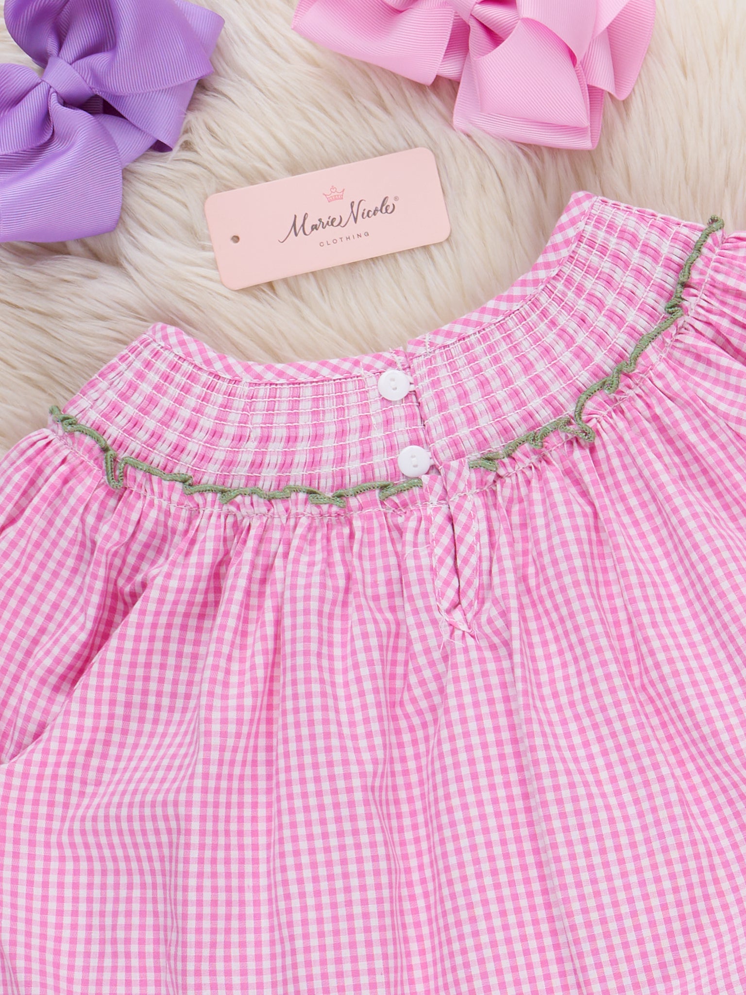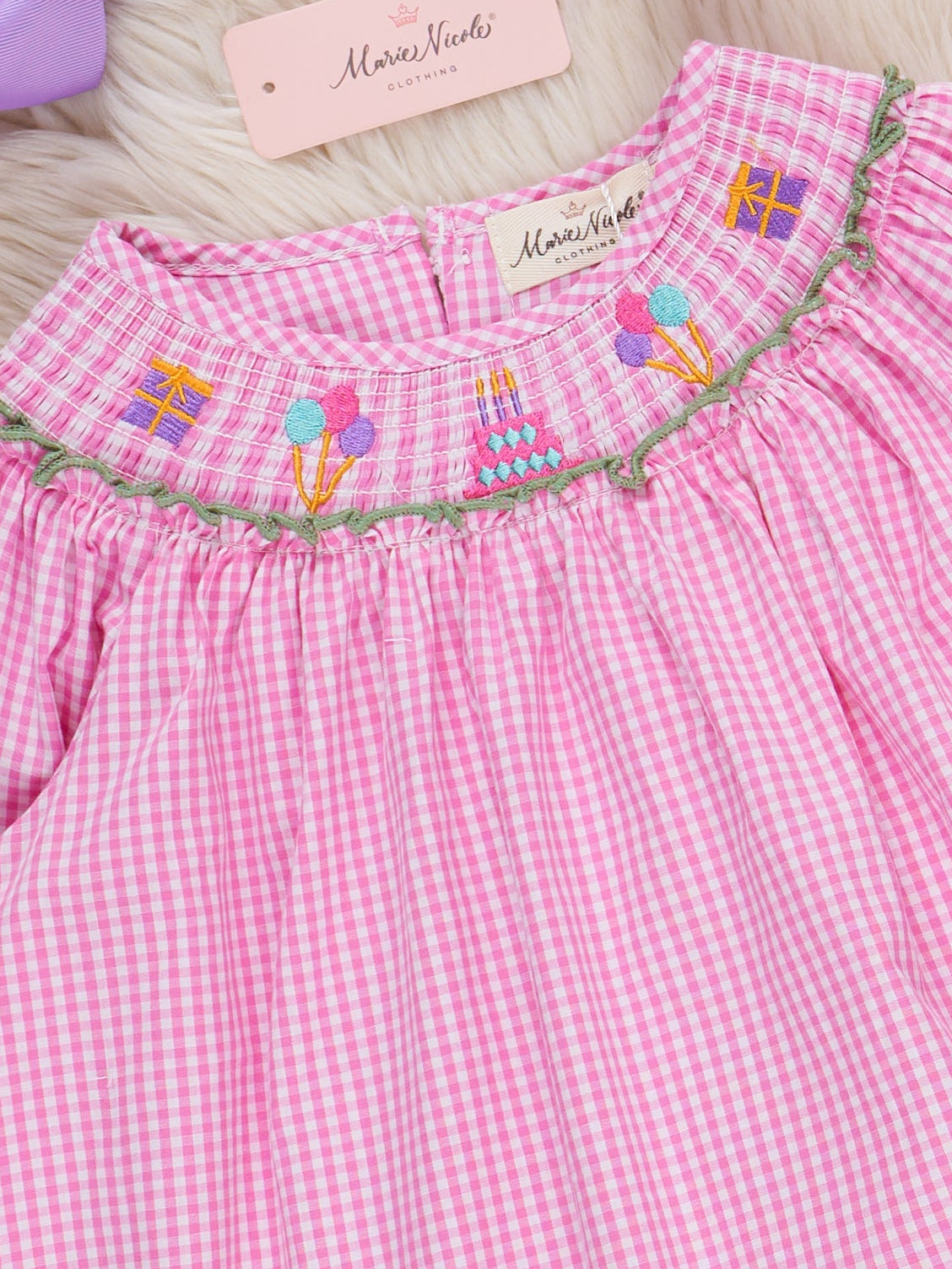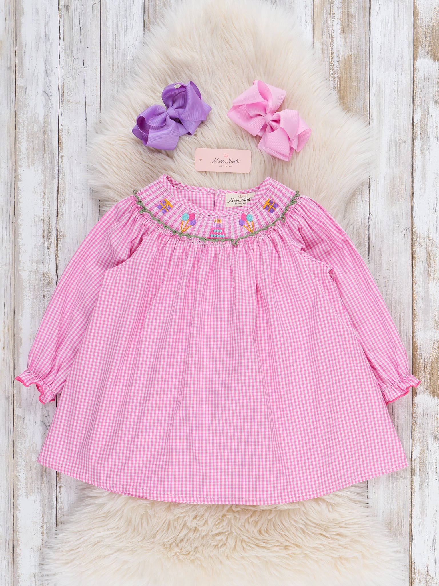 The Beloved Birthday Smocked Dress by Marie Nicole Clothing features a gentle gathered silhouette with long sleeves and a delicately smocked and embroidered neckline accented by subtle trim. This classic style brings a touch of elegance to everyday outings and special occasions.