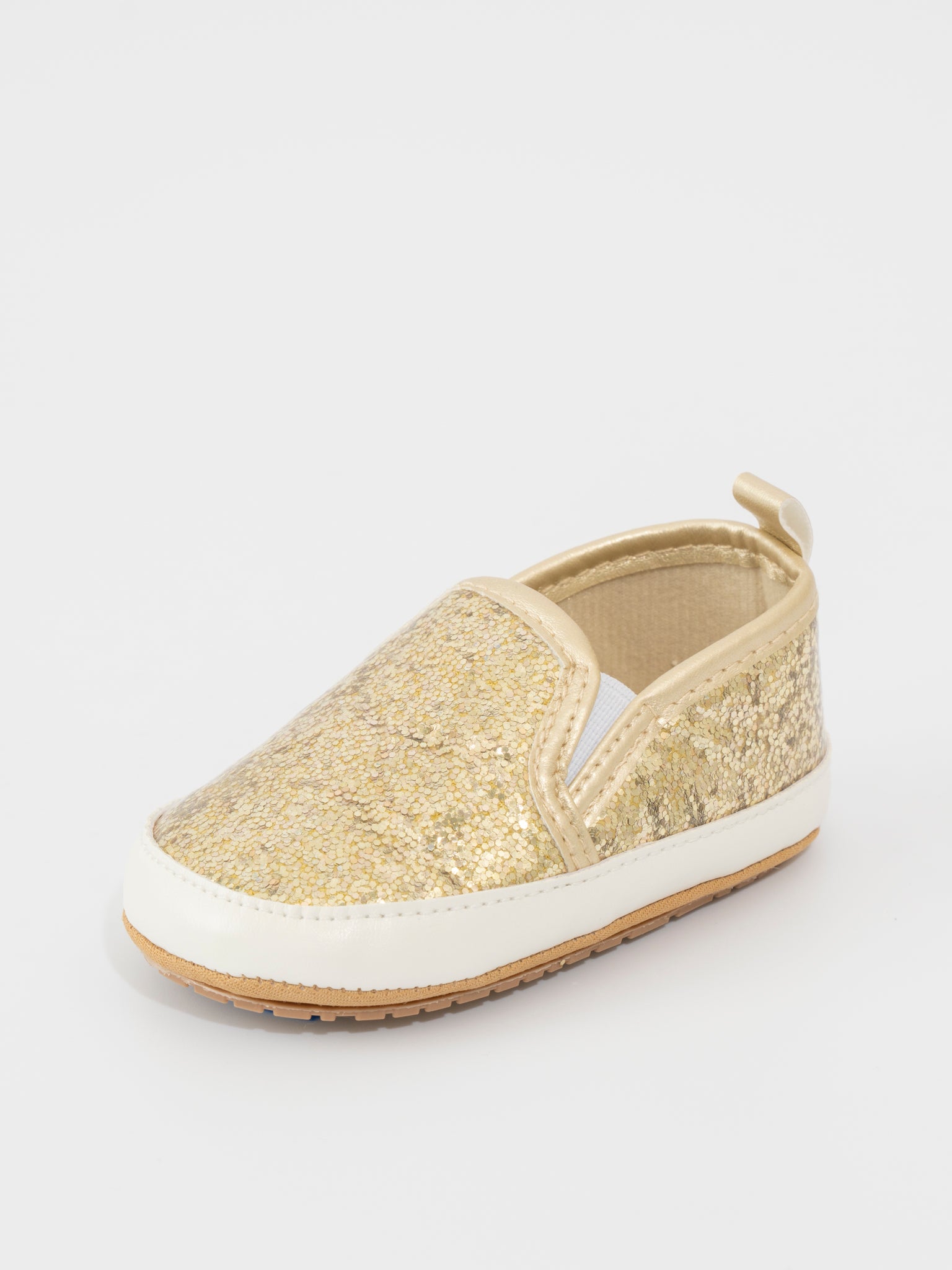 Dazzle with the Glitter Slip On Baby Shoe! This pair from Marie Nicole Clothing is glitzy and glamorous with a casual style that is such an ease to pull on. These shoes are glitter all over and designed to be ultra-comfortable. Bring a sparkle and shine to every day with this adorable shoe!