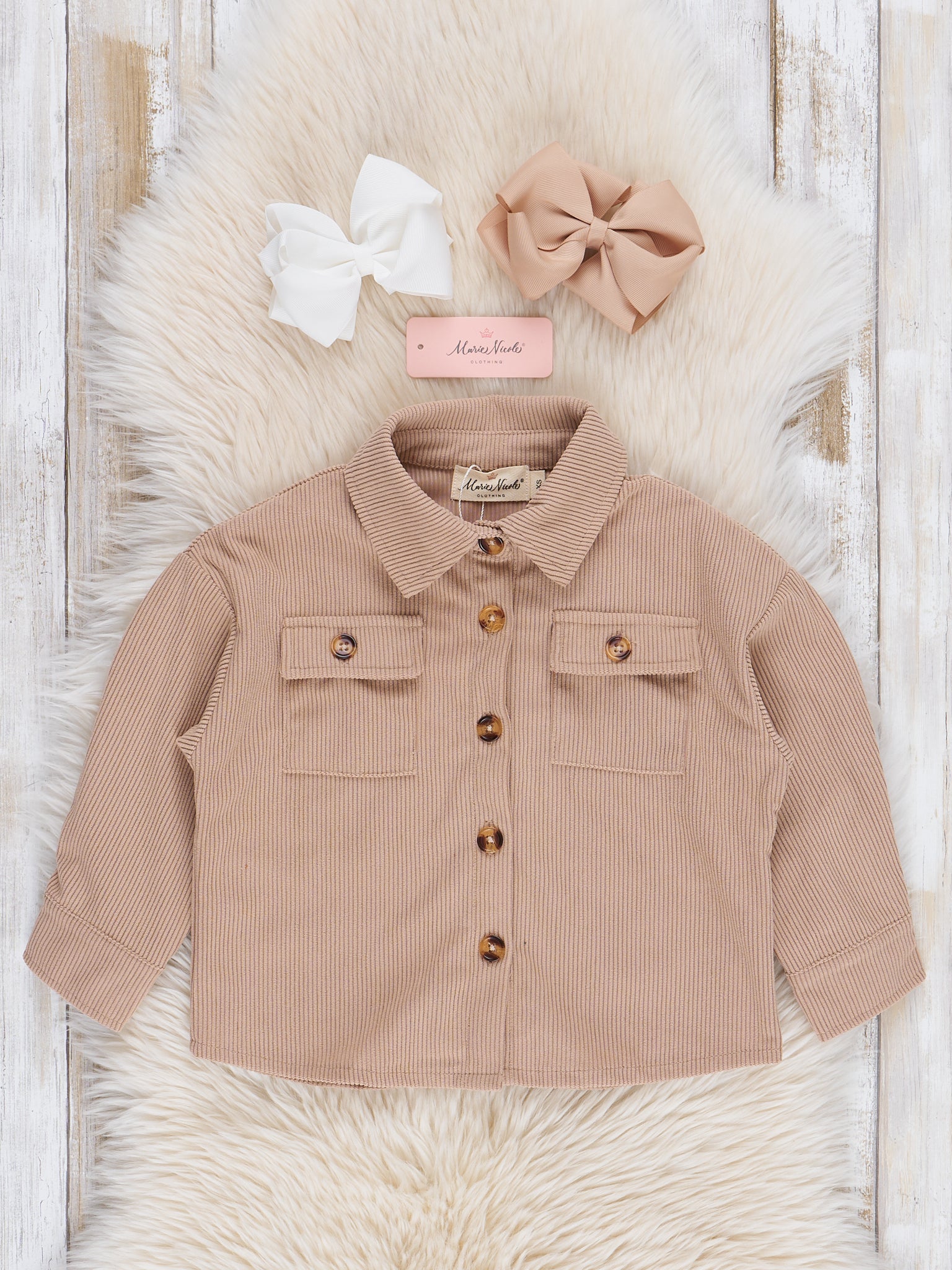 Get the best of both worlds with the Mom & Me Corduroy Shacket. This playful shacket (shirt/jacket hybrid) features a mom & me design, perfect for matching with your little one. The button front closure and two chest pockets add both style and convenience.